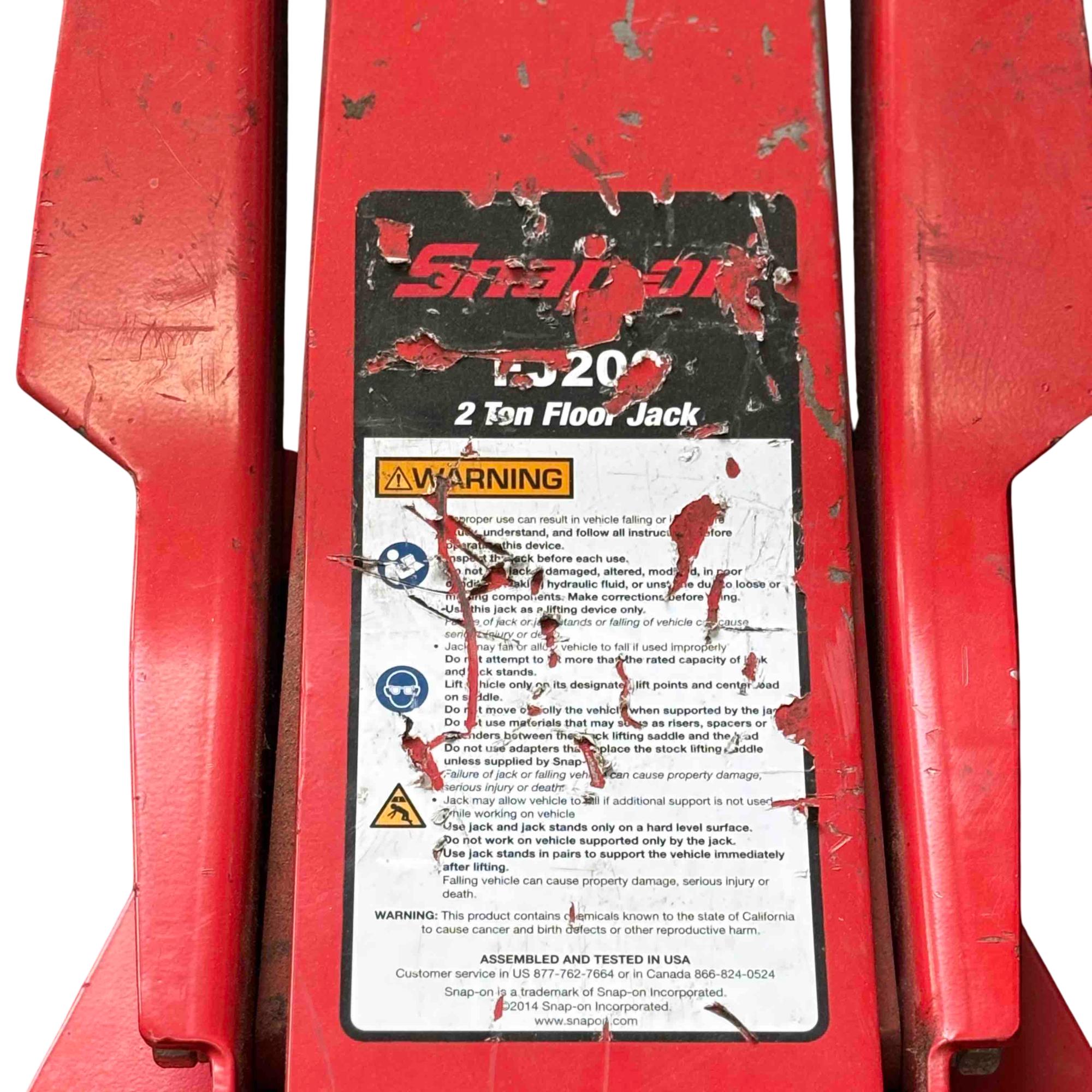 Elevate your garage equipment with the Snap-on Tools FJ200 2-Ton Floor Jack. Engineered for strength and reliability, this high-performance jack effortlessly lifts up to 2 tons, making it an ideal choice for automotive enthusiasts and professionals alike. Featuring a durable red steel construction and a convenient handle for easy maneuverability, its the perfect companion for all your lifting needs.