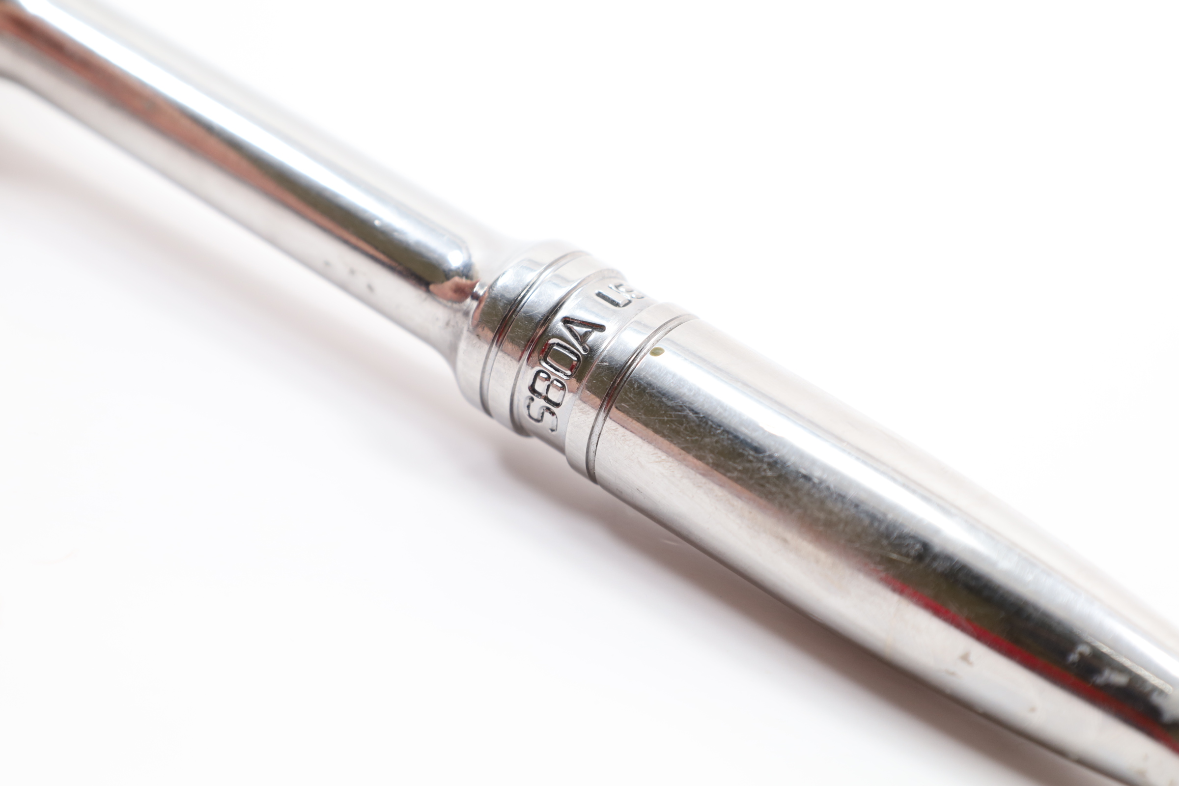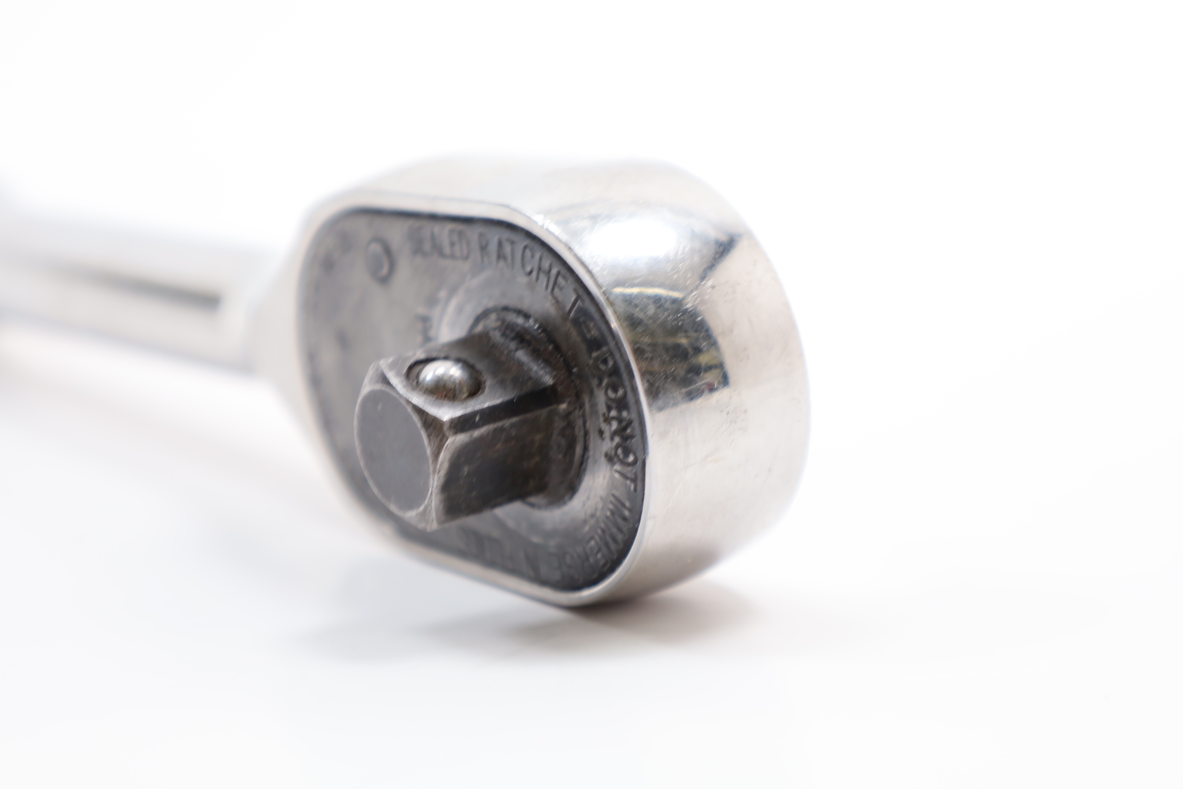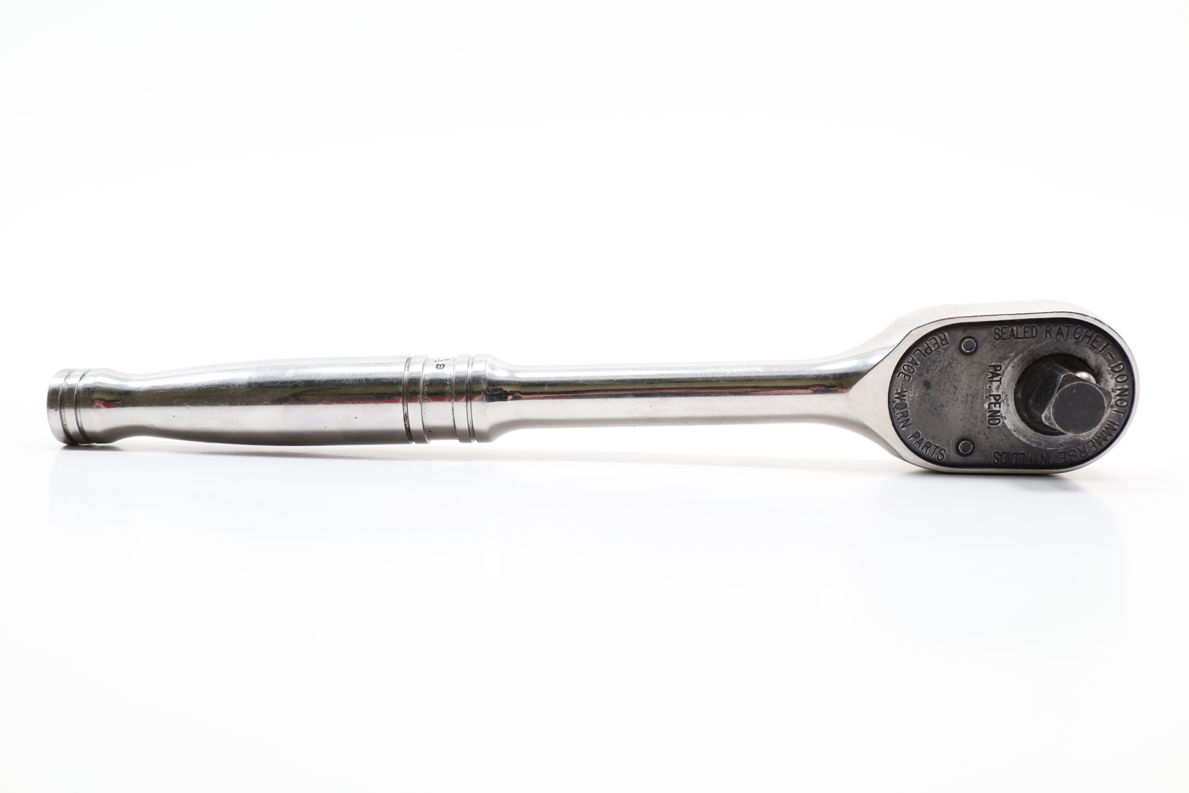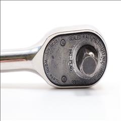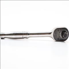 A high-performance 1/2" drive standard handle ratchet, measuring 10-5/16 inches in length. It features a Dual 80 Technology ratchet design, which includes an 80-tooth gear with seven teeth in continuous contact, providing exceptional strength and durability. The tool's sealed head is specifically designed to keep lubricants in and contaminants out, significantly extending its lifespan. Comfort and control are enhanced by the contoured handle, making it easier to use. Its durability is further boosted by the nickel-chrome plating, offering a corrosion-resistant, mirror-like finish that is easy to clean. Additionally, the ratchet's robust reverse lever contributes to its longevity. With a 4.5-degree swing arc, this ratchet is designed for precise and efficient operation in tight spaces.