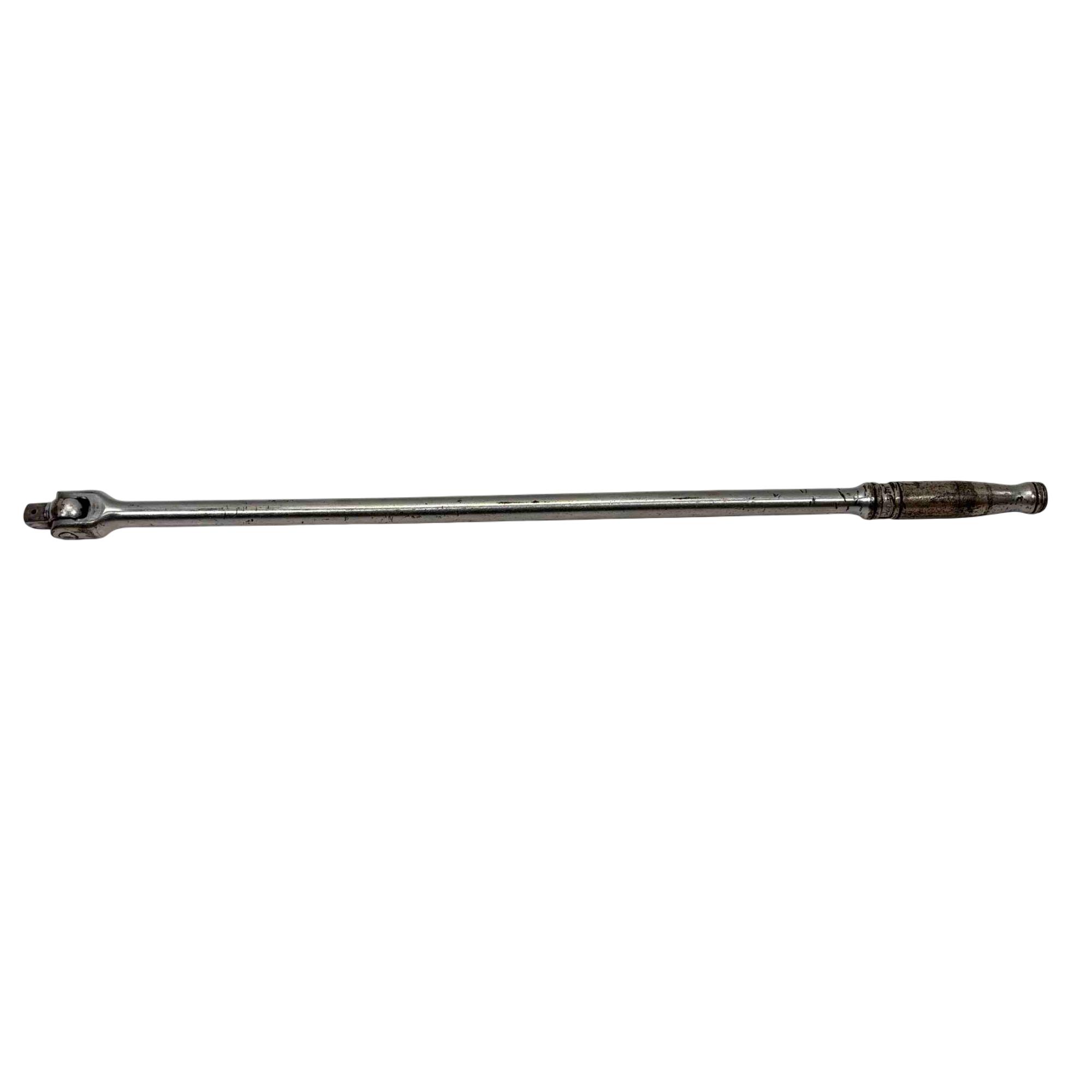 This is a vintage Snap-on SN18B 1/2 inch drive, 18-inch long chrome breaker bar, known for its durability and premium build quality. Ideal for mechanics and collectors, this tool is designed to provide maximum leverage for tough jobs, featuring a robust flex head for versatility and a comfortable grip. Experience the reliability and craftsmanship of Snap-on, trusted in professional workshops for decades.