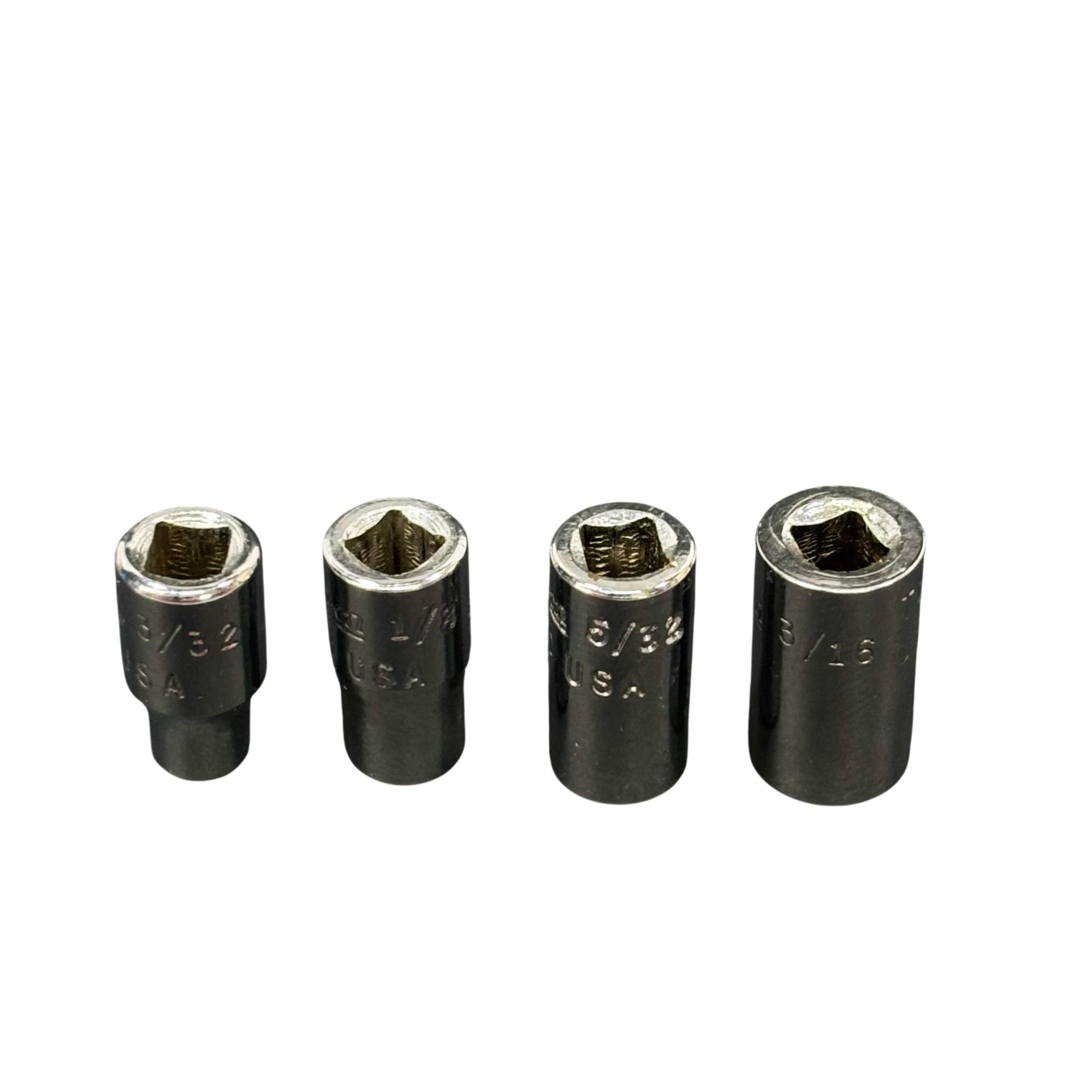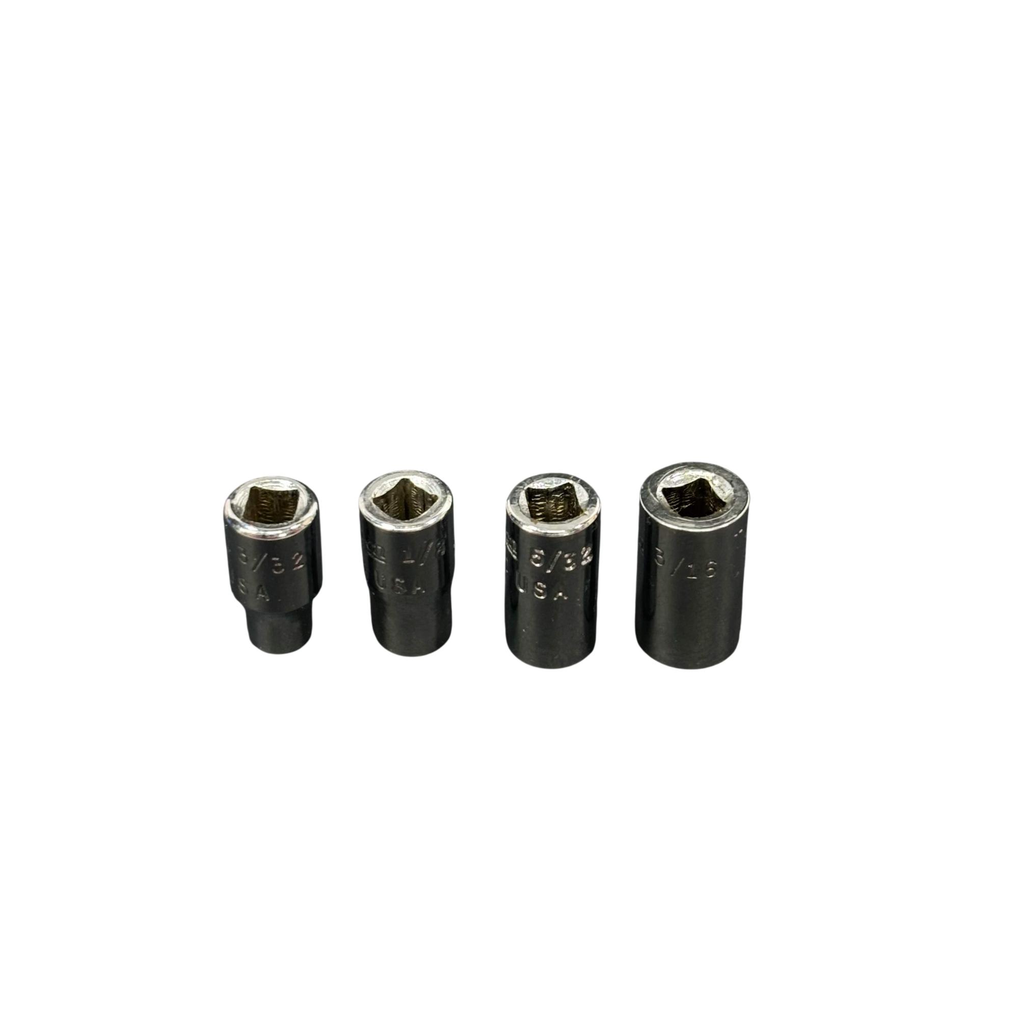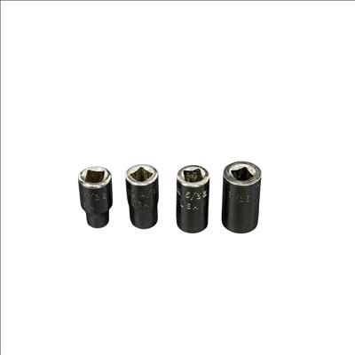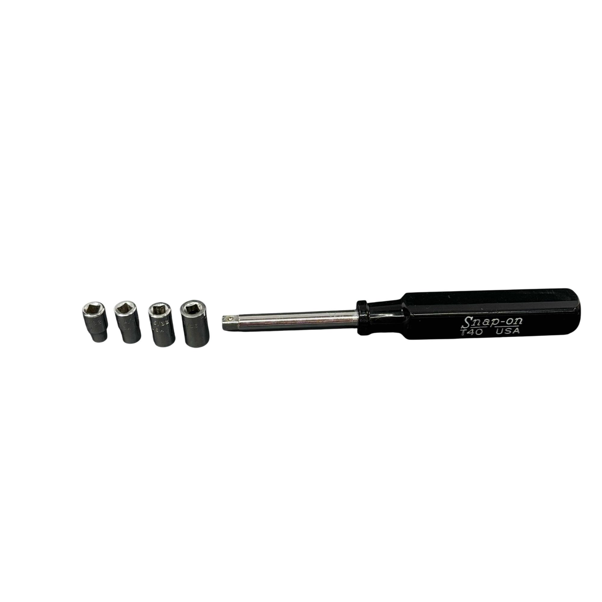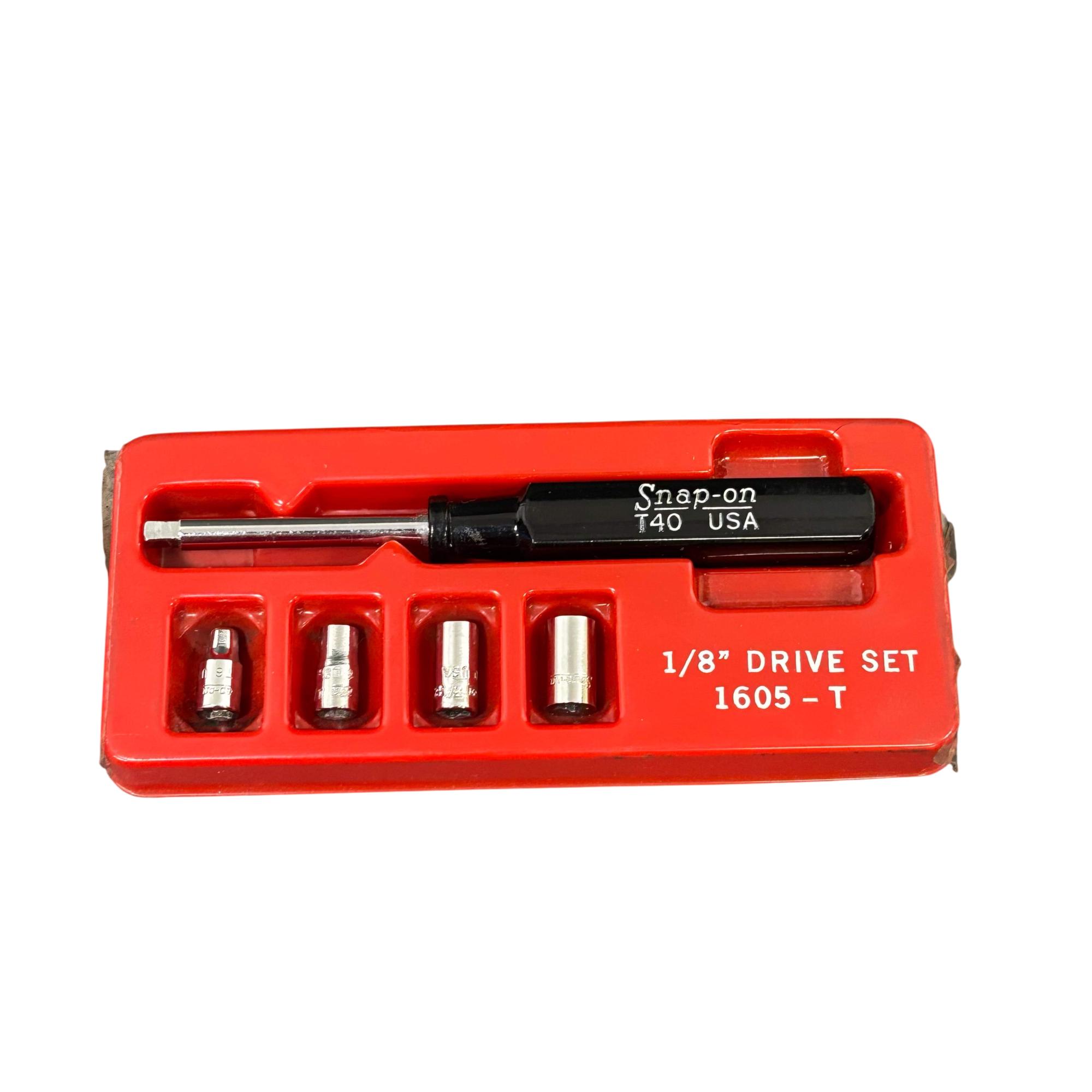 Snap-on 1605T 1/8" Drive 6-Point Shallow Socket Set features a precision-engineered design for reliable performance in tight spaces. This set includes five metric shallow sockets crafted from durable materials to ensure long-lasting strength and optimal torque. The black handle provides a comfortable grip, making it suitable for detailed mechanical and automotive tasks.