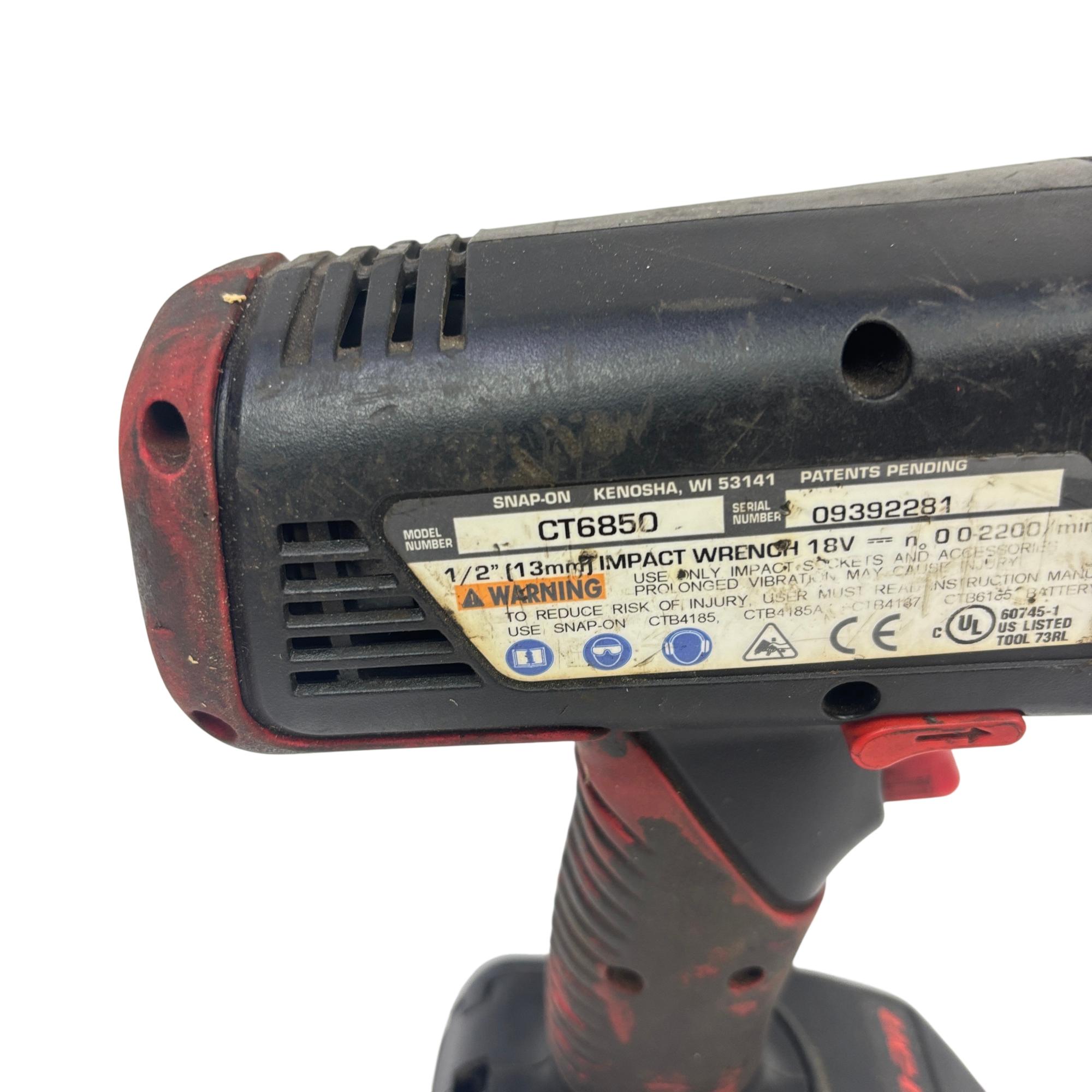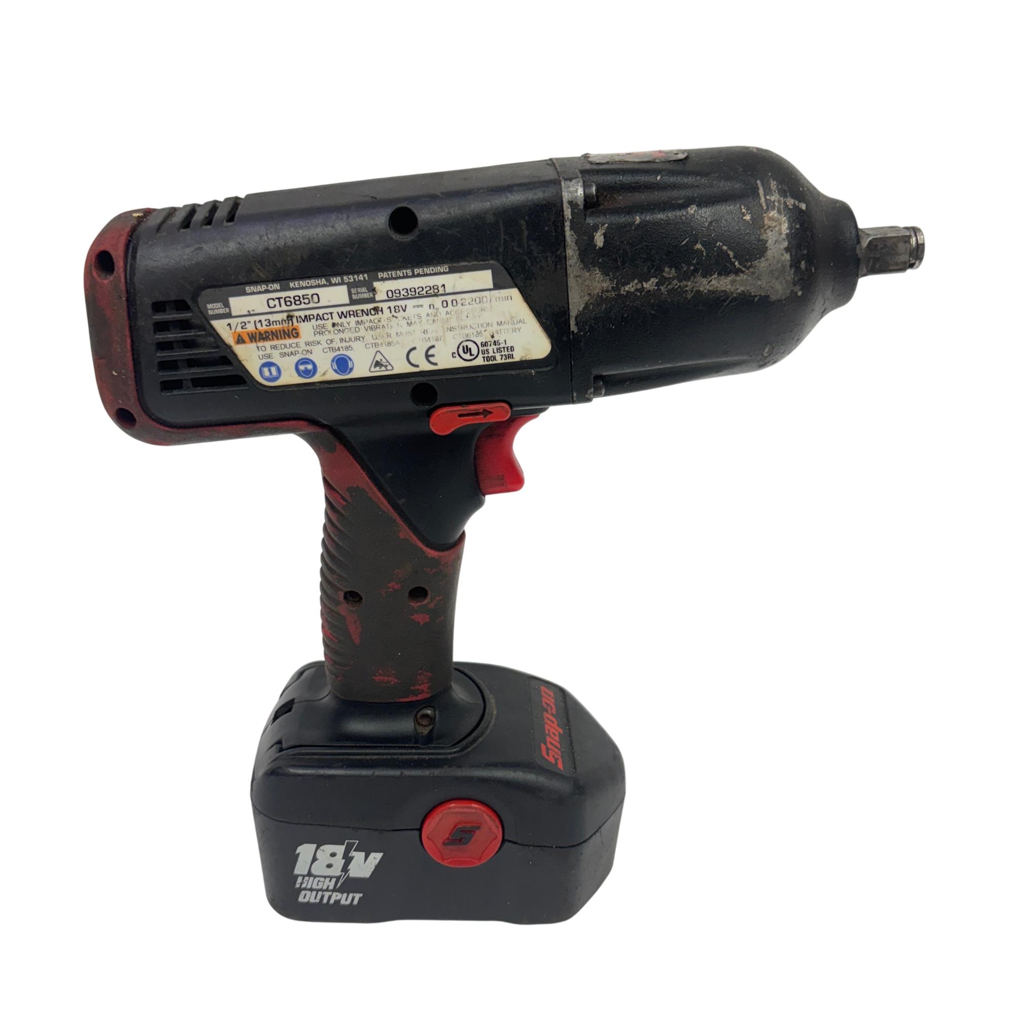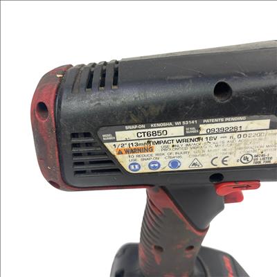 The Snap-on CT6850 18V 1/2" Cordless Impact Wrench delivers powerful torque with an 18-volt lithium and nickel-cadmium battery compatible design, featuring a robust 1/2-inch drive for heavy-duty fastening. Engineered for durability and high performance, this impact wrench offers a high output rate of up to 2200 RPM, making it suitable for automotive and industrial applications.