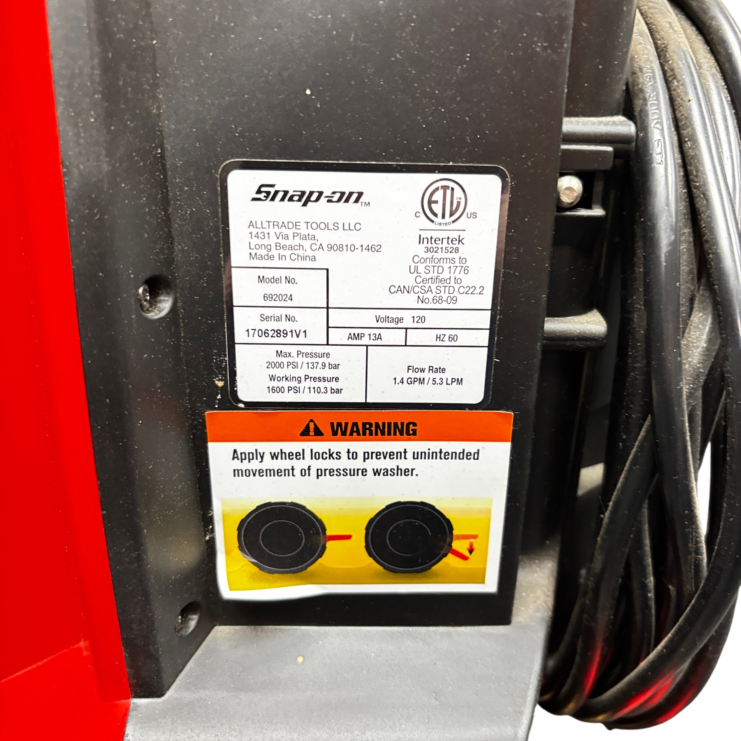 Snap-on 2000 PSI 1.4 GPM Corded Pressure Washer 692024 - Local Pickup Only