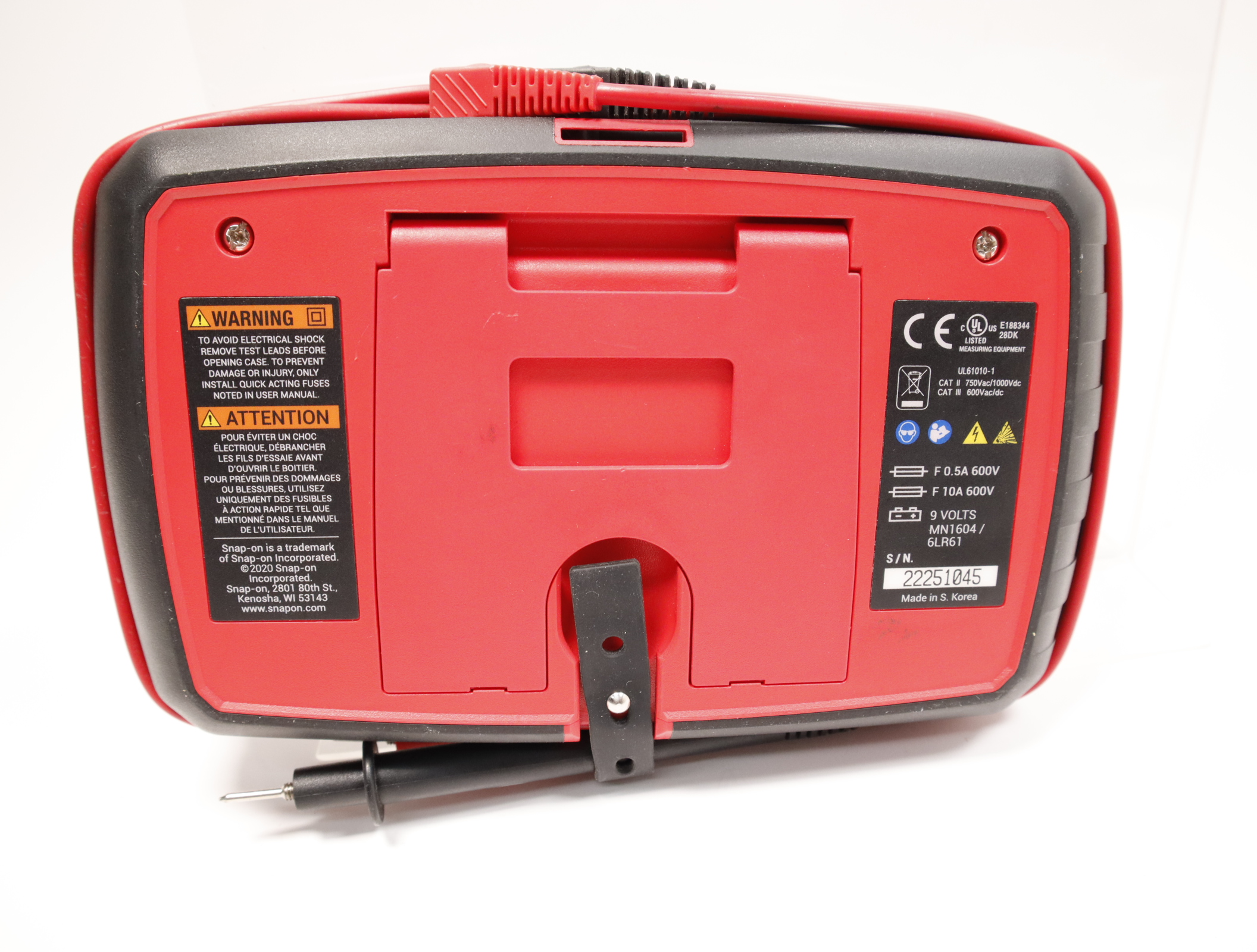 • Convenient test lead storage wrap with retention strap