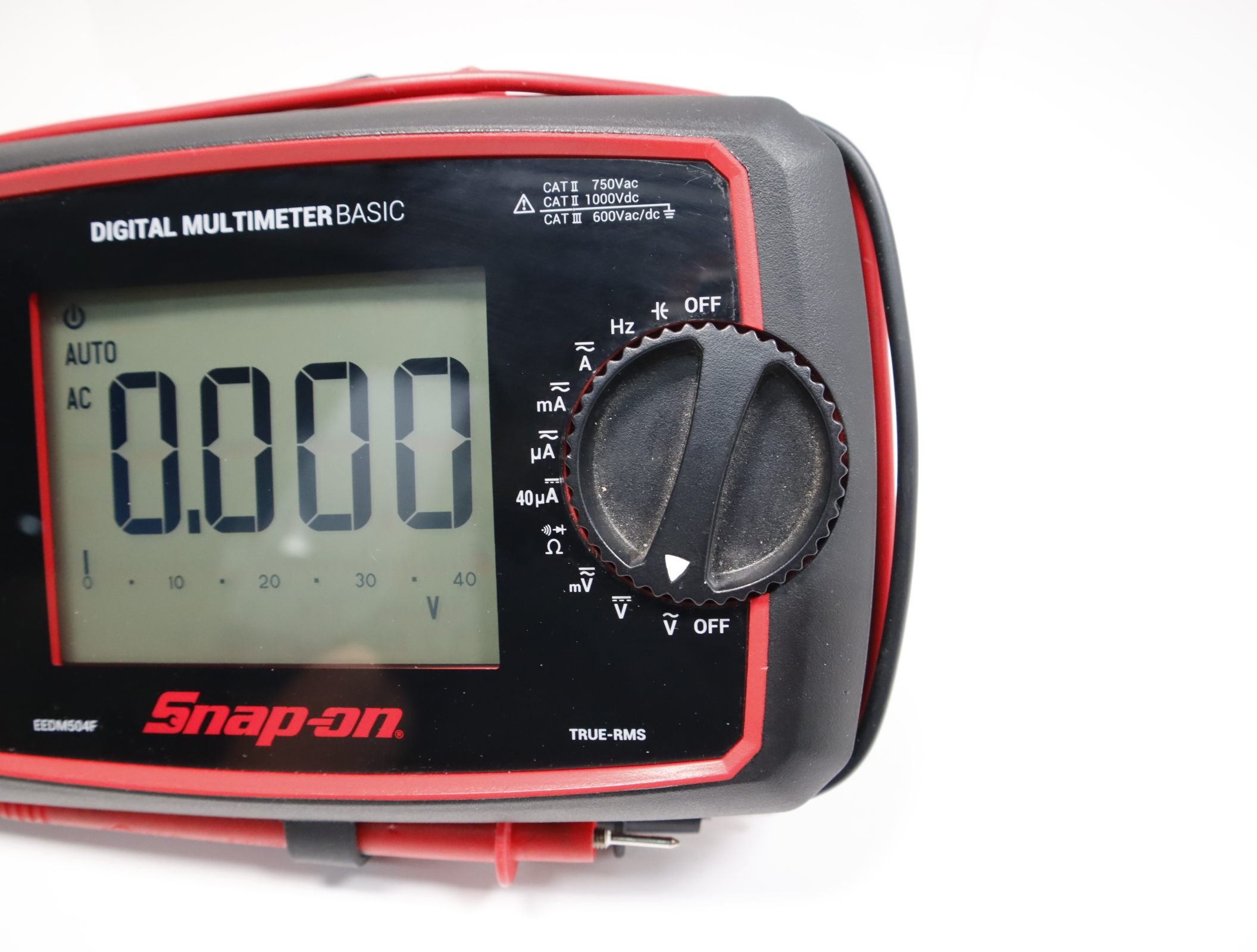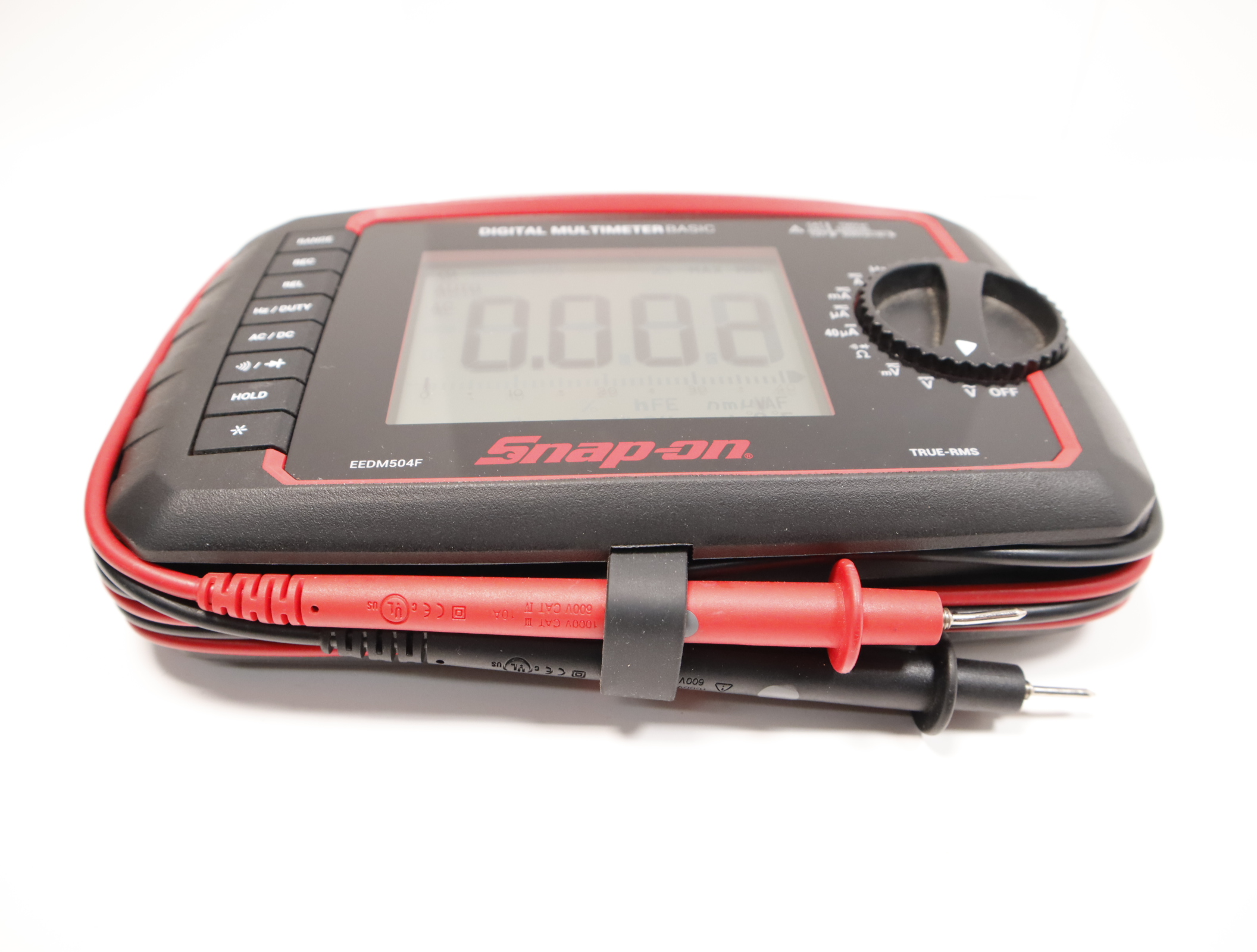 • Large, white backlit display for easy reading, plus quick identification of symbols in low light conditions and with the backlight off—the best Snap-on® meter in bright daylight