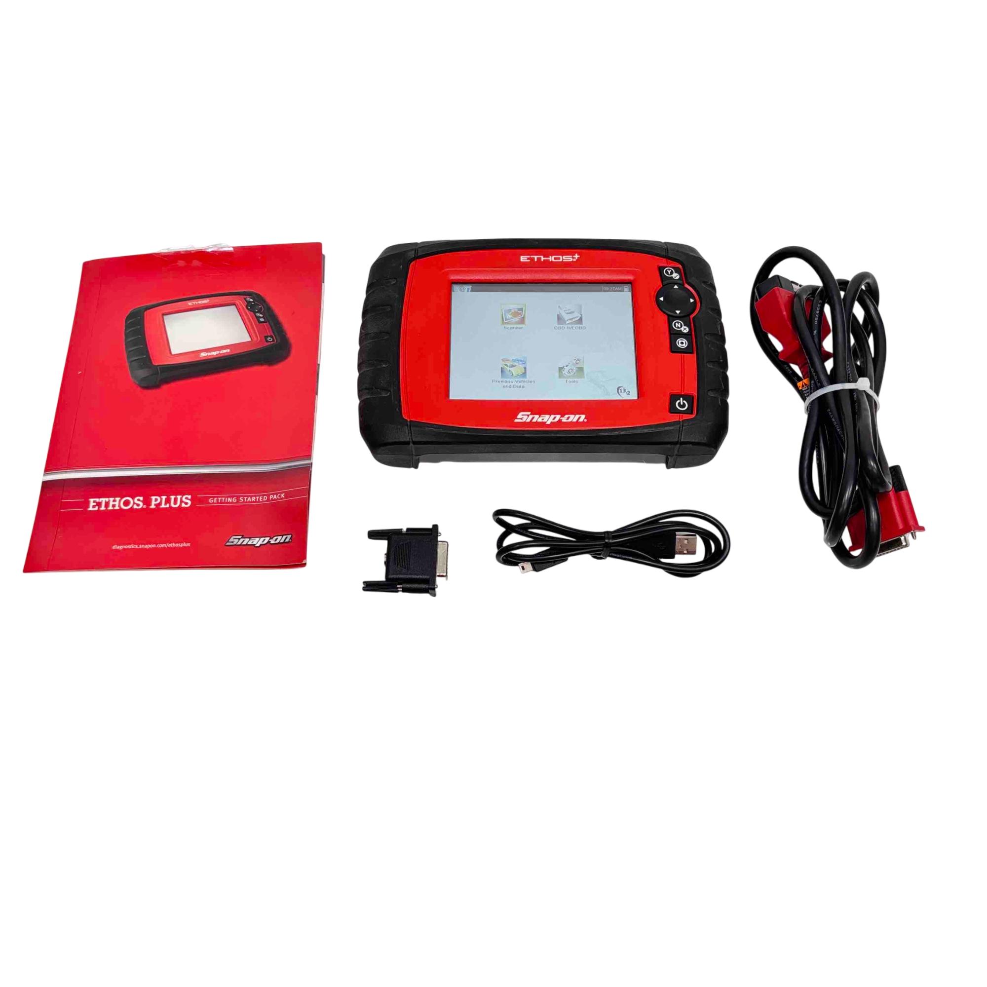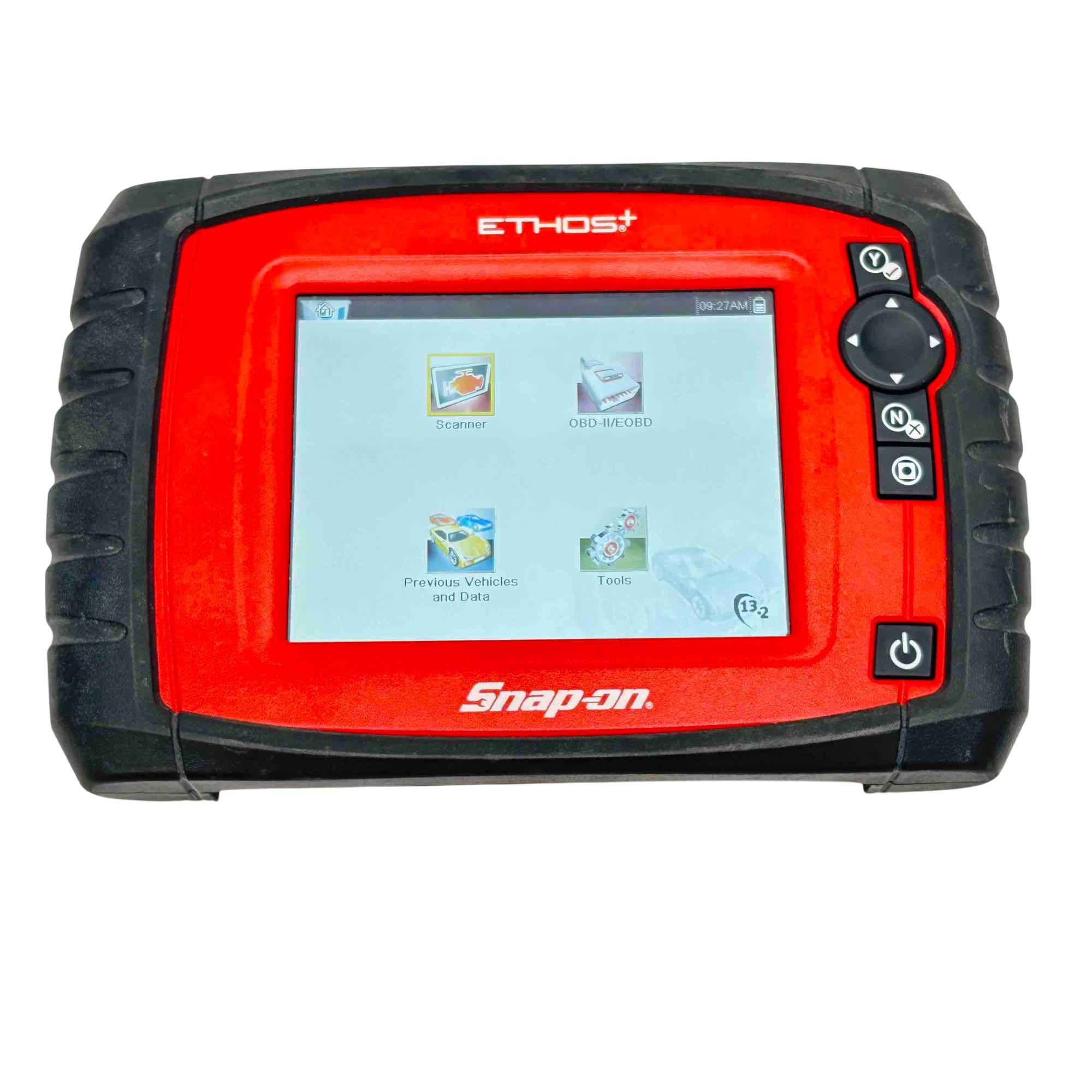 Introducing the Snap-on Tools EESC319 ETHOS+ OBD-II/EOBD Diagnostic Scan Tool Kit—your perfect partner for automotive diagnostics. With its sleek red and black design, this electronic device is engineered for precision and ease, offering comprehensive diagnostic capabilities for any vehicle. Compact yet powerful, embrace top-tier efficiency and accuracy in your workspace today.
