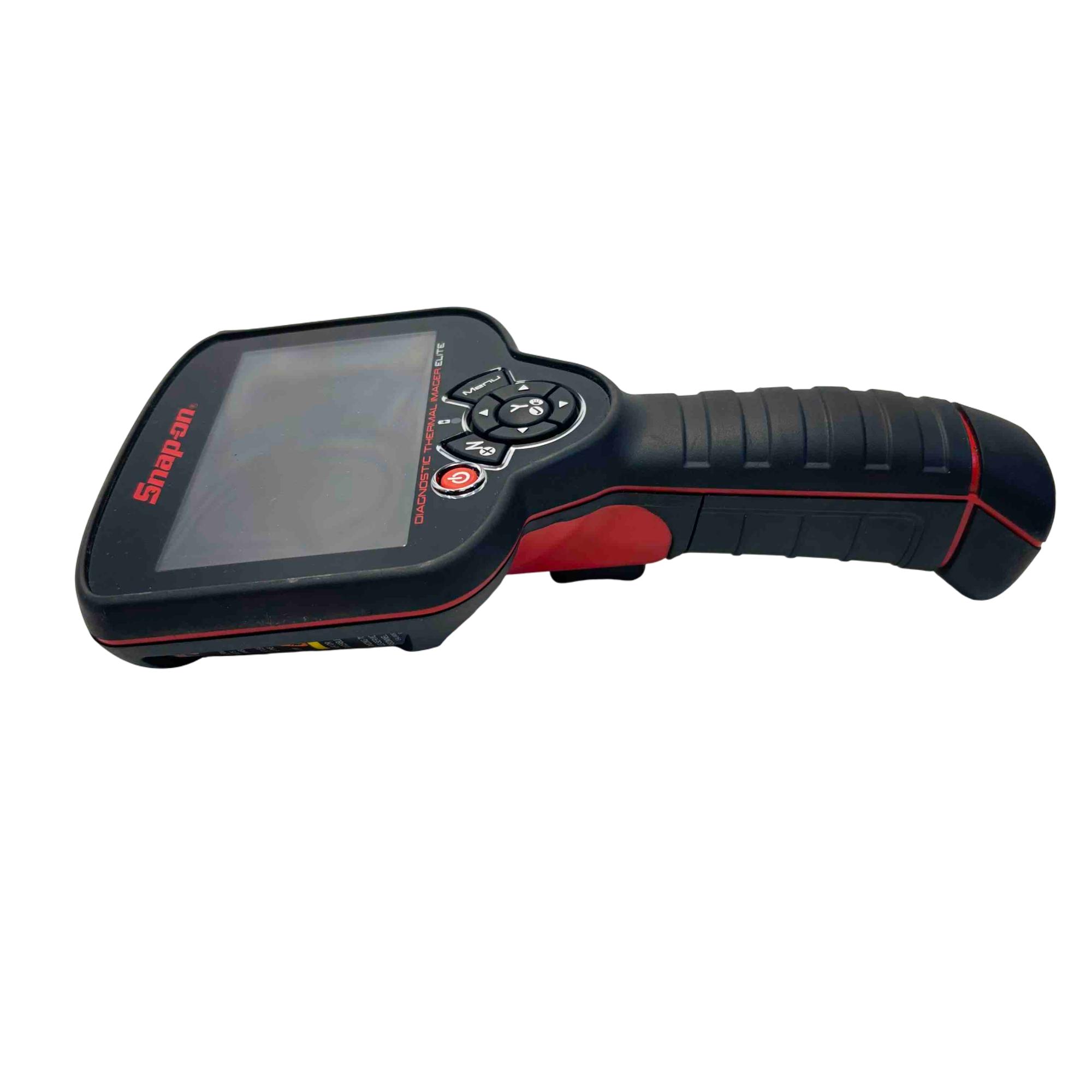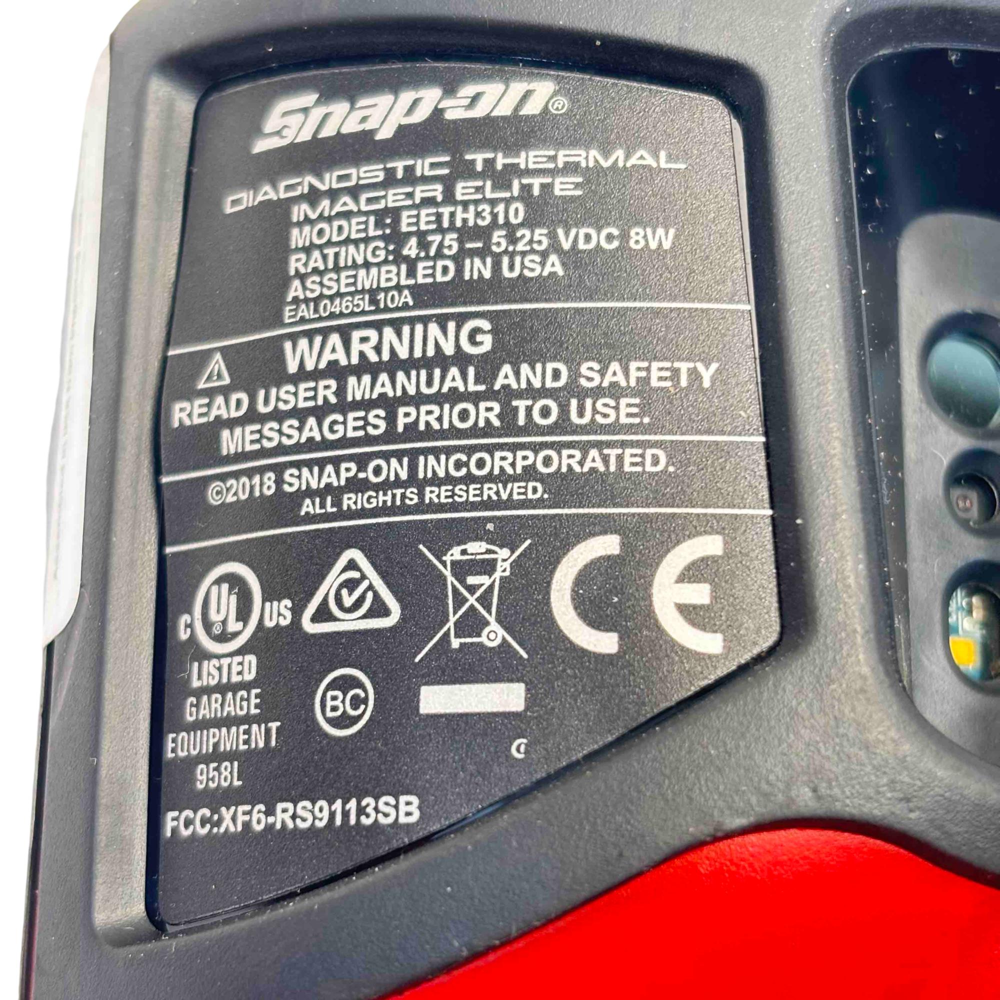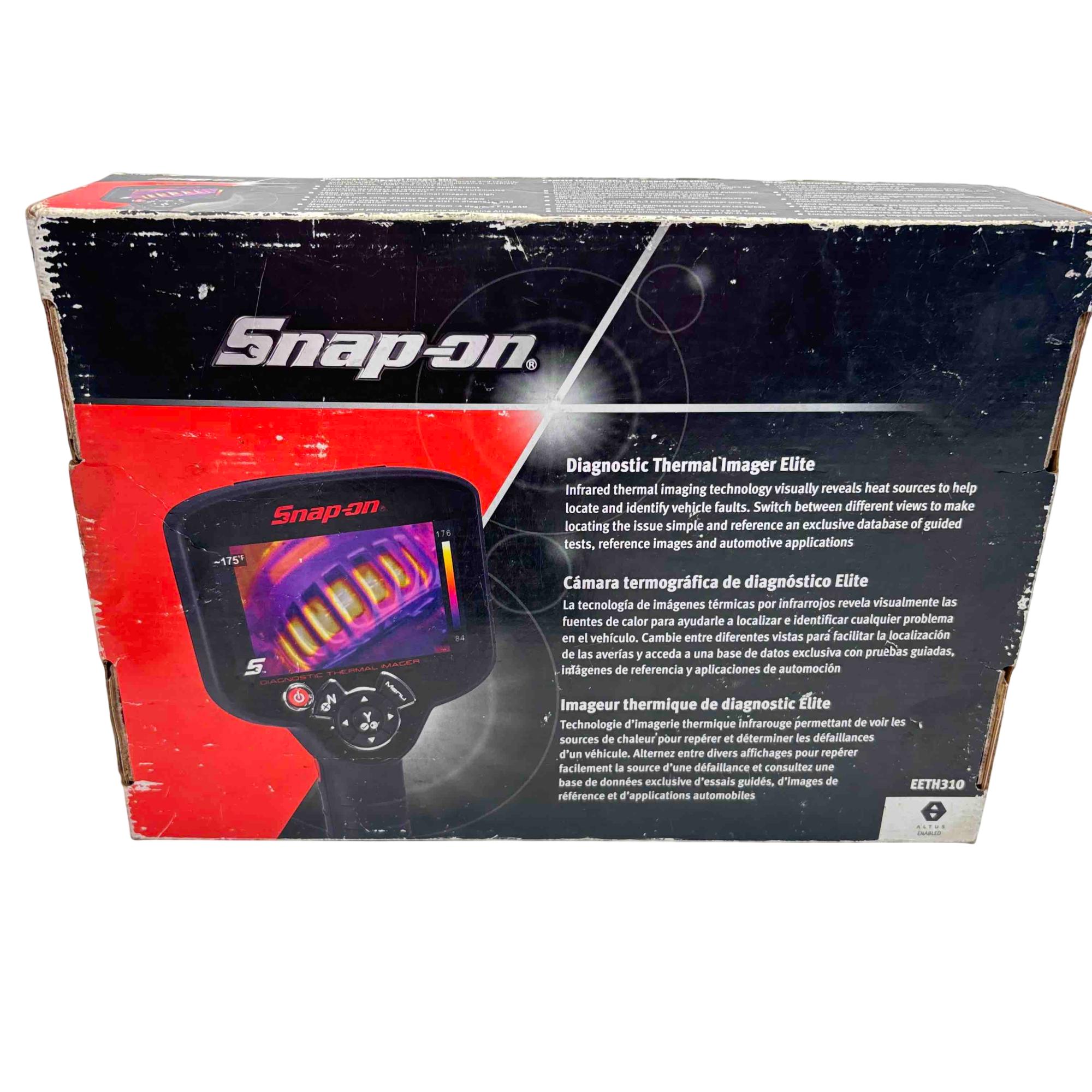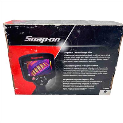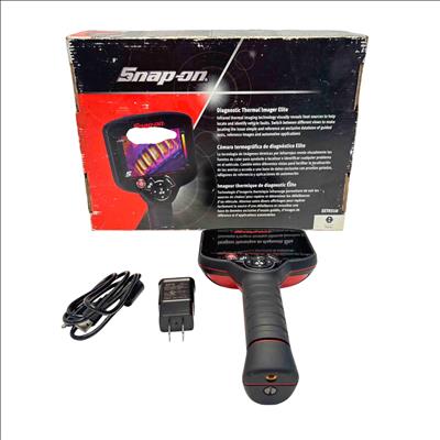 Snap-on EETH310 Diagnostic Thermal Imager Elite uses advanced infrared thermal imaging technology to visually reveal heat sources, aiding in the quick location and identification of vehicle faults. It features multiple view modes and access to an exclusive database with guided tests, reference images, and automotive applications for precise diagnostics. This diagnostic tool includes a USB charger and is designed for professional automotive troubleshooting and inspection.