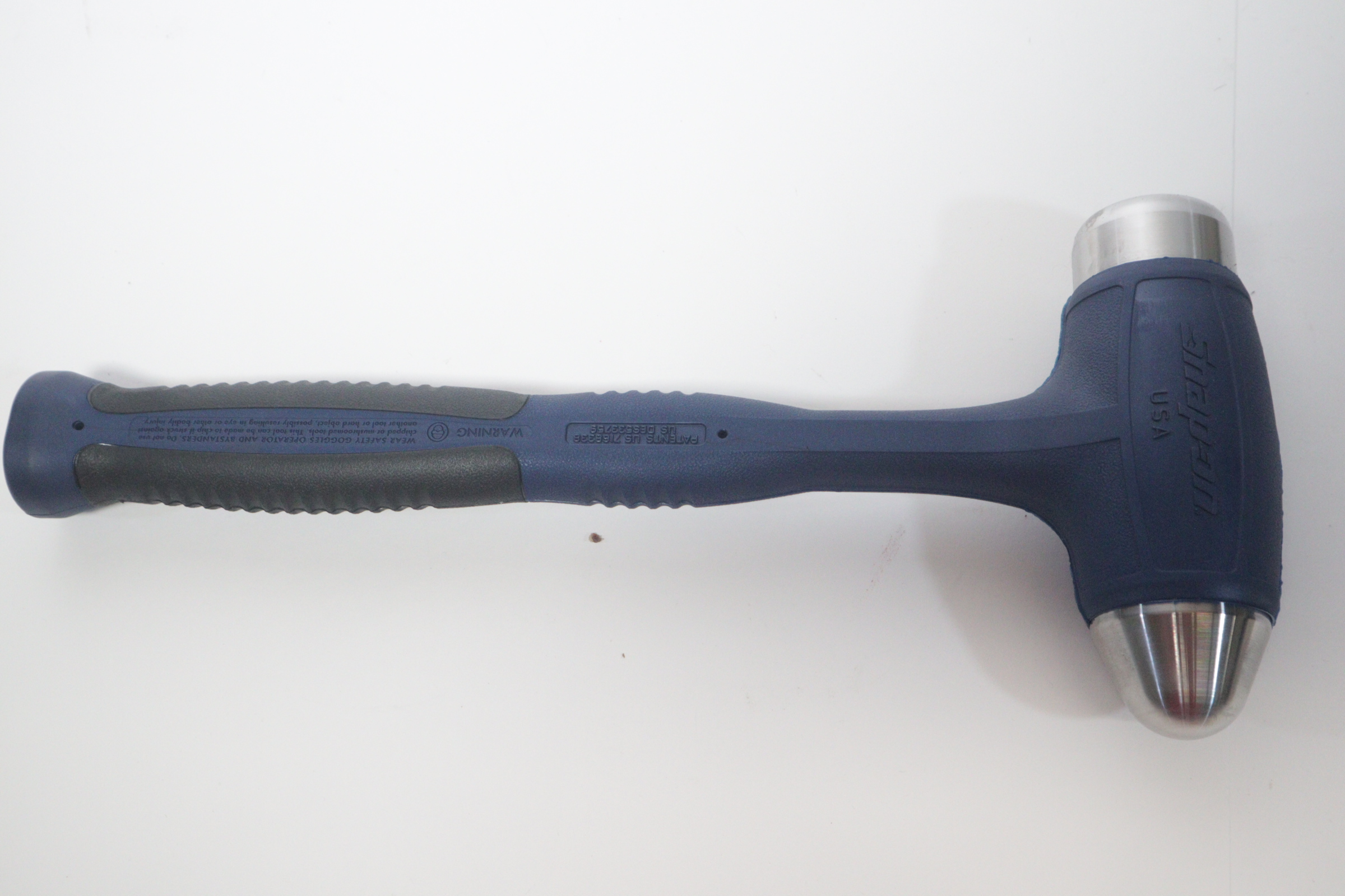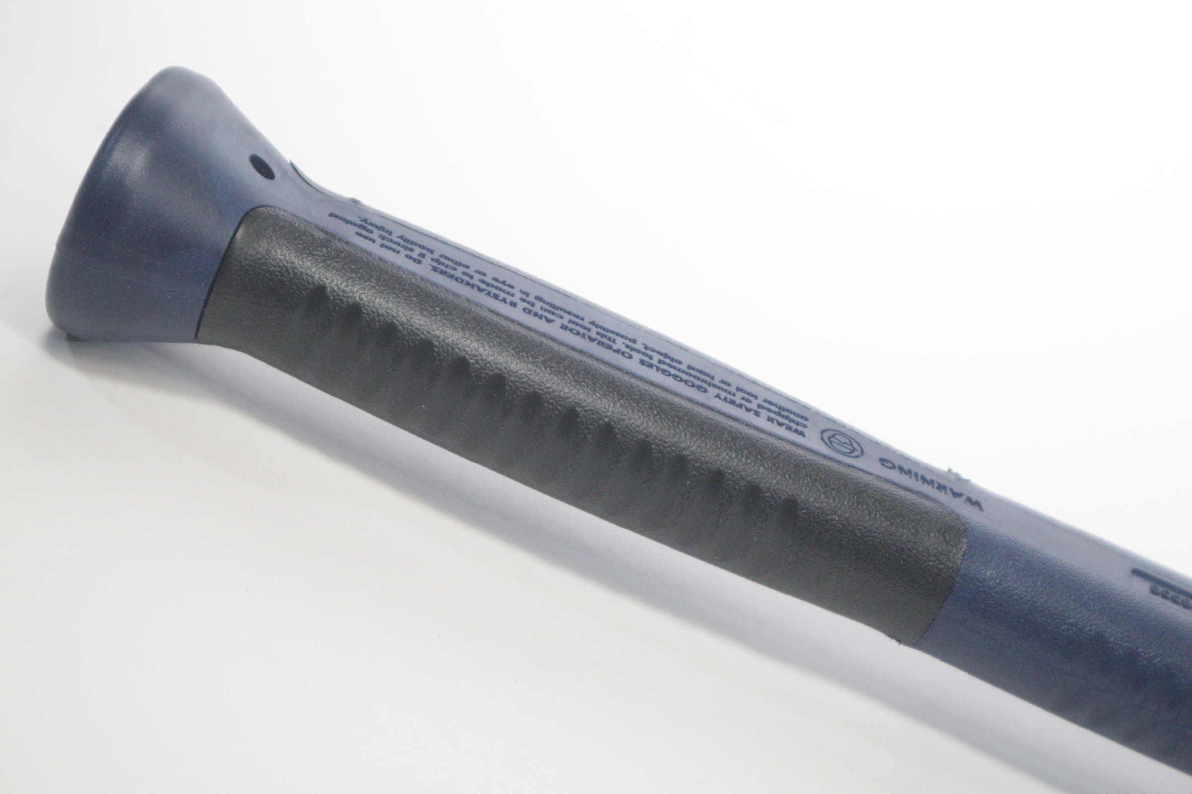 Composite shank extends from the head through handle, delivering a more powerful blow and dampening vibration