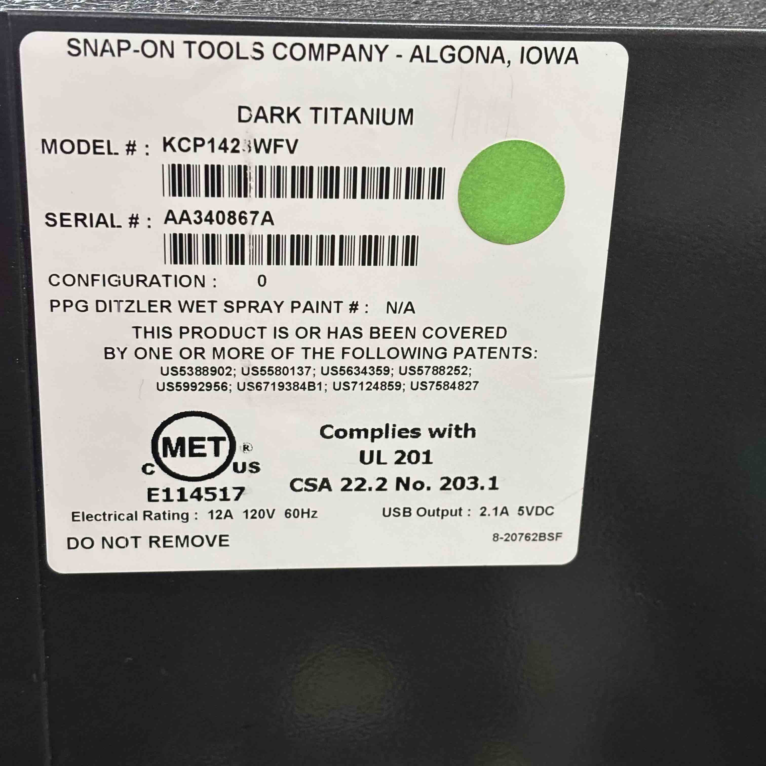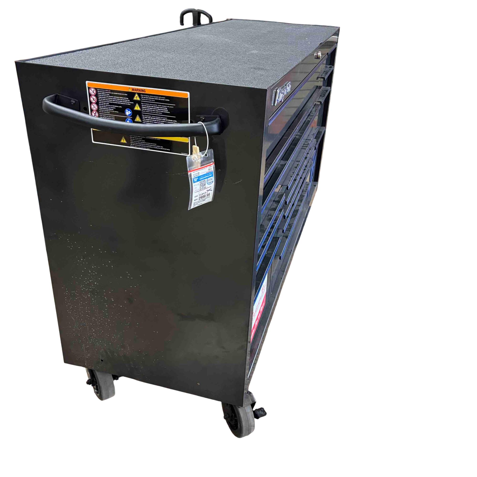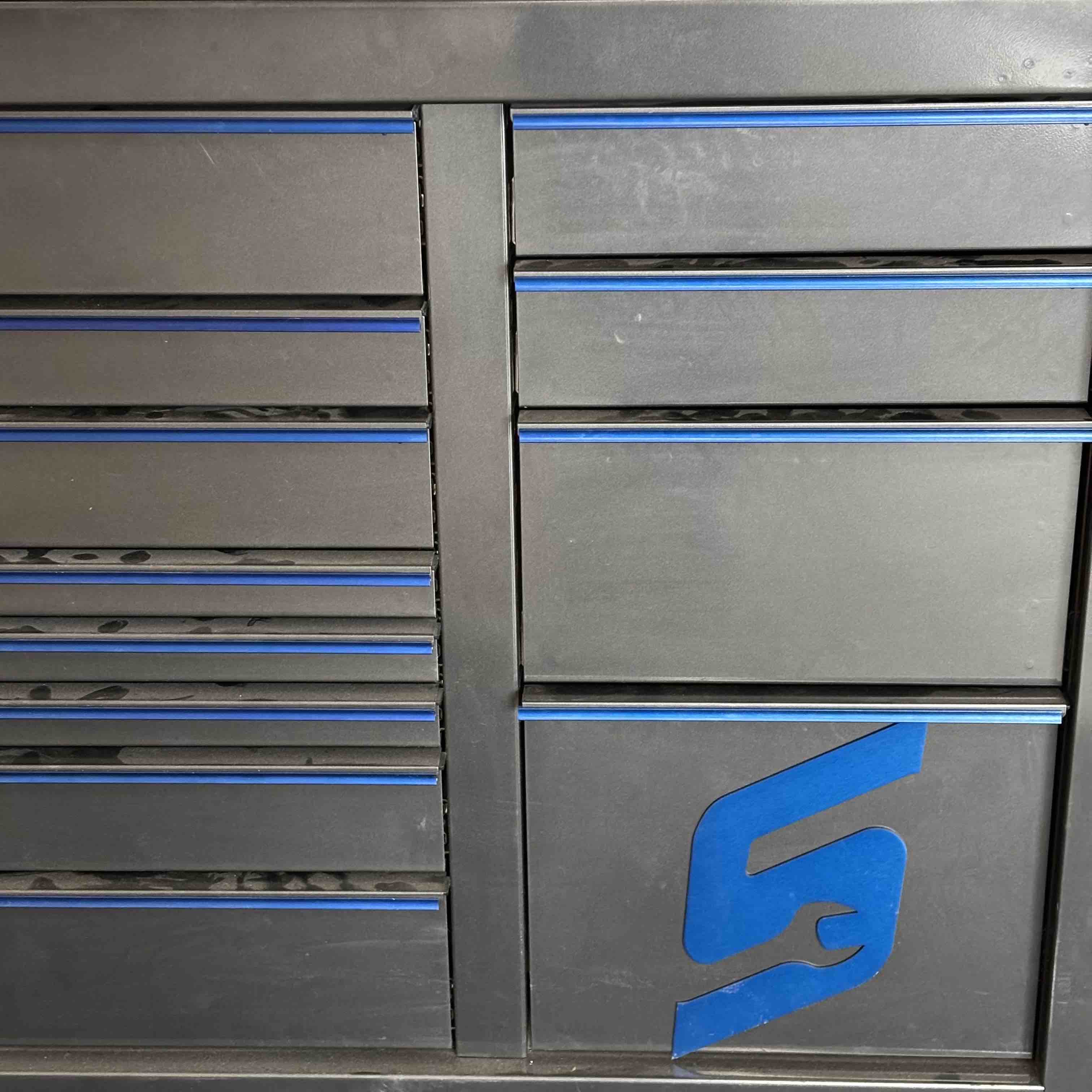 Upgrade your workshop with the Snap-on Tools KCP1423WFV Dark Titanium rolling toolbox. Featuring a rugged black and blue steel frame, multiple spacious drawers, and high-quality wheels, this premium tool storage solution combines durability with convenience. Ideal for professionals seeking secure, mobile, and stylish storage for their valuable tools.