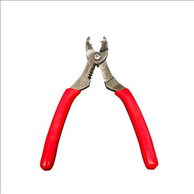 The Snap-on PWCS7ACF 7-inch wire stripper, cutter, and crimper features durable red handles designed for comfortable grip and precise control. Made in the USA, this versatile hand tool is engineered for efficient stripping, cutting, and crimping of various wire gauges, combining functionality and ergonomic design for professional electrical work.