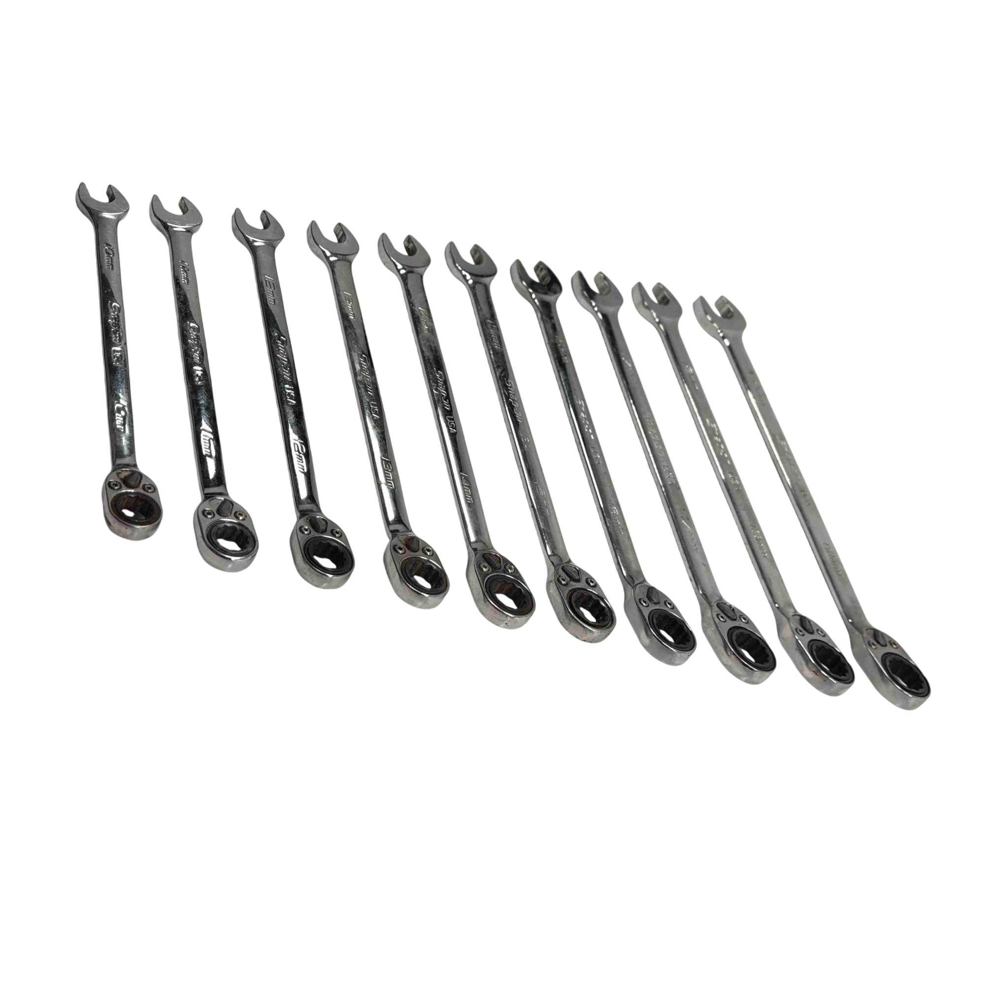 Upgrade your toolbox with the Snap-on SOXRRM710A, a premium 10-piece set of reversible ratcheting combination wrenches, covering 10mm through 19mm. Renowned for their precision, durability, and made in the USA, these wrenches offer professional-grade performance and smooth operation for any mechanical task. Ideal for demanding mechanics and serious DIYers, this lightly used set is a must-have for those who value top-tier tools.
