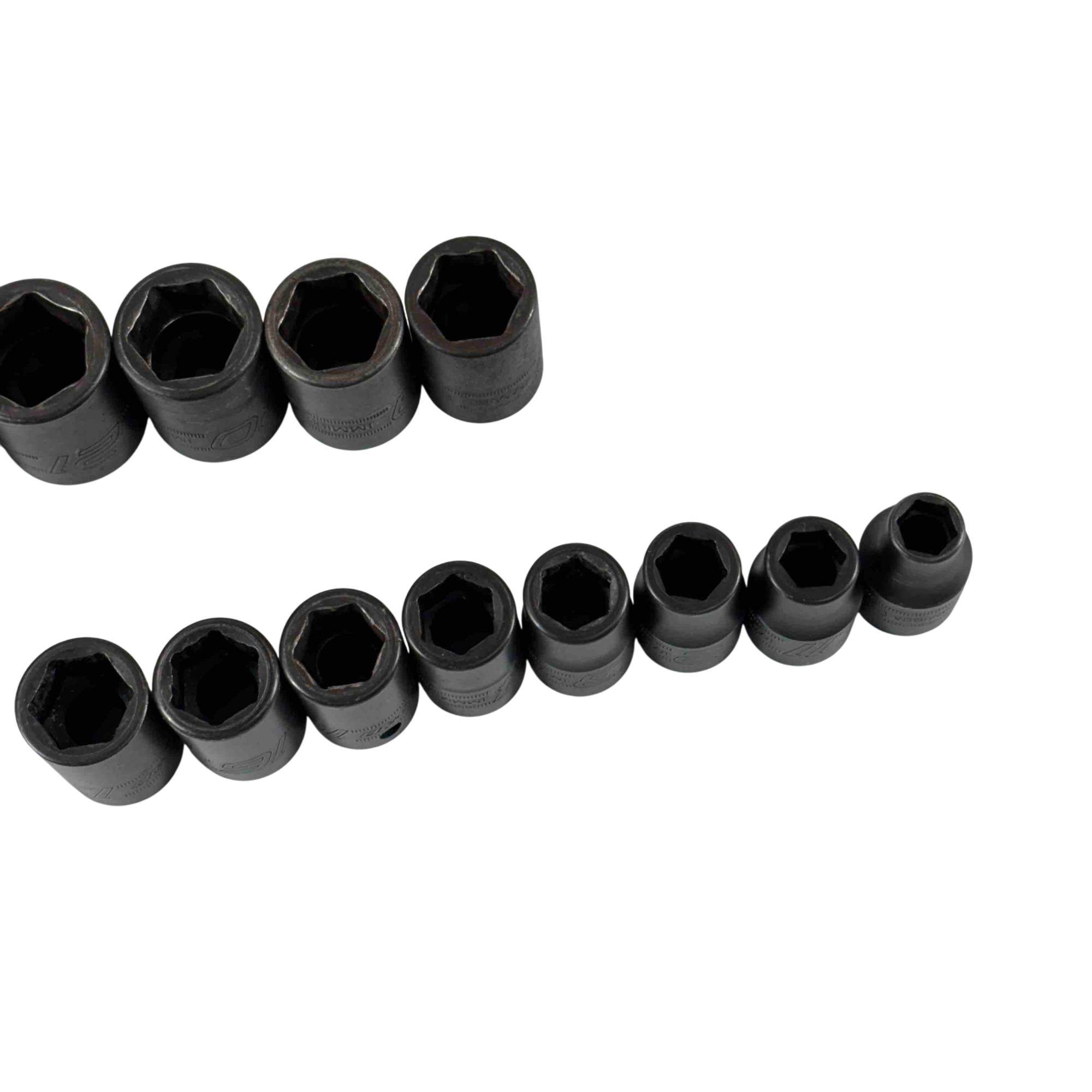 Built for strength and precision, this Snap-on 14-piece impact socket set features the Flank Drive system for up to 20% more turning power without slipping or rounding. Each socket is heat-treated for maximum durability and optimized for impact use, offering superior performance under repeated torque loads. Made from high-quality domestic steel with an industrial corrosion-resistant finish, these shallow sockets provide reliable fit, strength, and long service life.