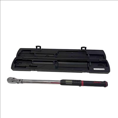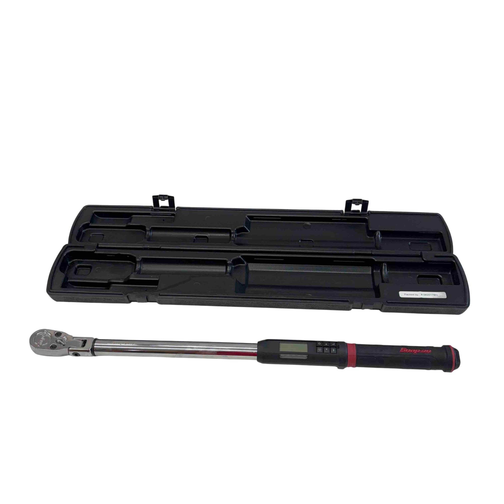 Snap-on Tools ATECH3FR250B 3/8 Drive TechAngle Electronic Torque Wrench is a precision tool designed for accurate torque measurement in mechanical applications. Featuring a compact black plastic tube and electronic display housed in a durable case, it ensures reliable tightening with advanced angle measurement technology. Assembled in the USA, this torque wrench offers enhanced control for automotive and industrial use.