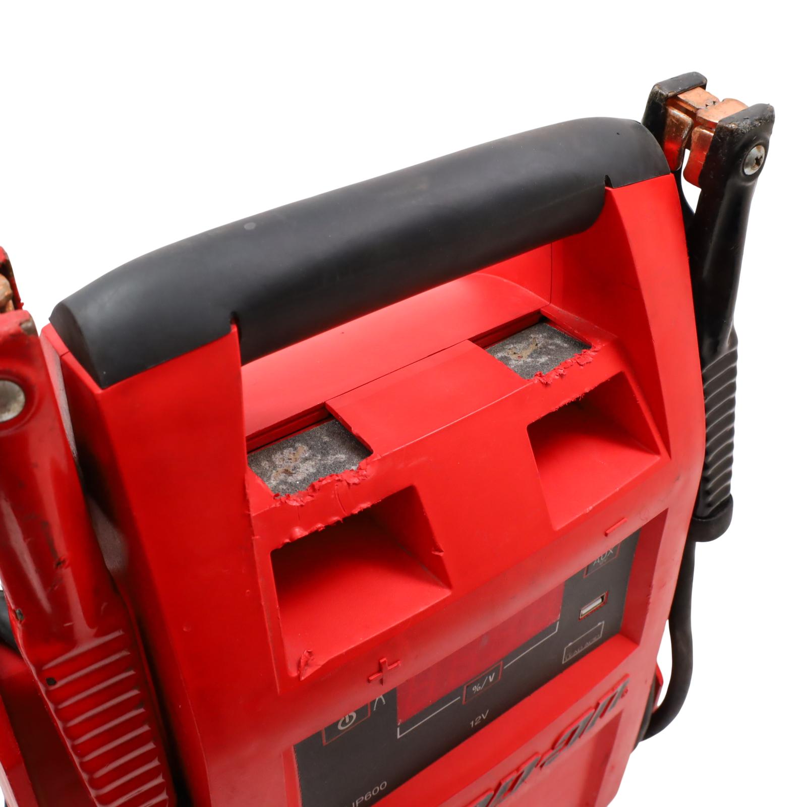 Provides 350 cranking amps (290 cold) and uses durable 2-gauge copper cables, with a smart digital display that shows internal charge level, DC voltage, and vehicle battery voltage. It includes a safety override for starting vehicles with very low battery voltage, reverse-polarity protection, and an integrated USB port for charging small devices, offering a straightforward tool for automotive starting needs.