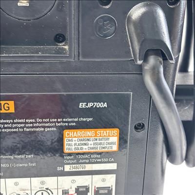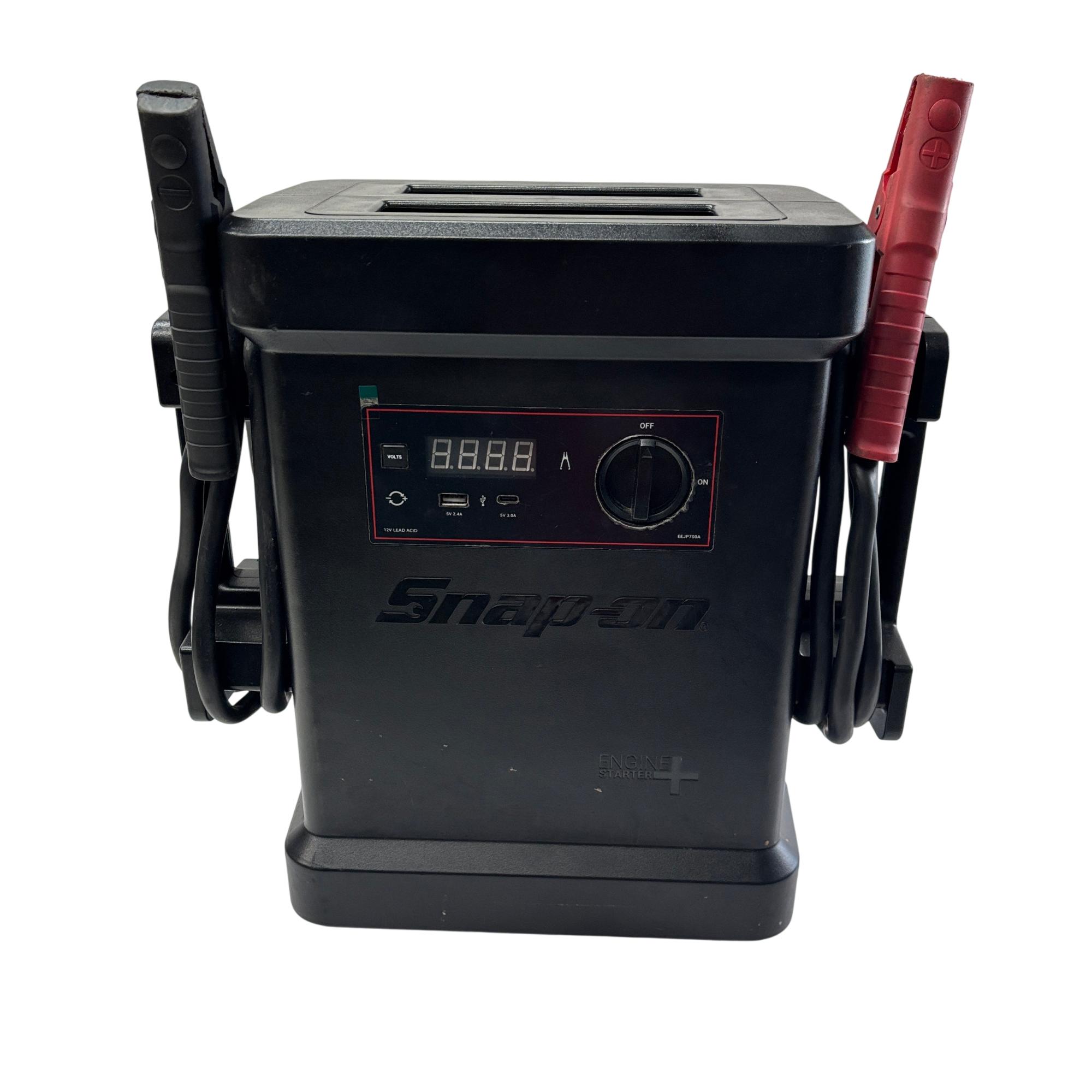 Snap-on Tools EEJP700A 12V Engine Starter Plus with AGM Battery is a compact and portable device designed to provide reliable jump-start power for 12V lead-acid batteries. Featuring an intuitive control panel with dials and buttons, it ensures safe operation with clear charging status indicators and robust cable connections. Engineered for use in well-ventilated areas, this unit includes built-in safety warnings to prevent misuse and potential hazards during vehicle starting procedures.