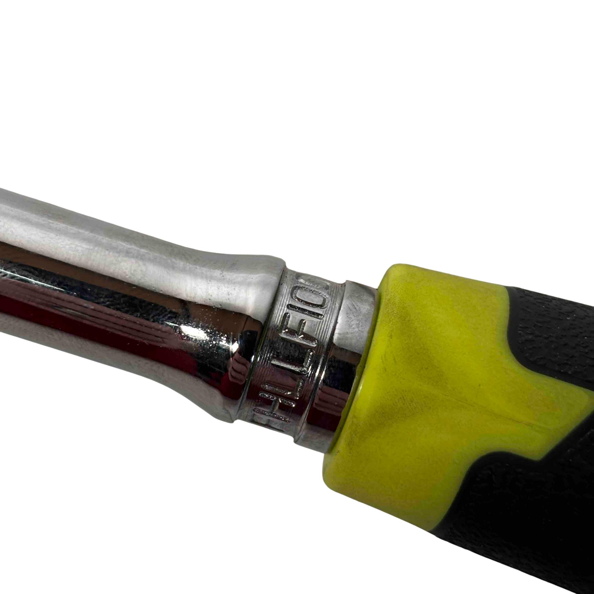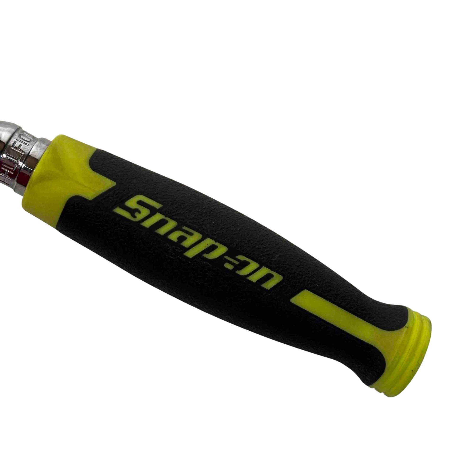 Upgrade your toolbox with the Snap-on Tools FHLLF100 3/8" Flex Head Ratchet. Known for its durability and precision, this ratchet features a flexible head perfect for reaching tight spaces with ease. The black and yellow handle not only provides a comfortable grip but also adds a stylish touch to your collection.