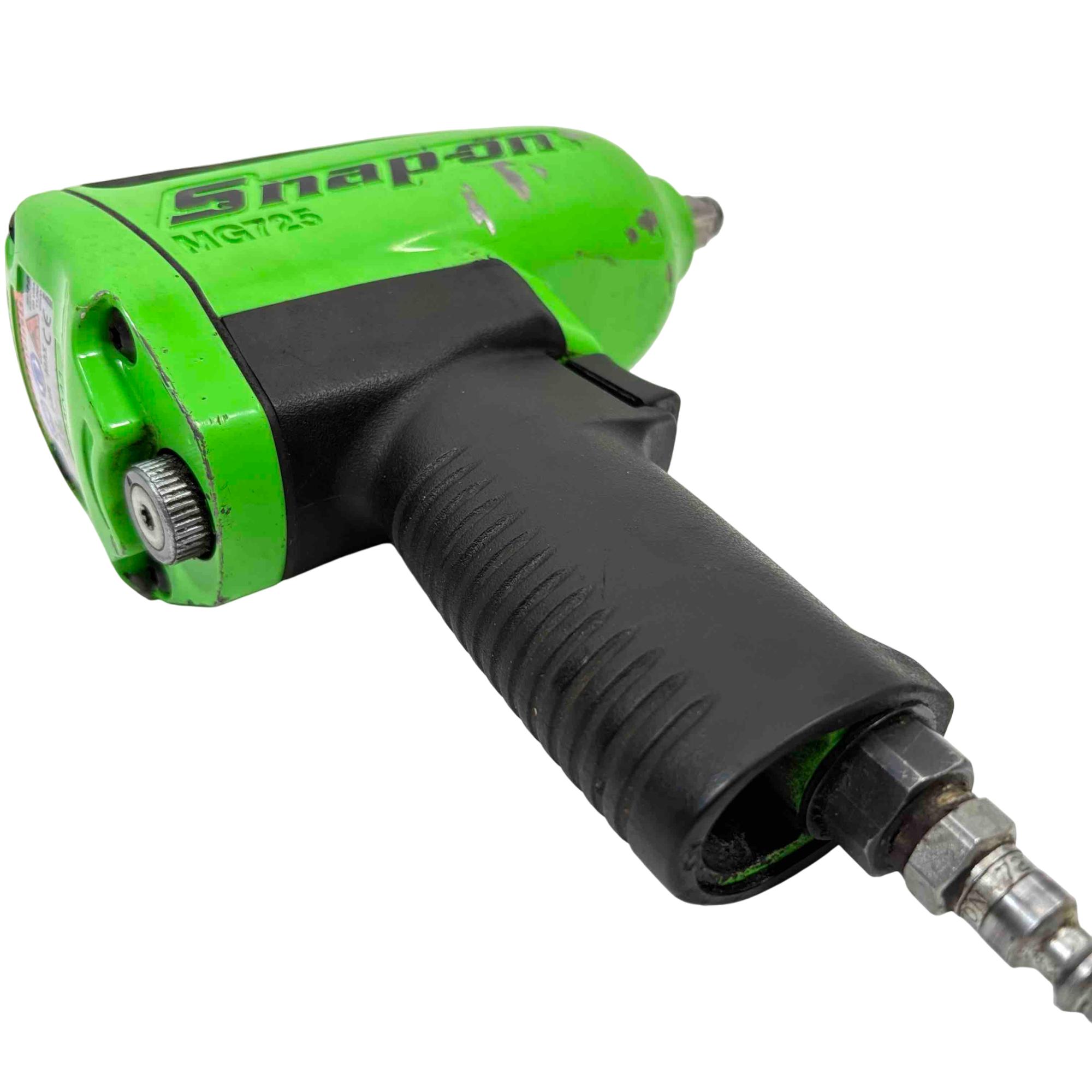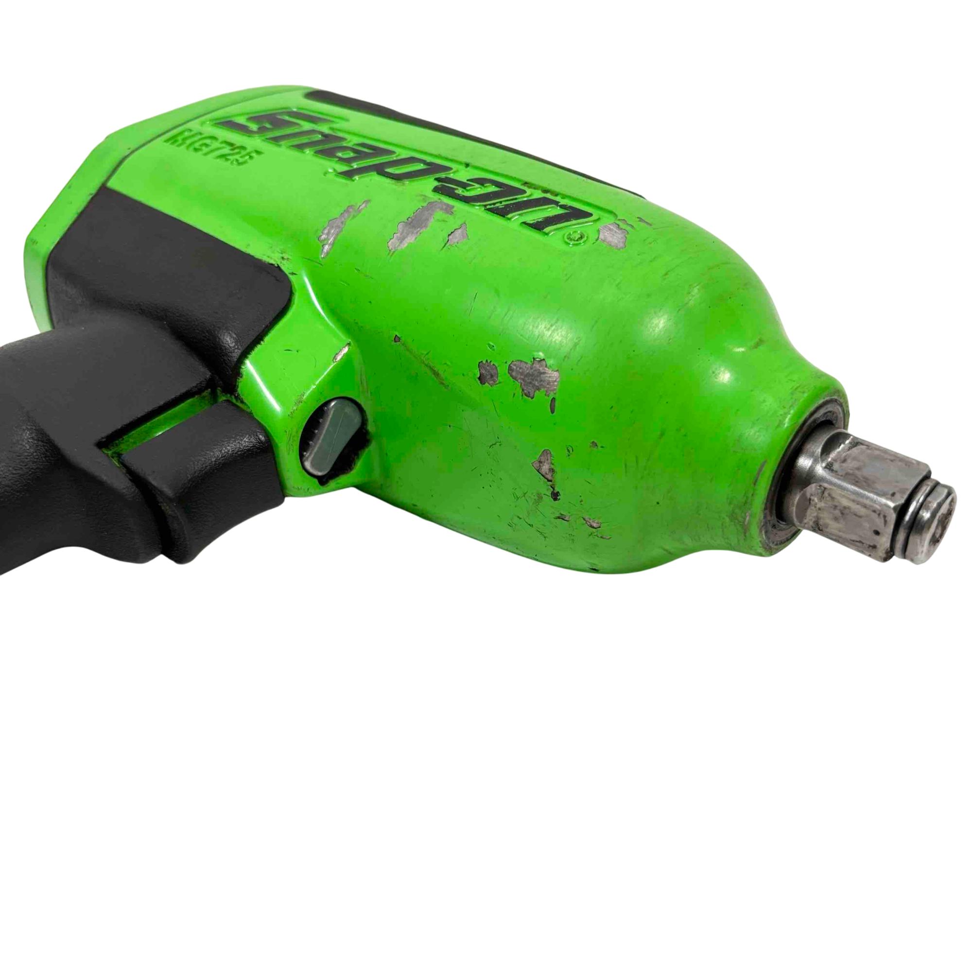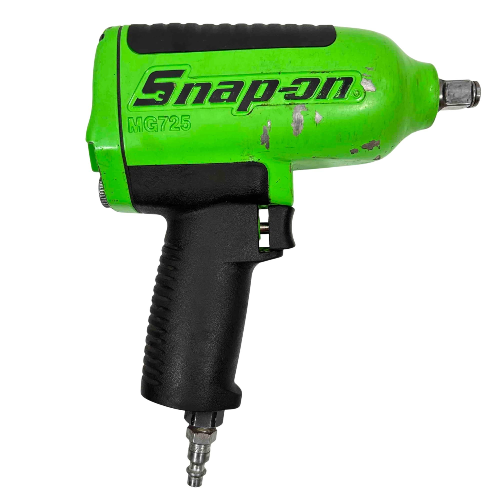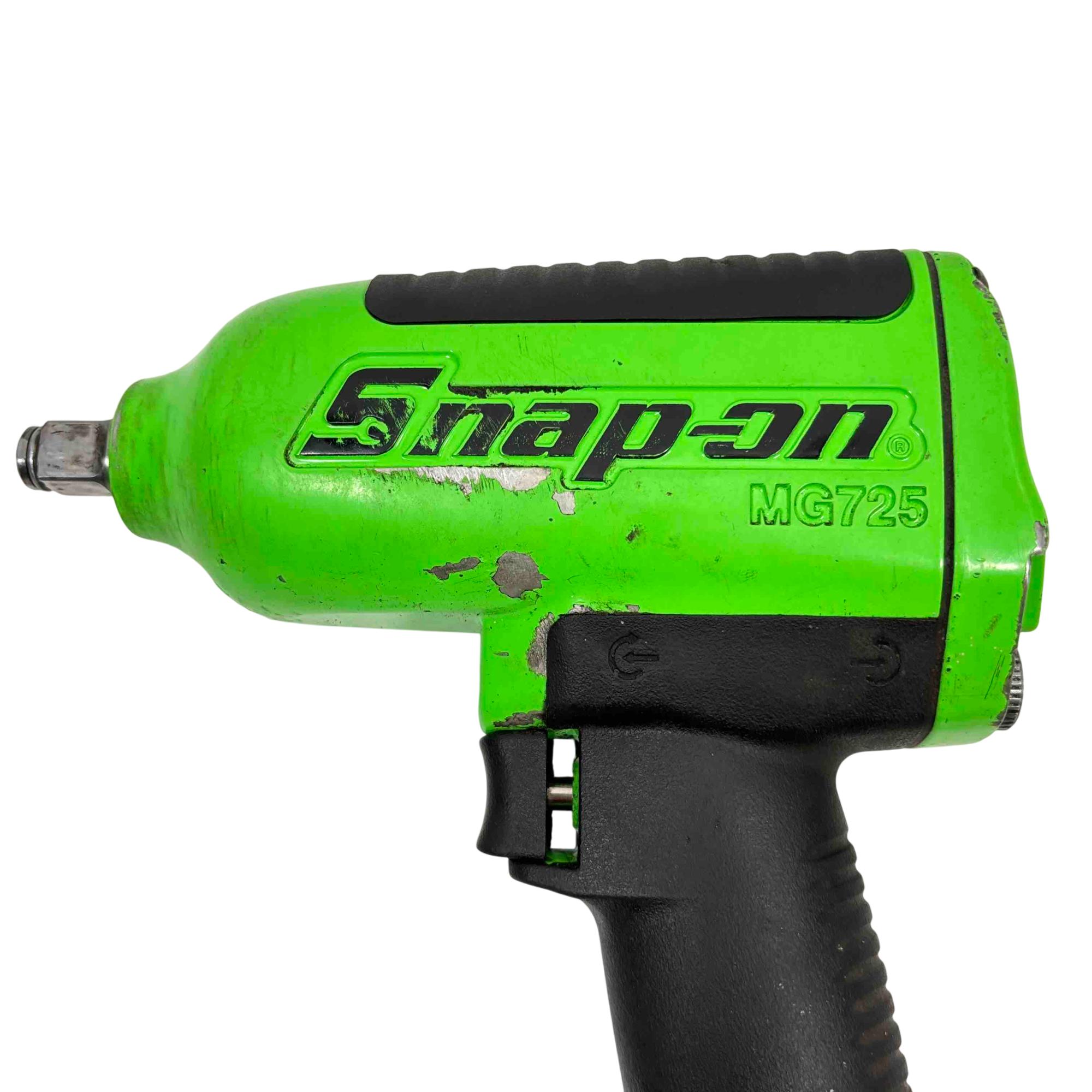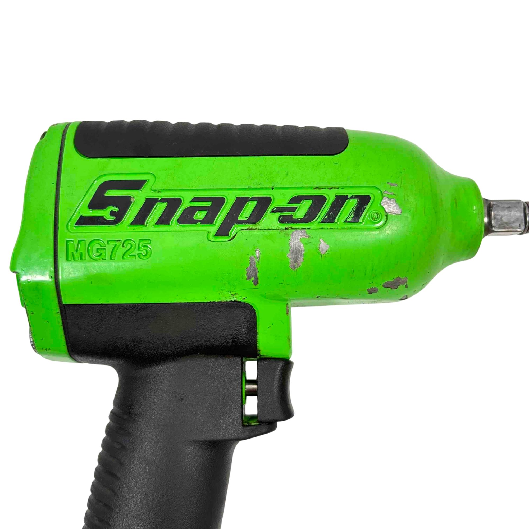 Enhance your tool collection with the Snap-on Tools MG725 Heavy Duty Air Impact Wrench, now in an exclusive limited edition green color. This robust and reliable tool offers superior performance, delivering high torque for demanding jobs. Its ergonomic design ensures comfort during extended use, making it a must-have for any professional or DIY enthusiast.