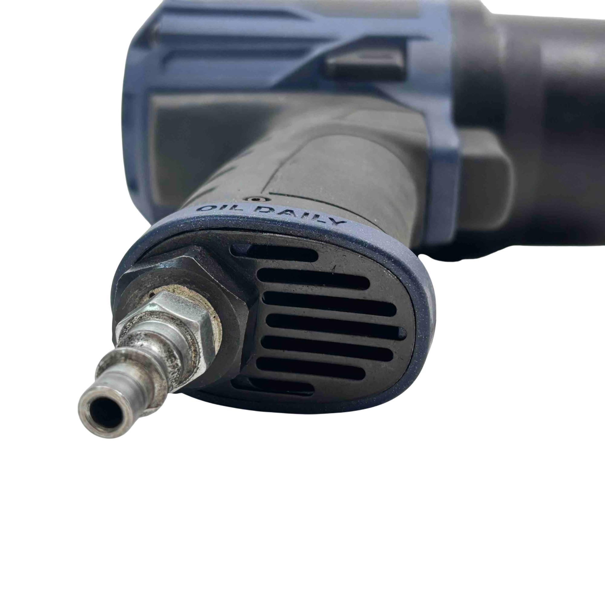 A 1/2" drive air impact wrench designed for high-performance automotive and industrial tasks. It delivers up to 1,190 ft-lb of bolt breakaway torque and 810 ft-lb of working torque, with a free speed of 9,200 RPM and 1,270 blows per minute to enable rapid fastener removal. Built with a forged anvil, frame, and hammers, this tool is engineered for long-term durability. It features a cushioned grip handle for comfort, reduced vibration, and insulation from cold temperatures. The ergonomic design includes a slow-start anvil for improved control, a one-handed forward/reverse lever, and a large dial-type regulator knob for quick adjustments.