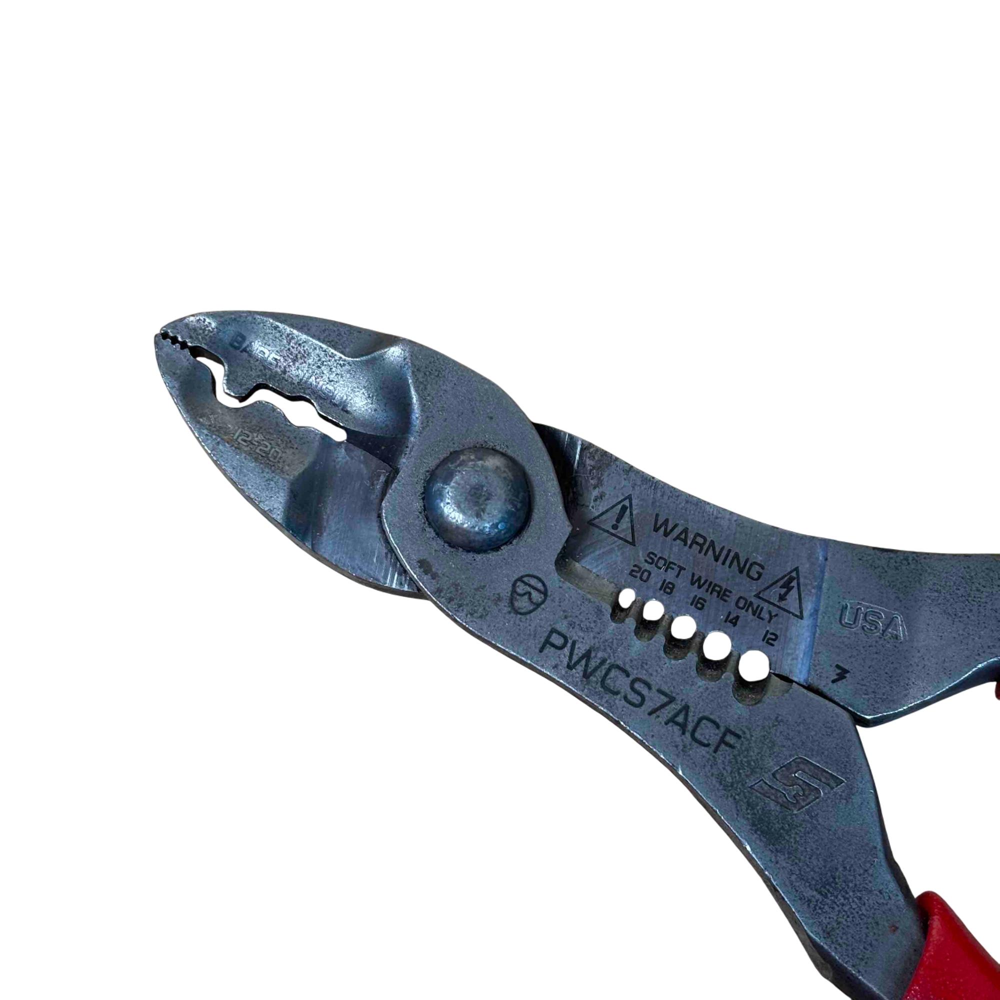 Experience professional-grade performance with the Snap-on PWCS7ACF, a versatile 7-inch tool designed for cutting, stripping, and crimping wires with precision. Featuring durable red handles for a comfortable grip and engineered in the USA, this tool is essential for electricians, DIYers, and automotive technicians seeking reliability and longevity. Get the job done efficiently with the trusted quality of Snap-on.