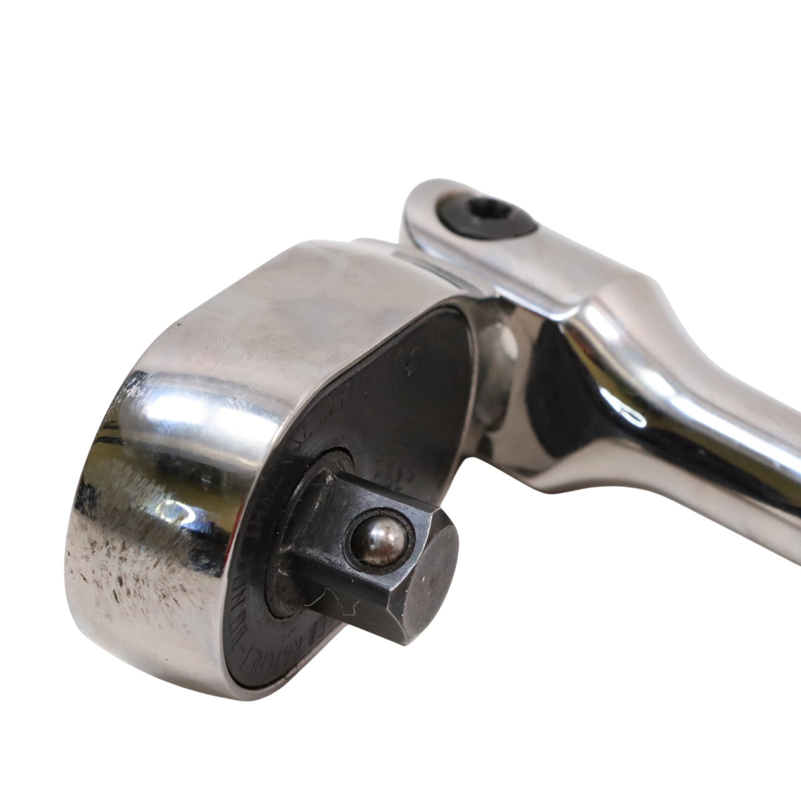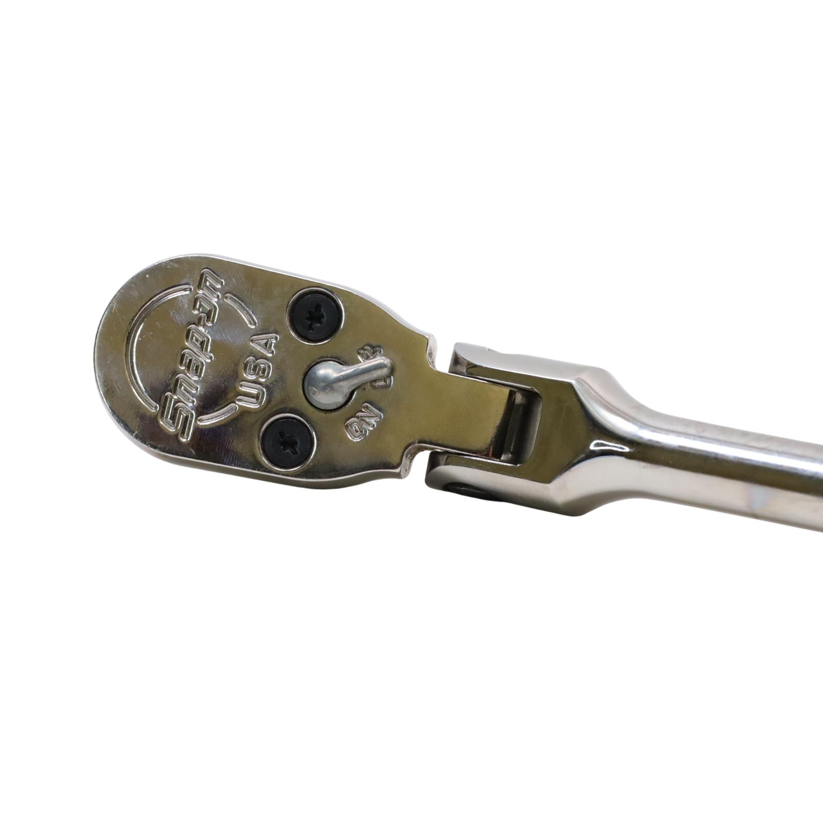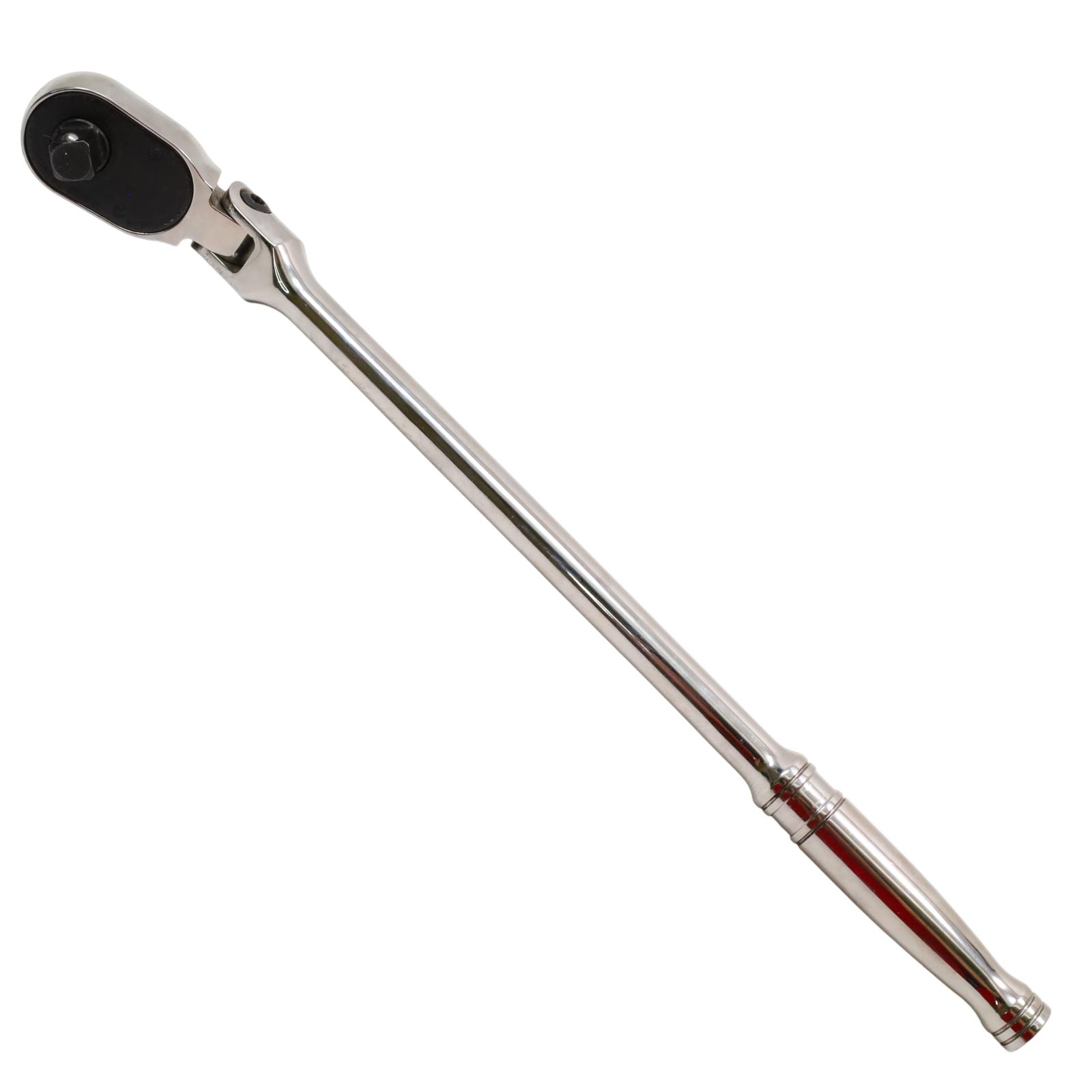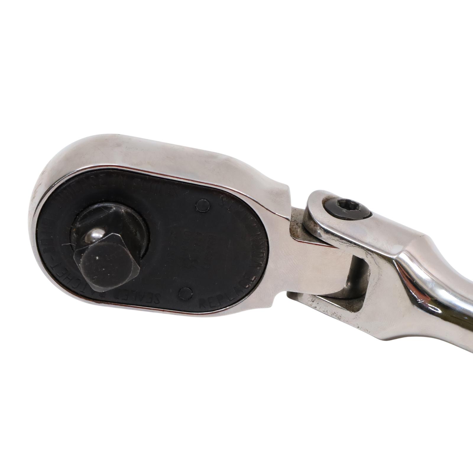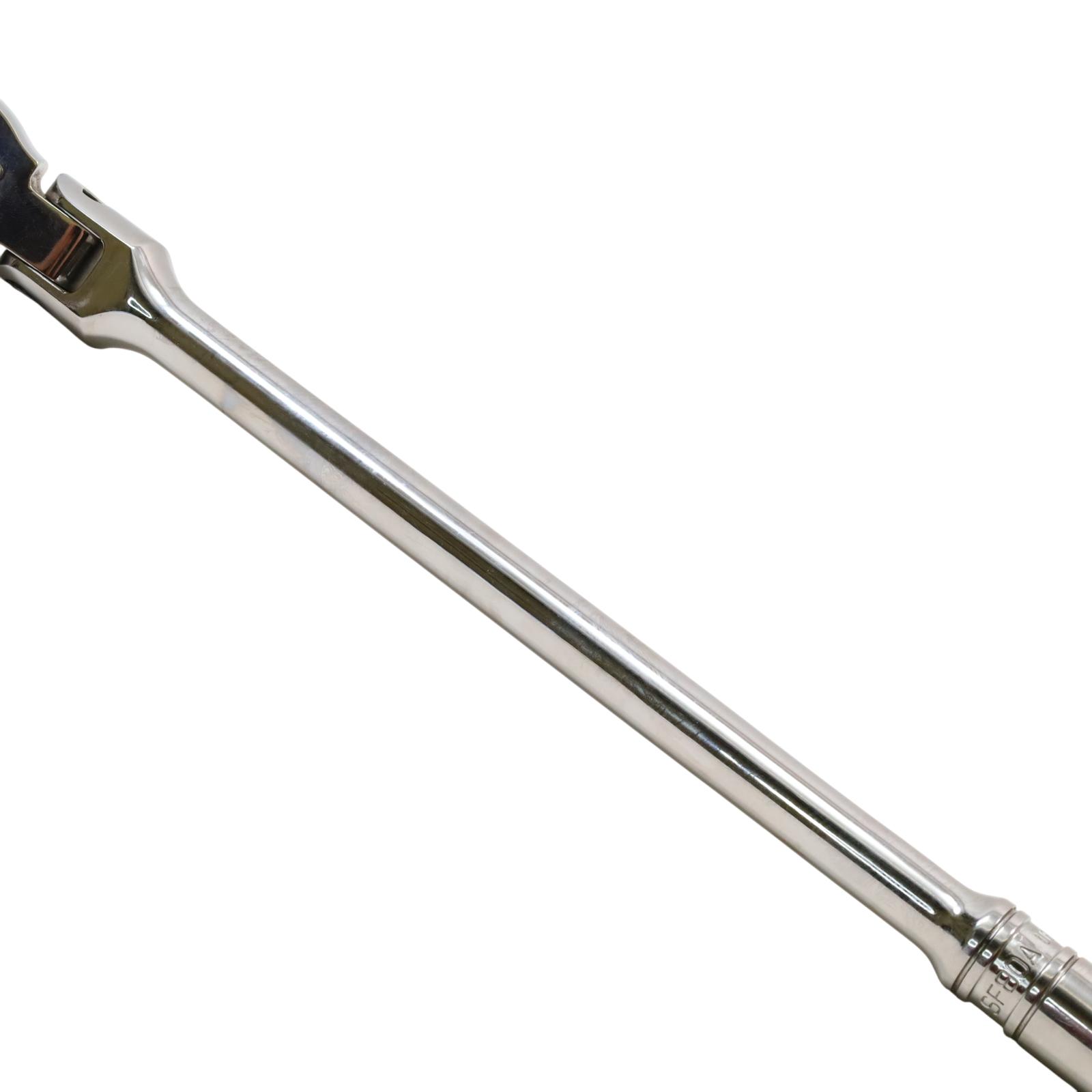 A 1/2" drive flex-head ratchet featuring Dual 80 Technology with an 80-tooth gear and seven teeth in contact for enhanced strength and durability. Its flex-head design allows improved access in tight spaces, while the sealed head retains lubrication and helps keep out contaminants. The ratchet includes a contoured standard-length handle for better grip and control, a chrome finish for easier cleaning, and a durable reverse lever designed to extend the tool's operational life.