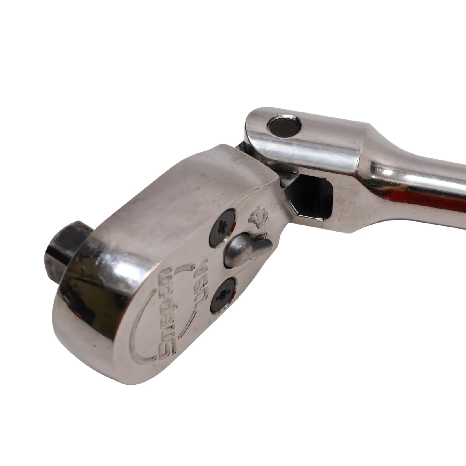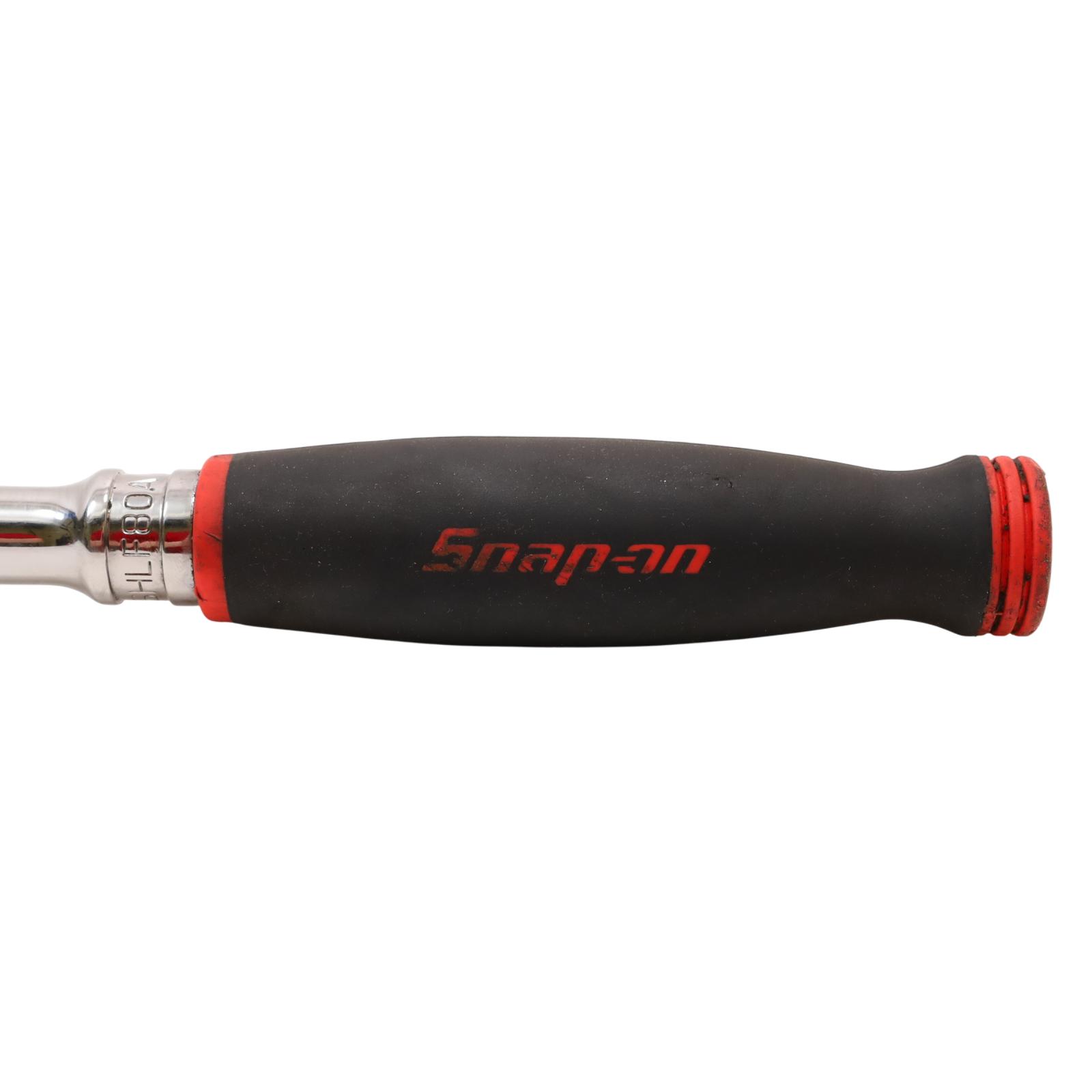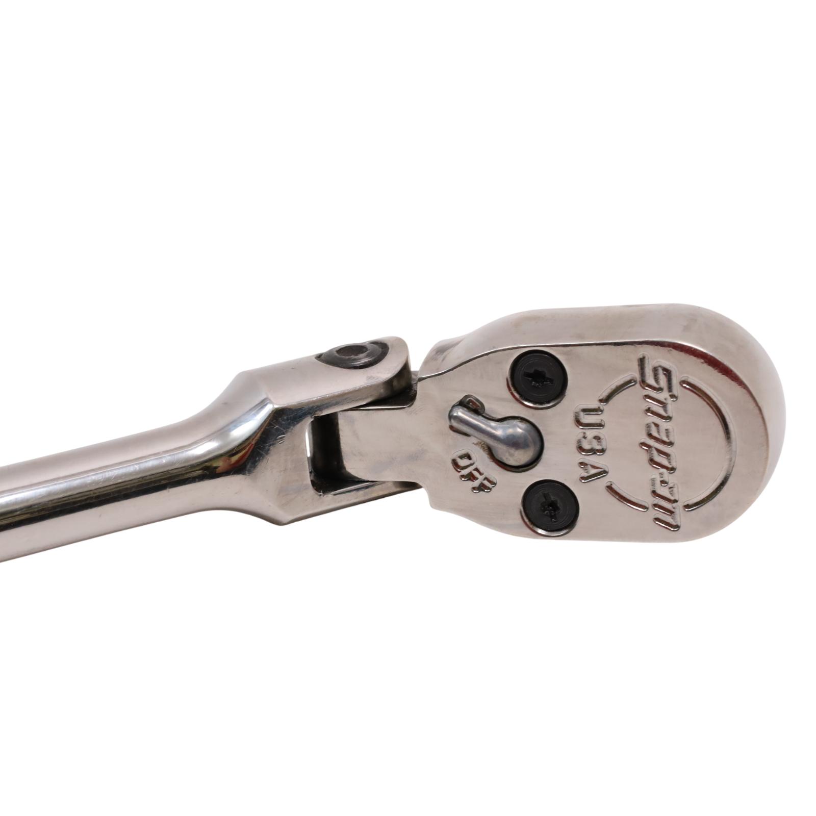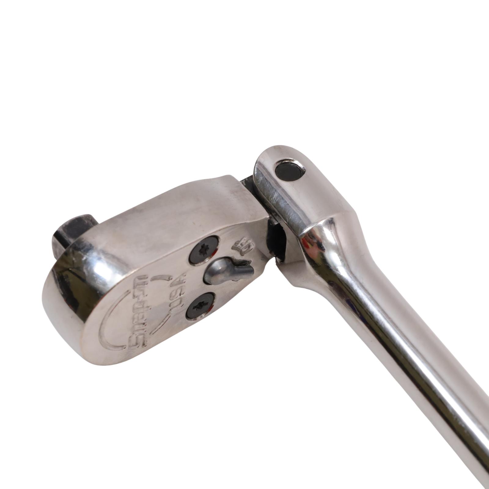 A 1/2" drive long handle flex-head ratchet designed with Dual 80 technology, featuring an 80-tooth gear with seven teeth engaged at once for strength and durability. It has a flex-head design that allows a wide range of working angles, while the sealed head helps retain lubrication and block out debris. The soft grip handle offers comfort and resistance to common shop chemicals, and the rugged reverse lever adds to its durability. Finished in chrome for easy cleaning, this ratchet measures 25-5/8 inches in overall length.