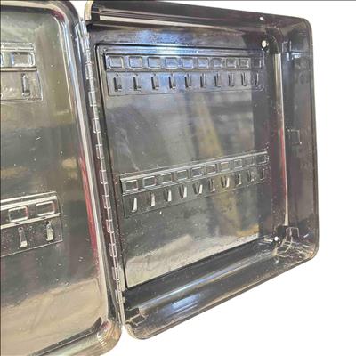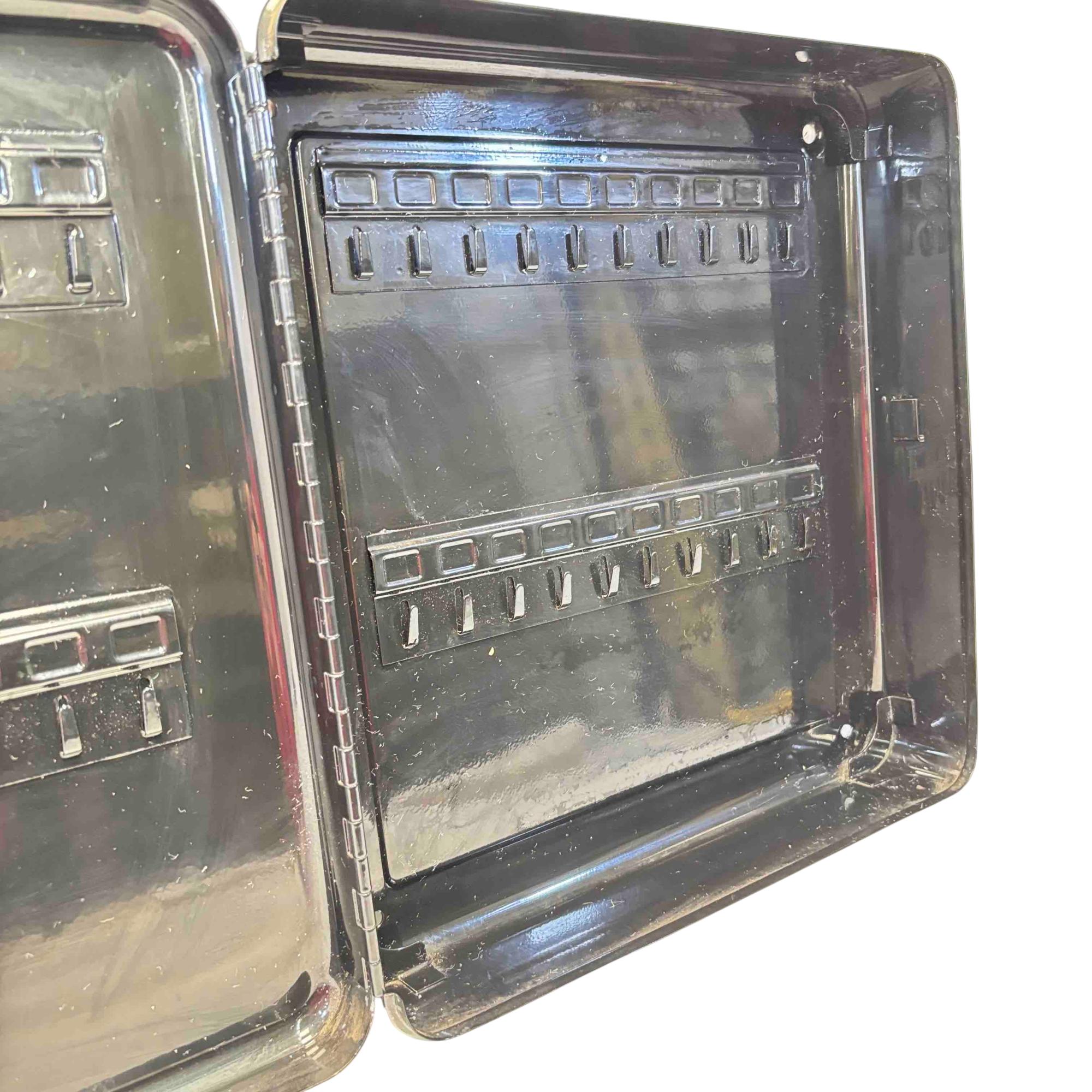 Snap-on Tools SSX16P121 Collector Key Cabinet Black Metal Box is a durable black metal storage solution designed to hold up to 40 keys securely. Featuring a sturdy latch and ventilation holes, this compact cabinet combines functionality with Snap-on’s trusted industrial quality, making it ideal for organized key management in garages or workshops.