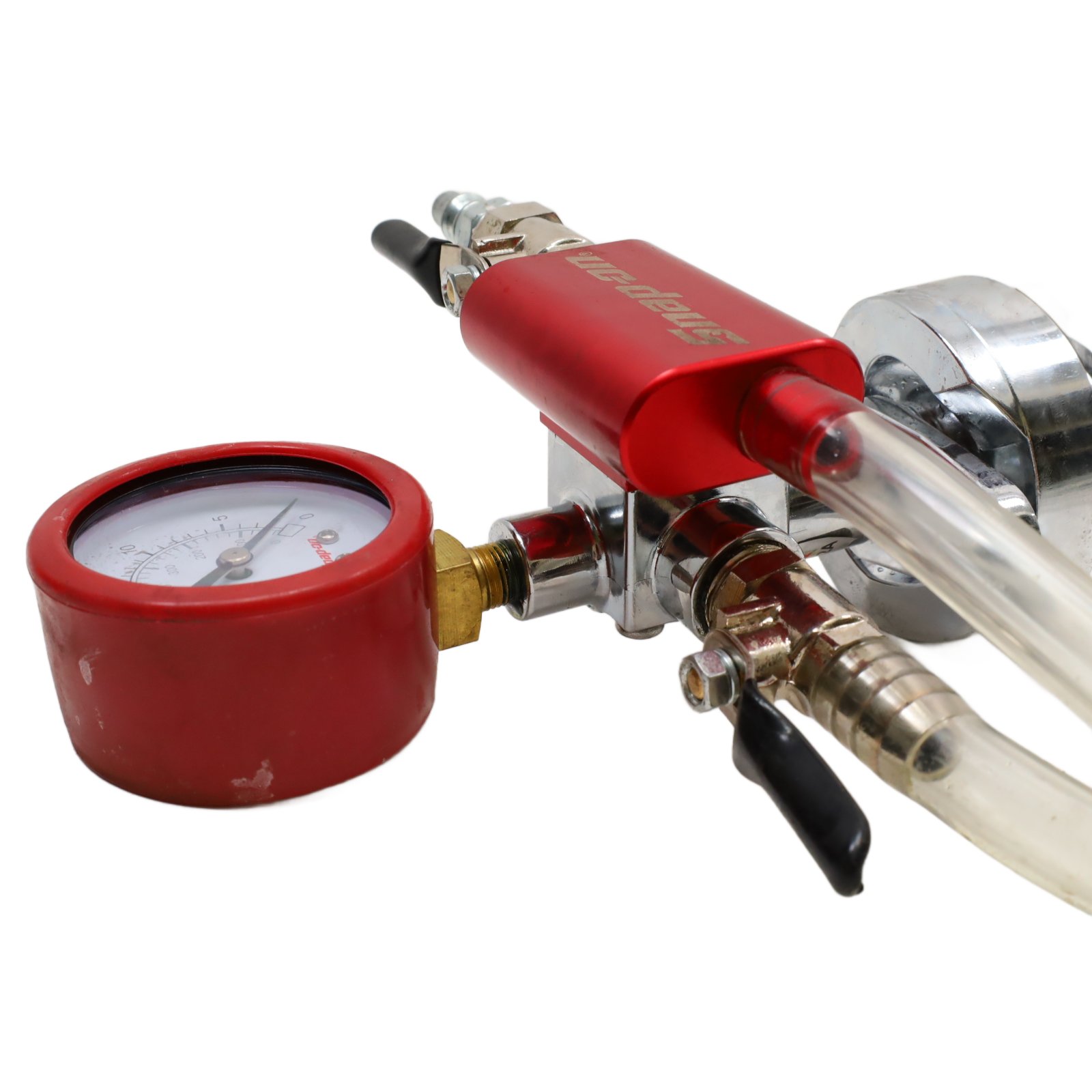 Designed for efficient cooling system refilling, offering enhanced evacuation speed and improved vacuum performance. Its redesigned Venturi achieves a maximum vacuum of 28.2 Hg, reducing air within the system by 14% compared to previous models. With an increased evacuation speed of 2.6 CFM, it outperforms the standard 2.0 CFM units by 30%. The refill rate of 22.7 seconds per gallon is 23% faster, allowing for quicker system refilling. This tool effectively eliminates air locks that can lead to overheating and is suitable for both specialized shops and municipal garages. It features a shock-resistant gauge with a protective rubber boot for accurate readings.