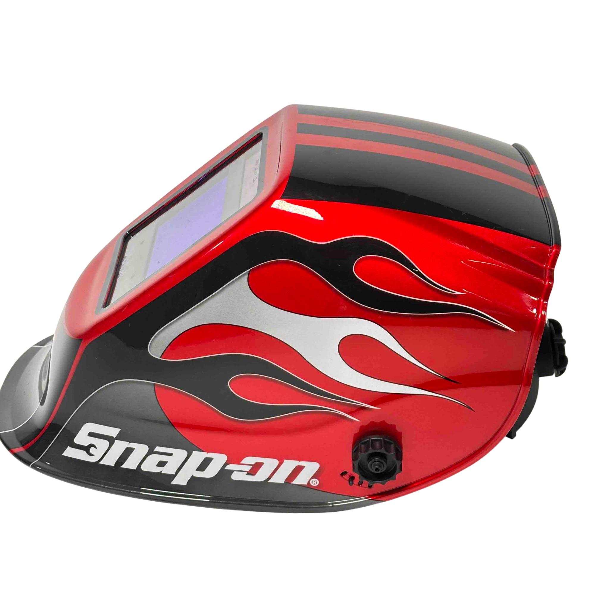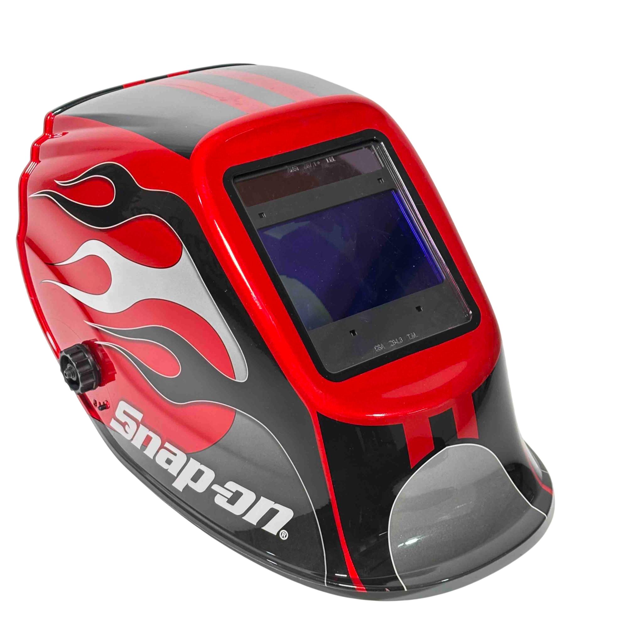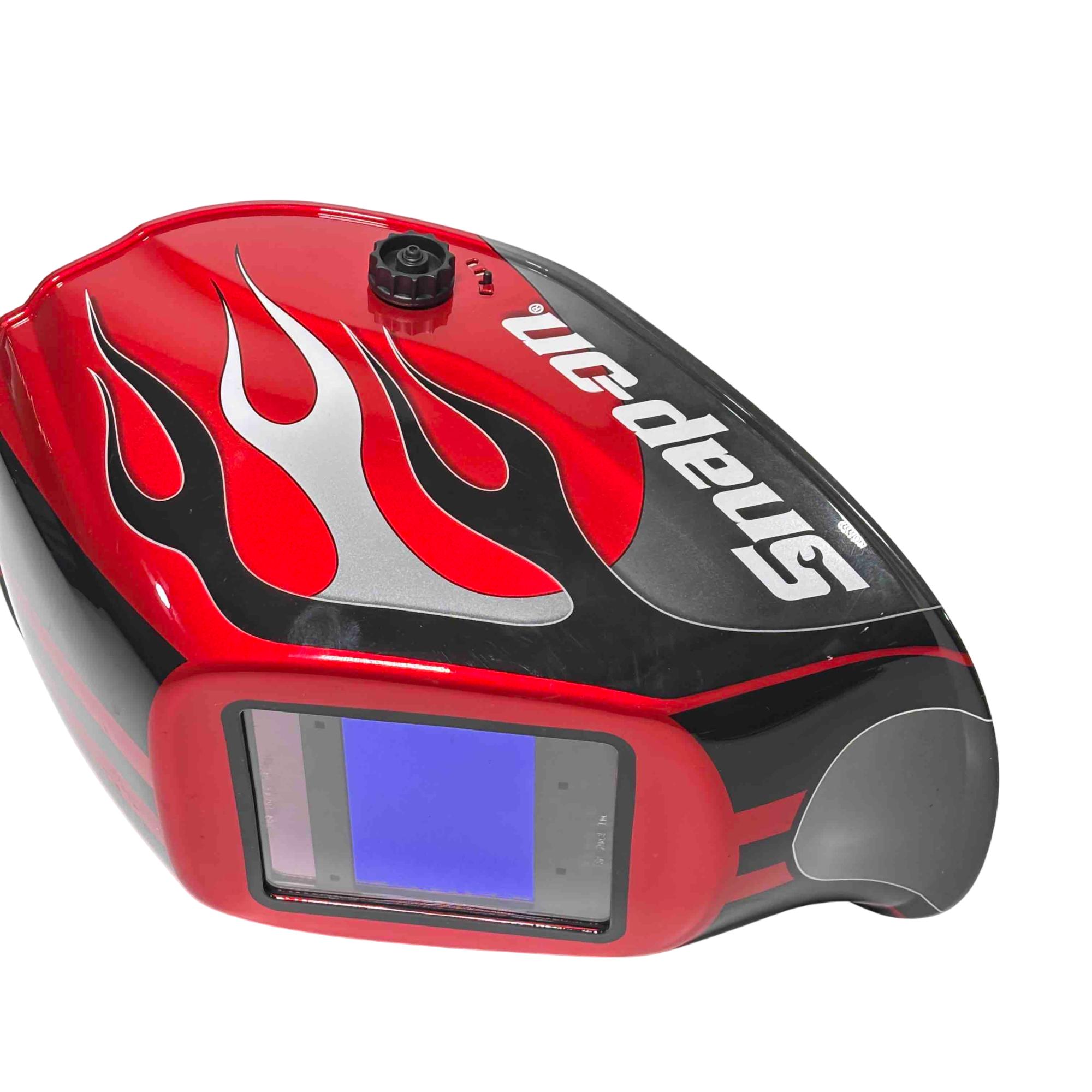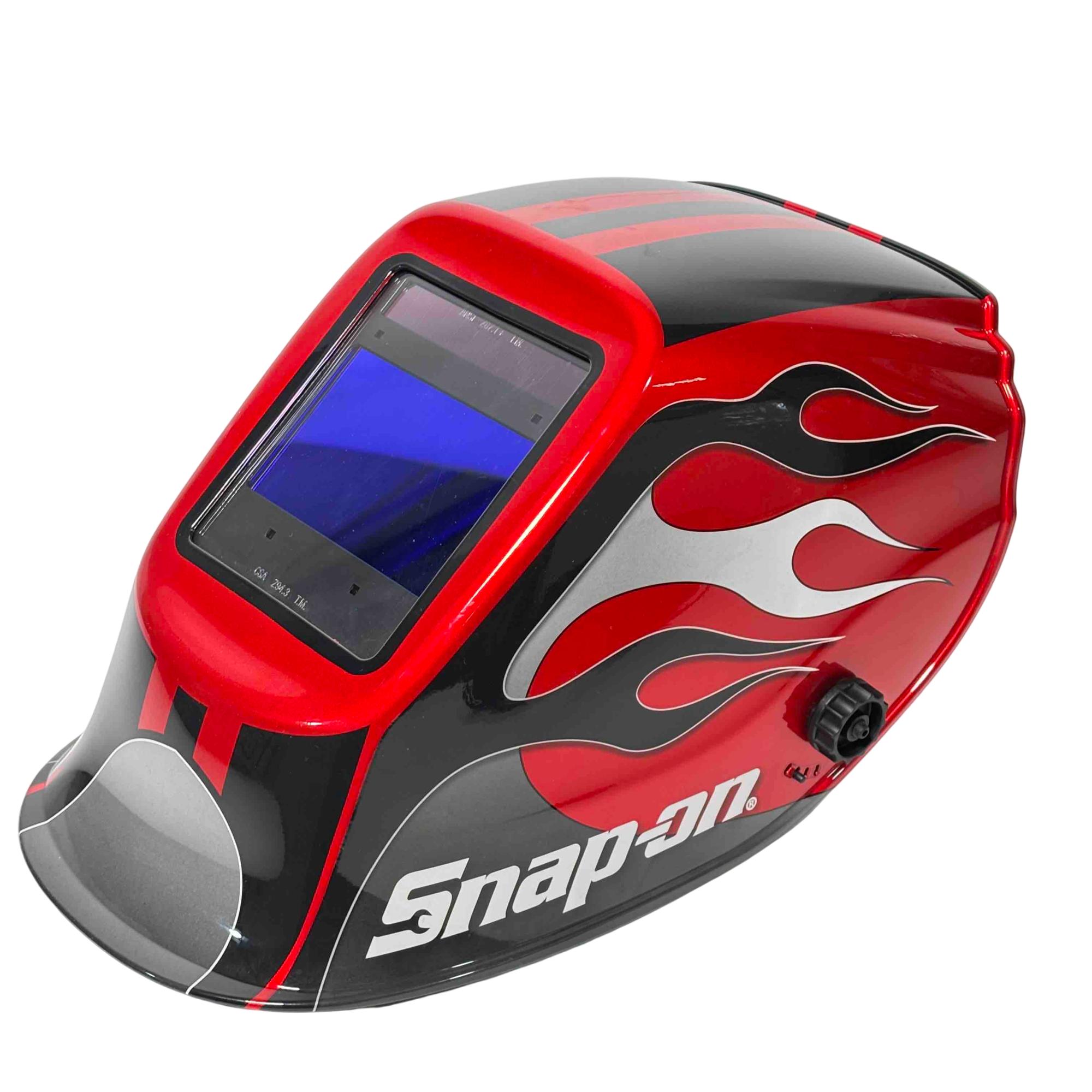 Protect your eyes and face with the Snap-on Tools YA4601 Auto-Darkening Welding Helmet. Featuring a striking red and black flame design, this helmet ensures optimal safety and style for welding enthusiasts. With its reliable auto-darkening feature, you can focus on your welding tasks without compromising on protection.