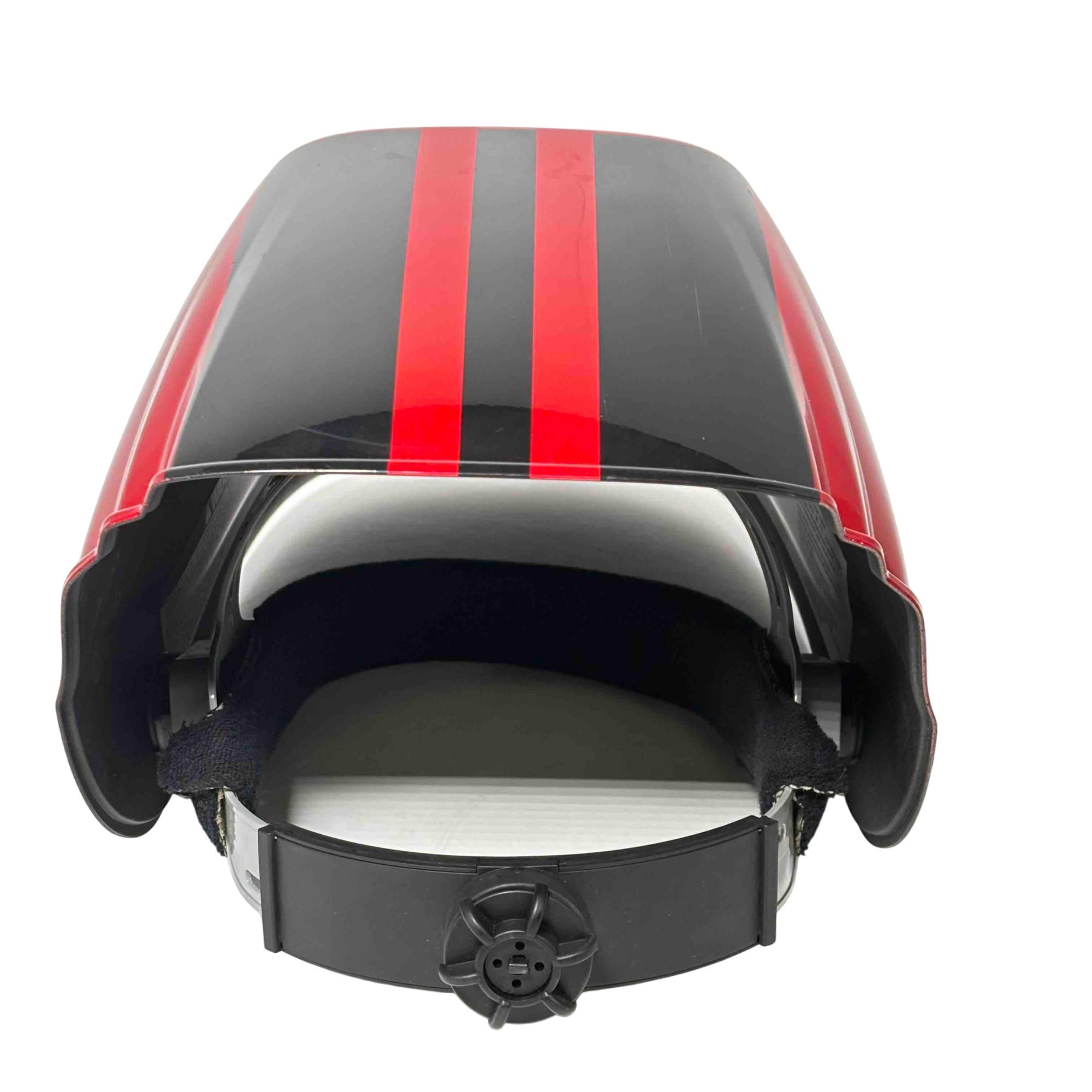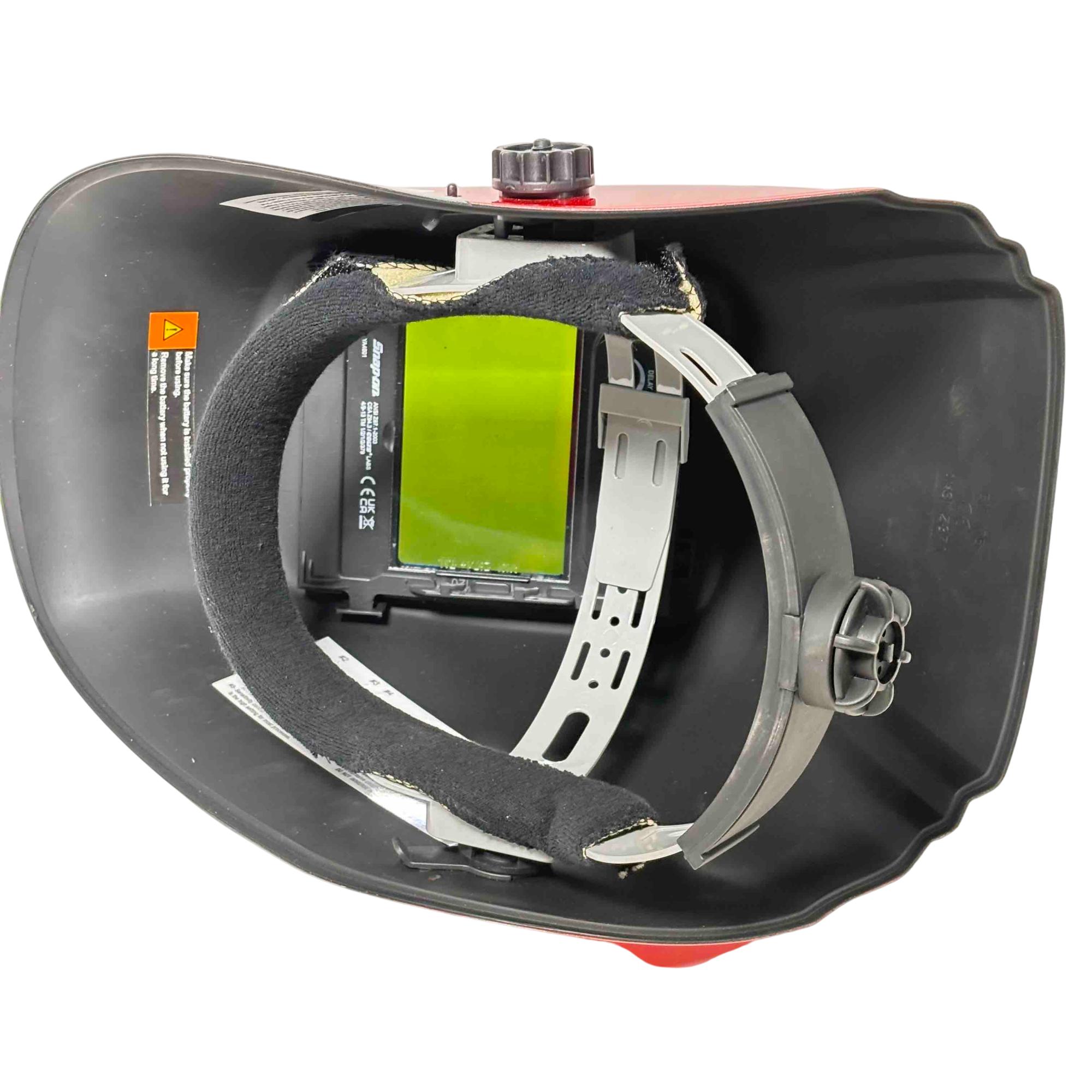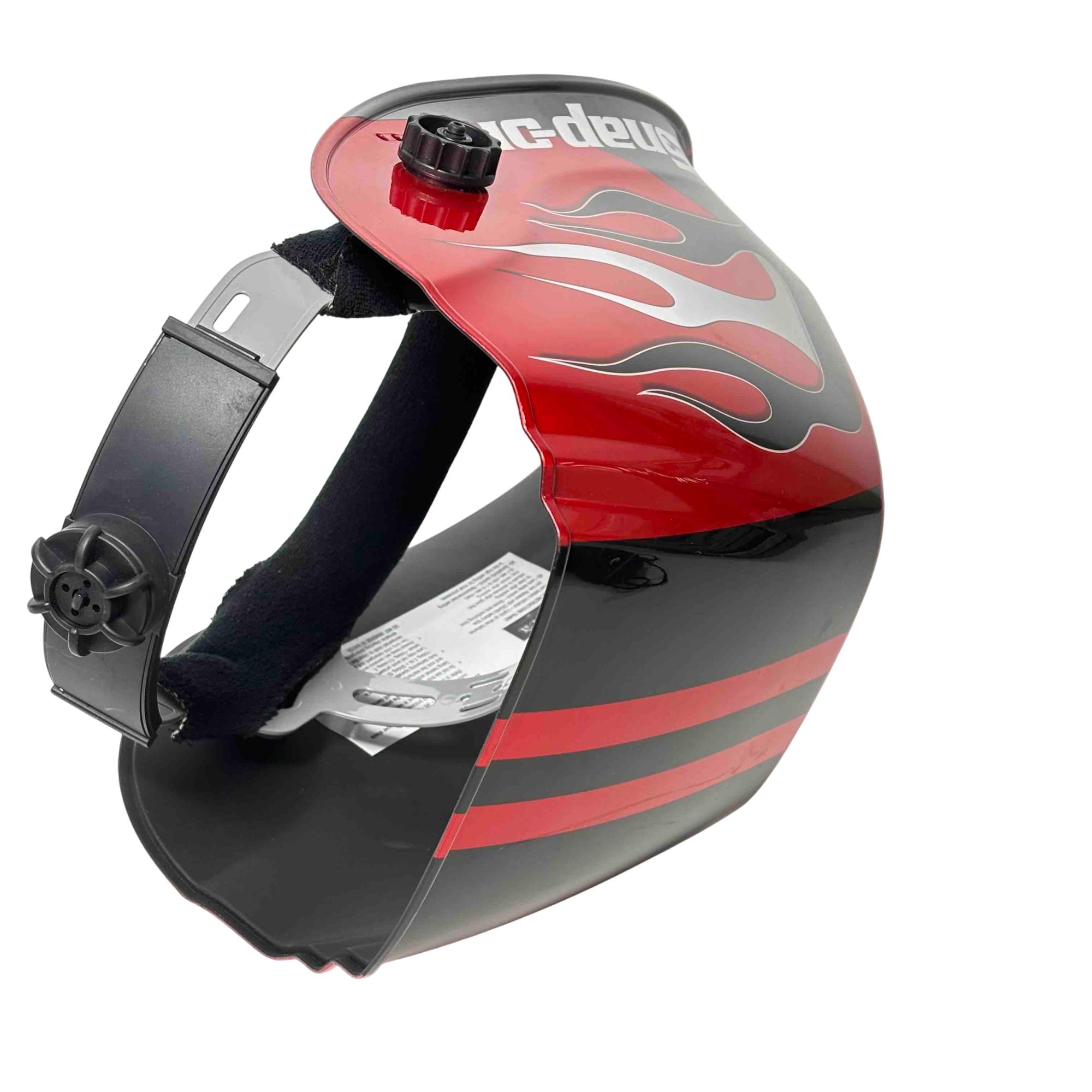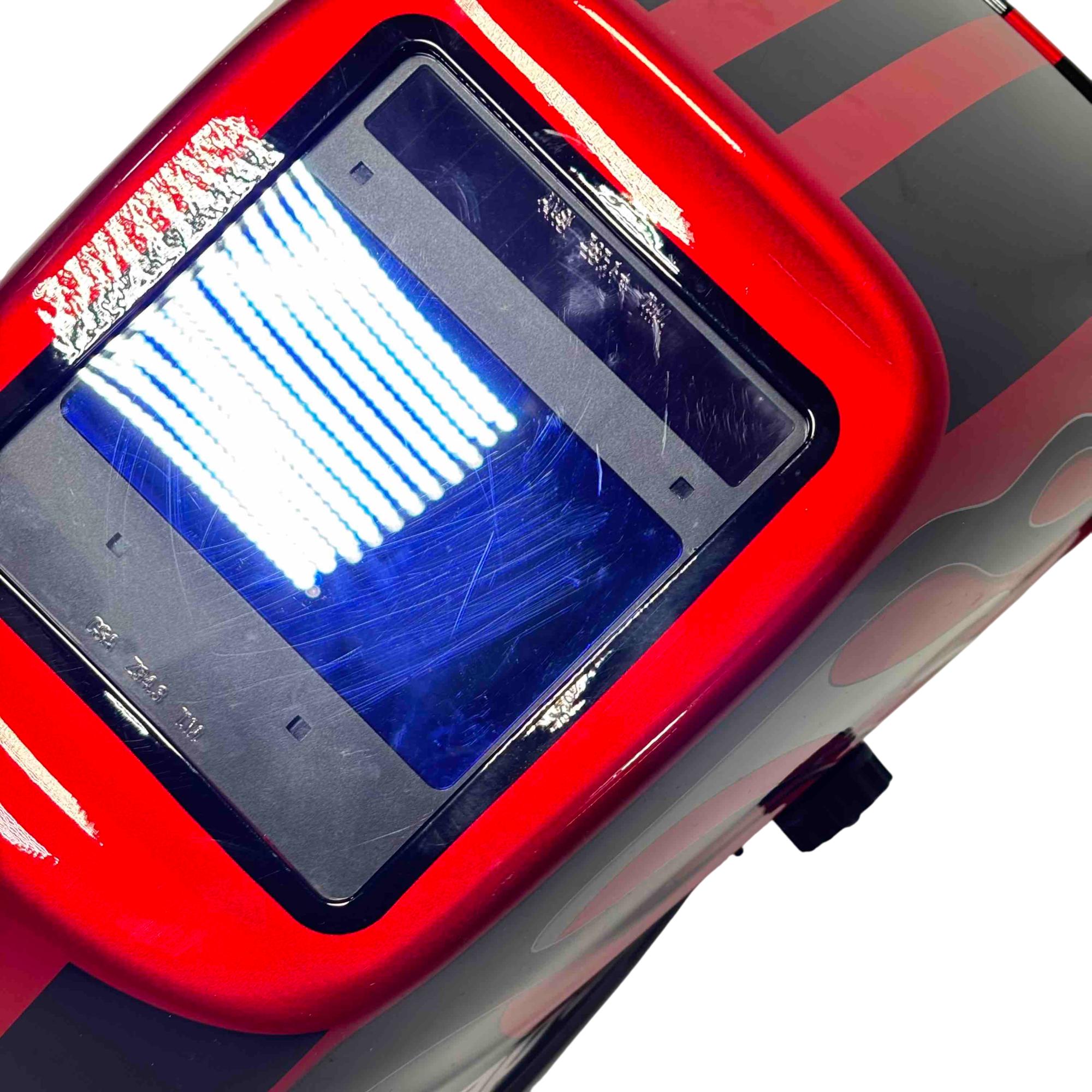 Protect your eyes and face with the Snap-on Tools YA4601 Auto-Darkening Welding Helmet. Featuring a striking red and black flame design, this helmet ensures optimal safety and style for welding enthusiasts. With its reliable auto-darkening feature, you can focus on your welding tasks without compromising on protection.