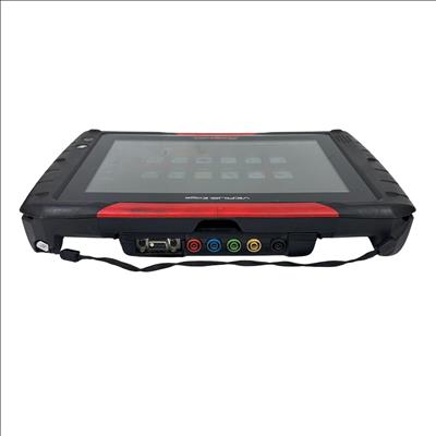 The Snap-on VERUS Edge EEMS330 Automotive Diagnostic Tablet is a professional-grade diagnostic tool designed for advanced vehicle troubleshooting. Featuring a high-resolution touchscreen housed in a durable black and red frame, this tablet offers comprehensive diagnostic capabilities and supports extensive connectivity with multiple cables and connectors for diverse automotive systems.