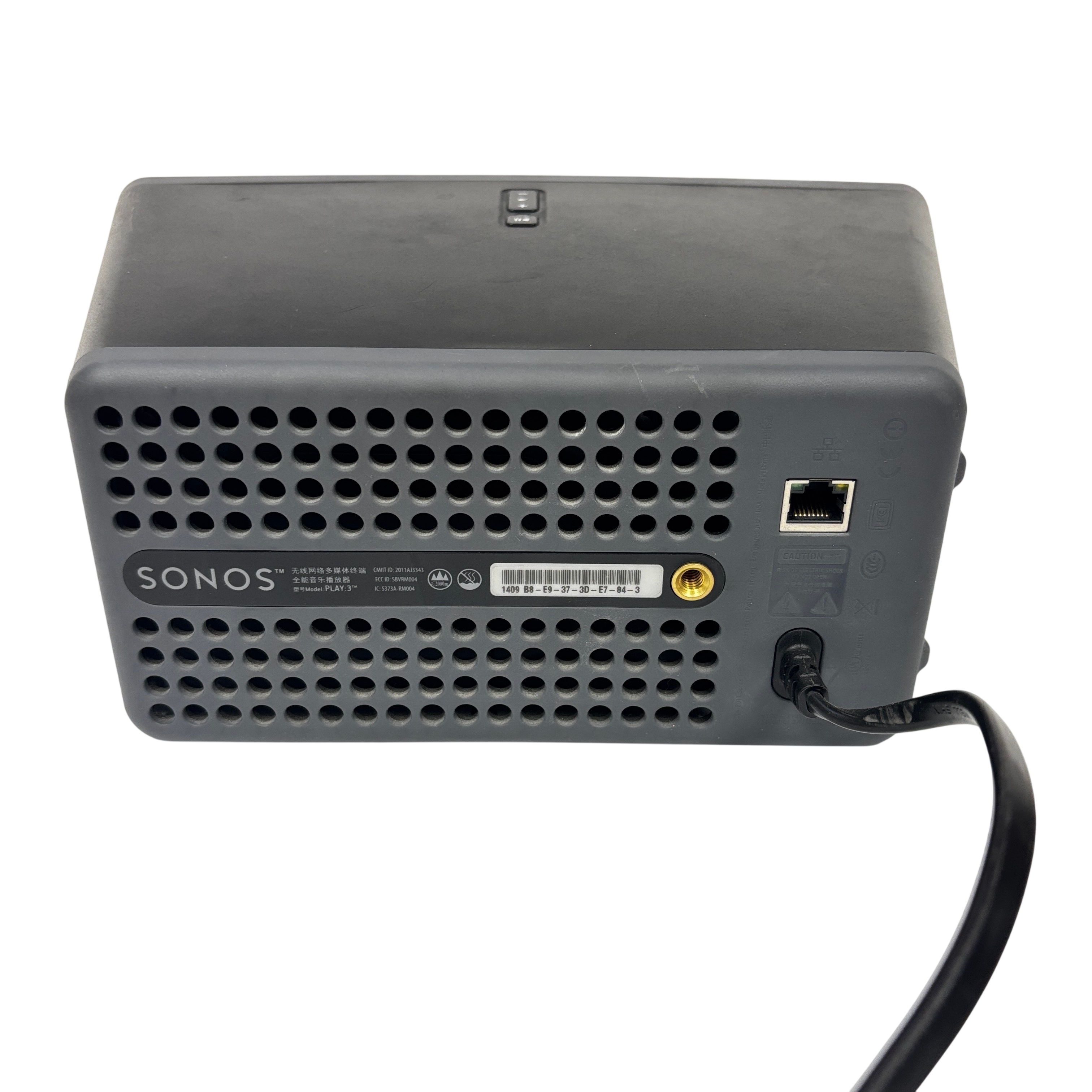 The Sonos Play:3 wired speaker delivers rich, immersive sound in a compact design ideal for any room. Featuring Wi-Fi and Ethernet connectivity, this corded electric speaker offers easy integration into multi-room audio setups. With built-in play/pause and volume controls, the Play:3 provides convenient operation and powerful sound performance. It is a versatile addition to your home audio system.