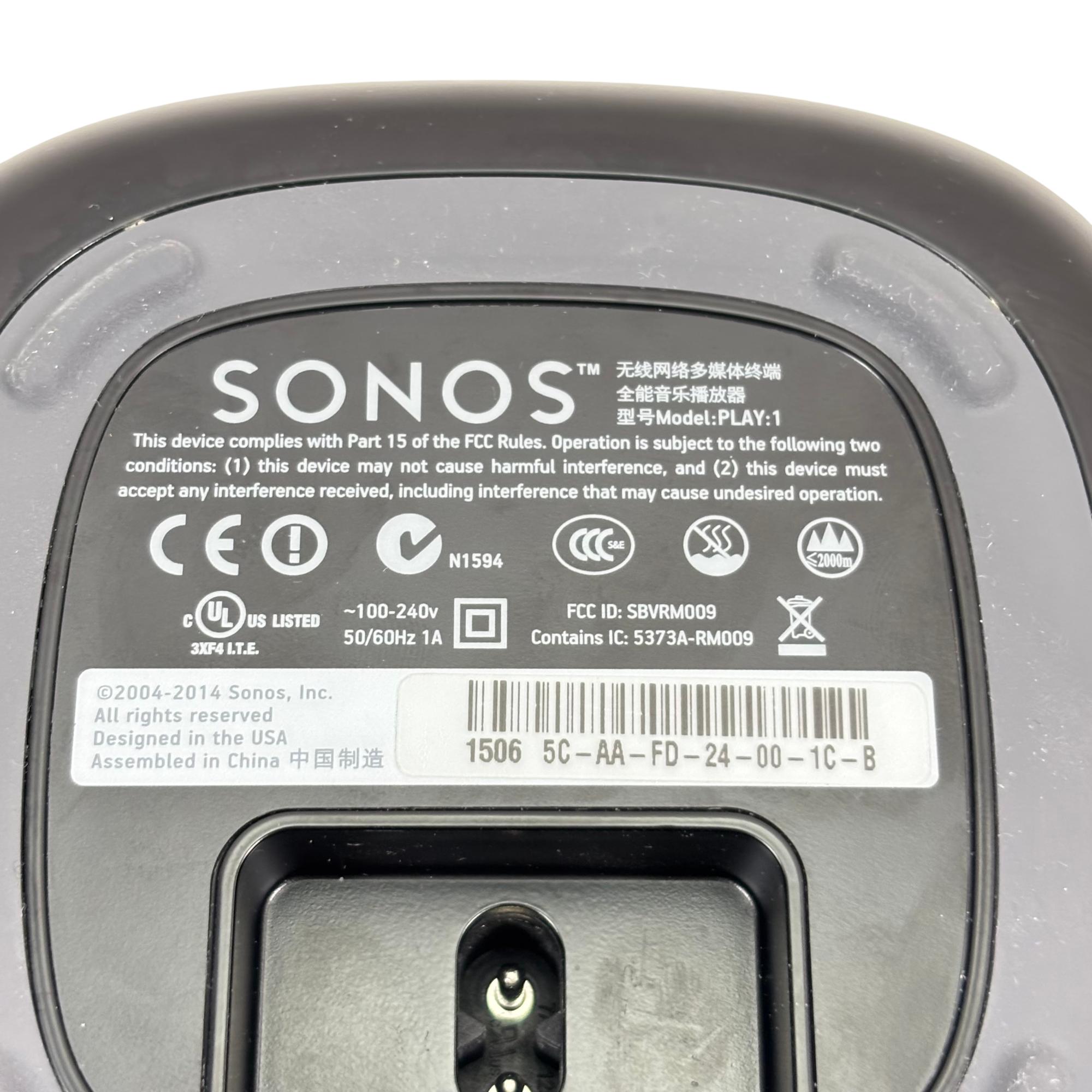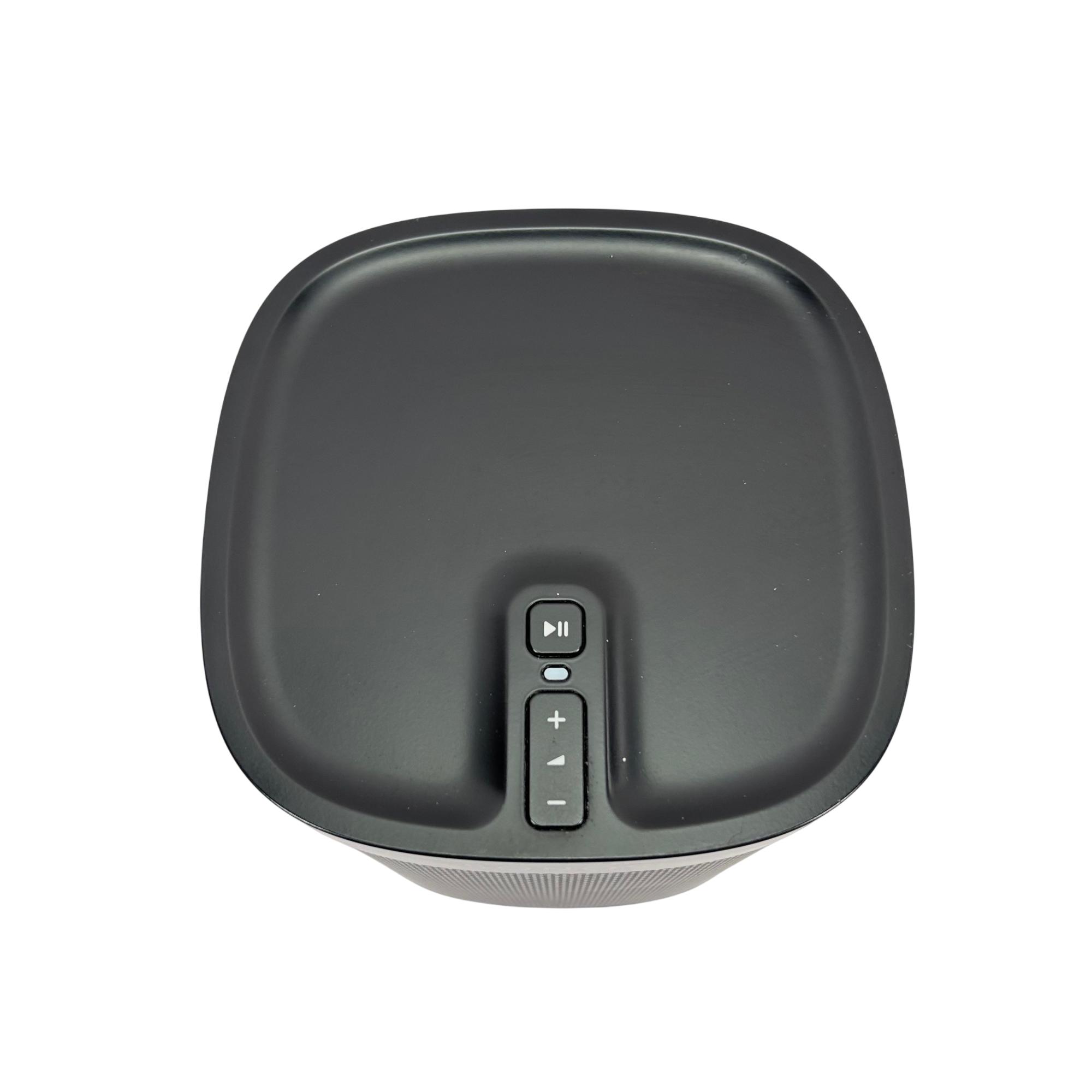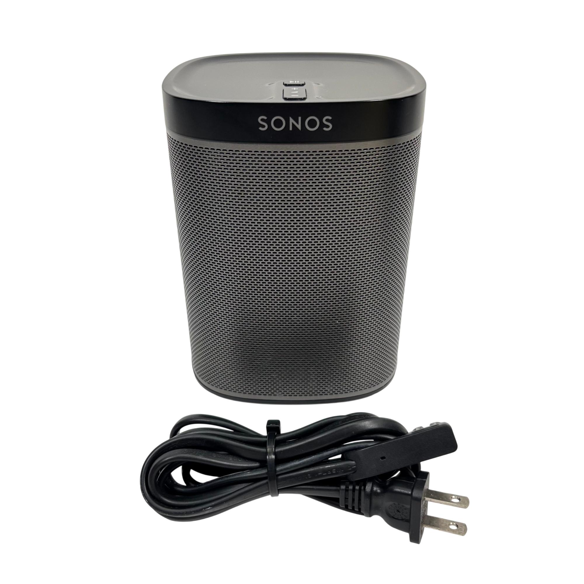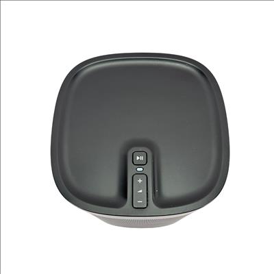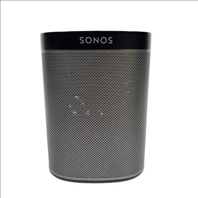 Sonos Play:1 Compact Wireless Smart Speaker offers rich, room-filling sound in a sleek, compact design featuring a black and silver mesh grille. Engineered for seamless WiFi connectivity, this smart speaker delivers high-fidelity audio performance perfect for any modern home or office environment.