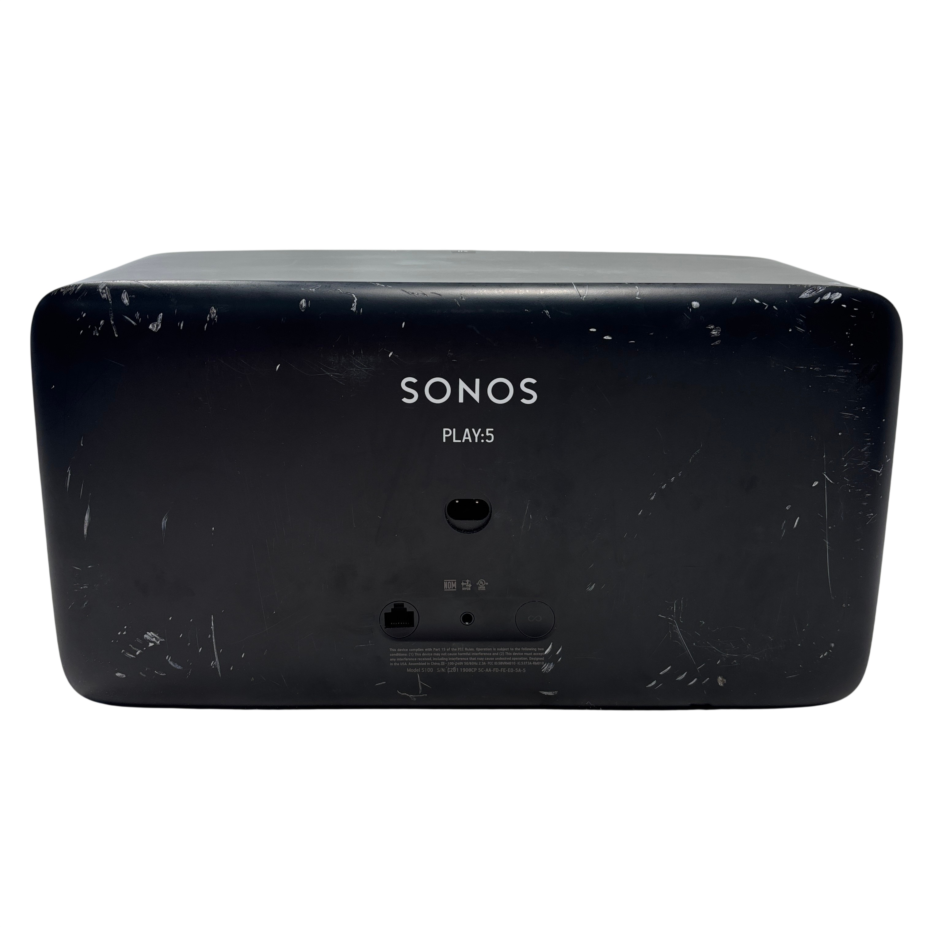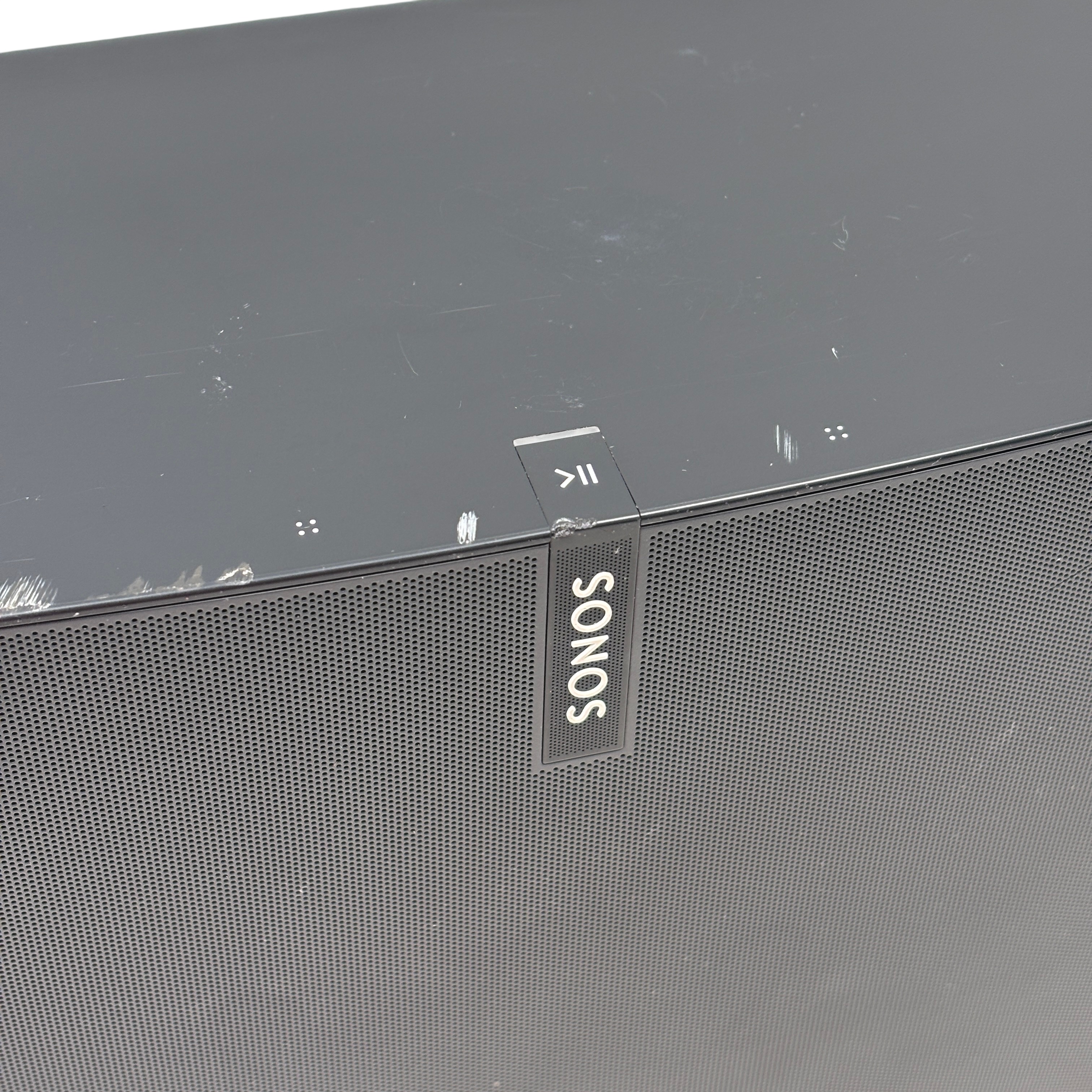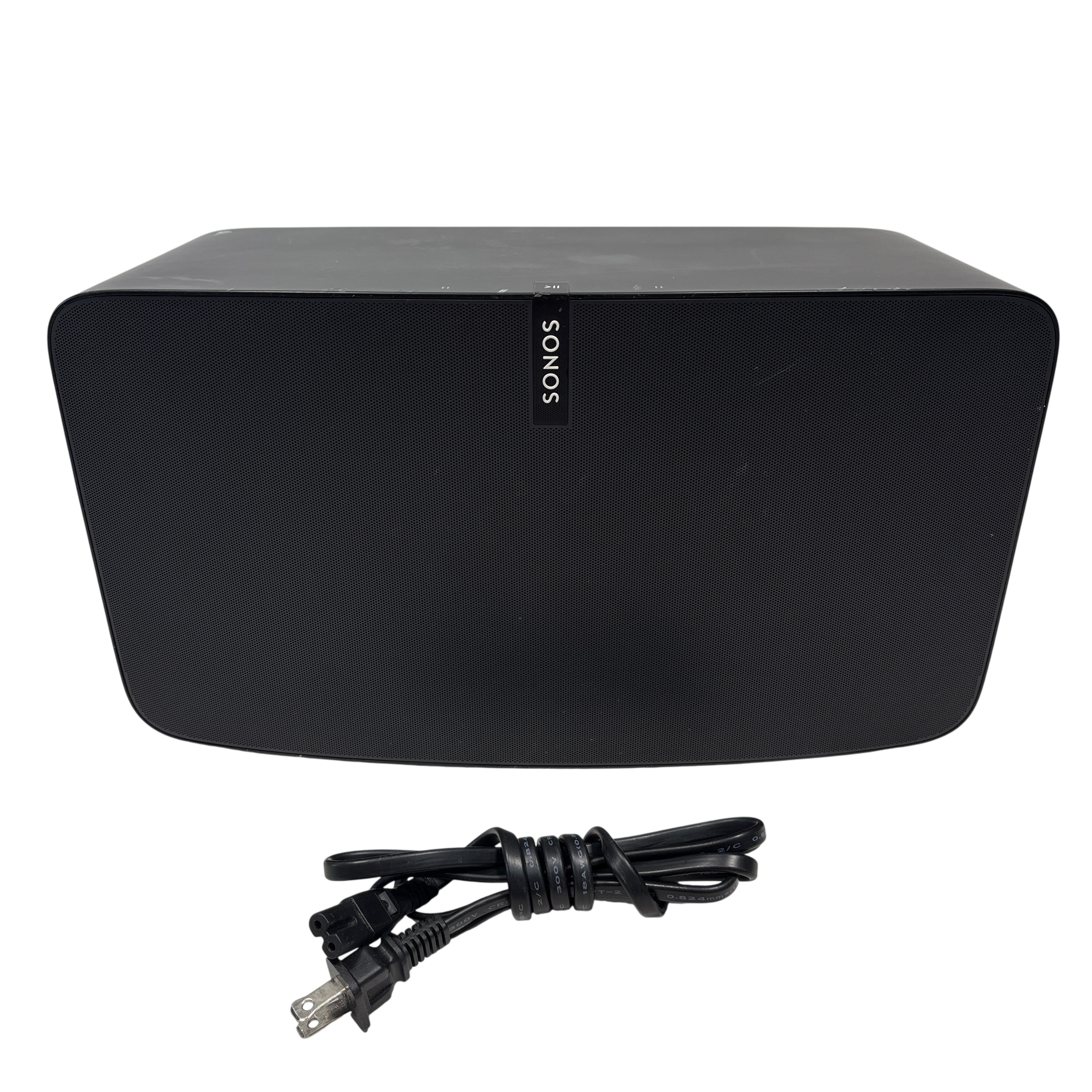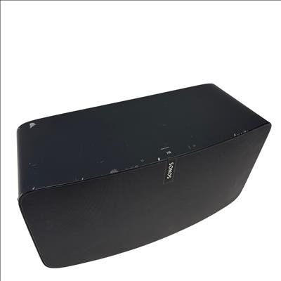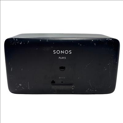 The Sonos Play:5 Wireless Smart Speaker S100 delivers rich, room-filling sound with deep bass and crystal-clear highs. This black speaker features Wi-Fi and Ethernet connectivity for seamless integration into your home audio system. Powered by corded AC power, the Play:5 is designed for high-fidelity music streaming and multi-room audio setups. Included is the speaker and its power cord, making it easy to add premium sound to any room.