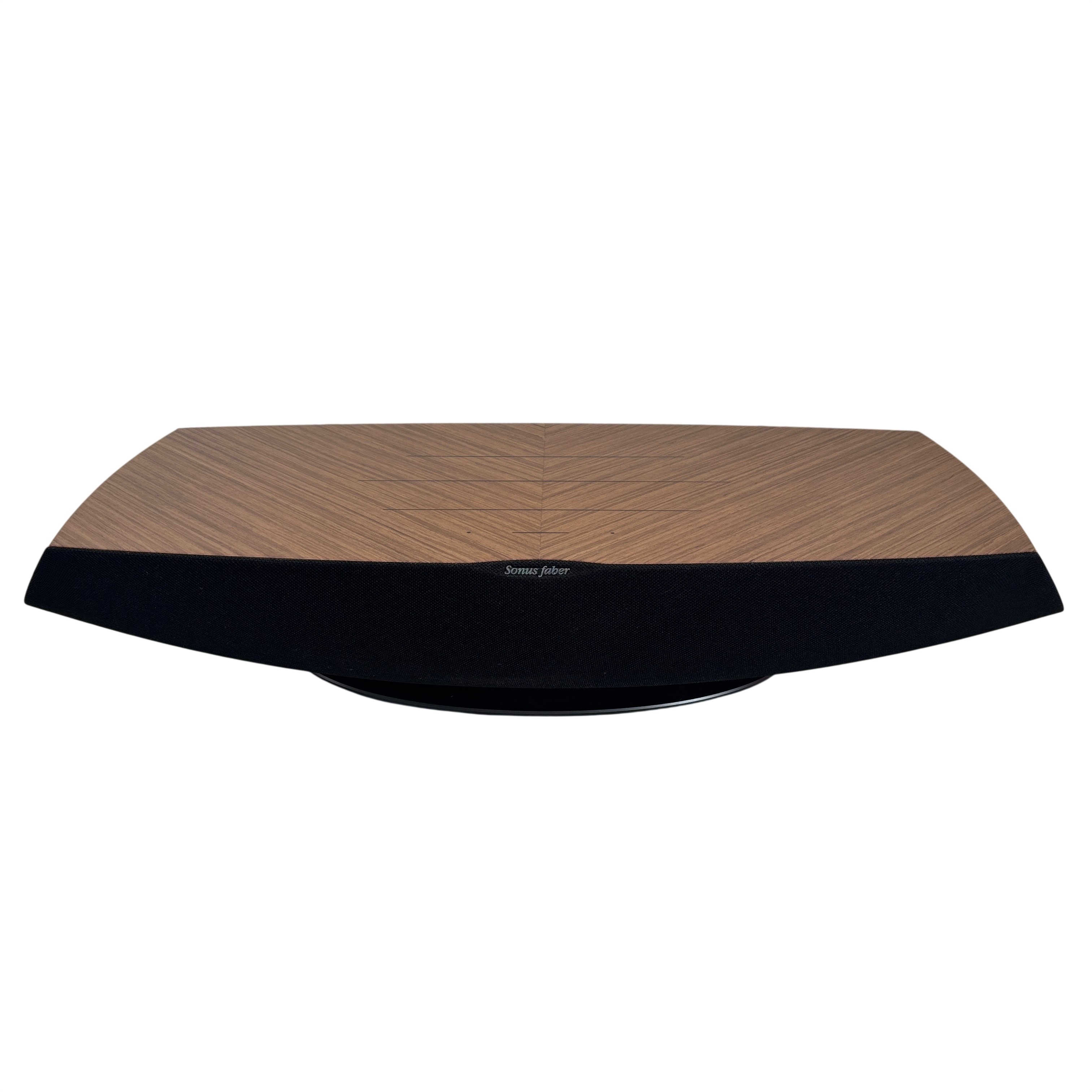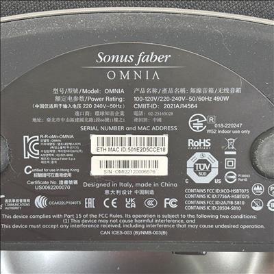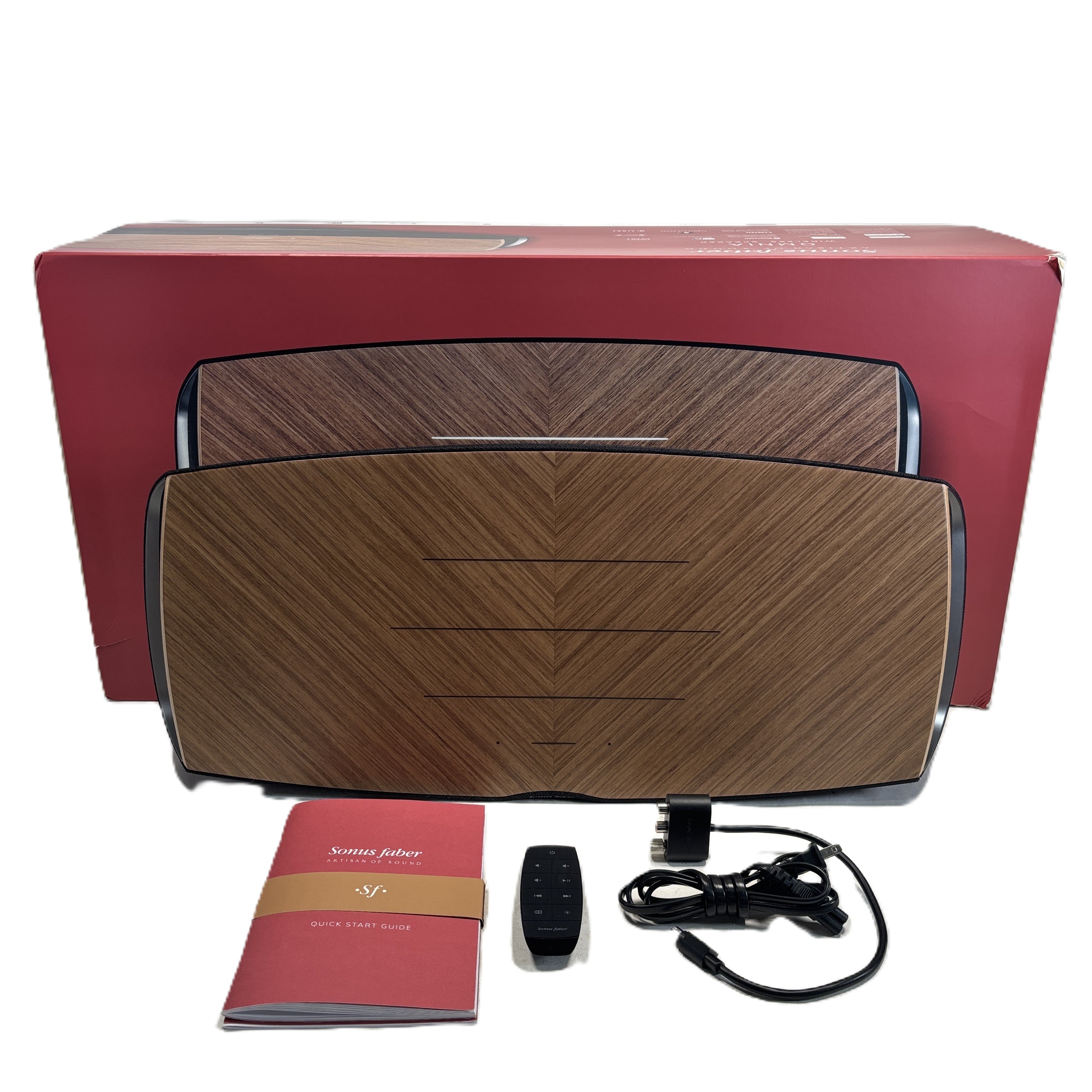 The Sonus Faber Omnia Wireless Speaker combines elegant Italian design with powerful audio performance. Featuring a wood veneer finish and a black fabric grille, this speaker delivers rich sound with a power rating of 490W, suitable for indoor use. The package includes a remote control, power cable, photo adapter, and a quick start guide, making it easy to set up and operate. Ideal for audiophiles seeking a blend of style and high-quality sound in a compact form factor.