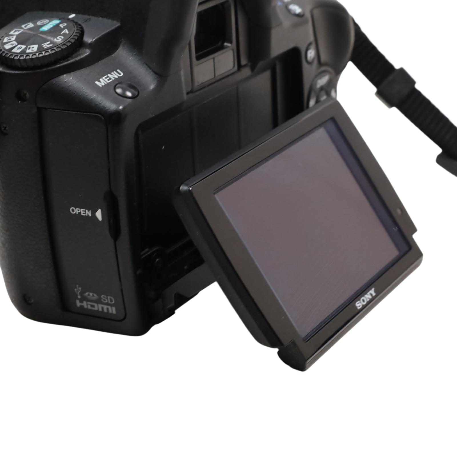 Capture your world with the Sony DSLR-A390, a versatile and powerful camera thats perfect for both budding photographers and seasoned pros. Equipped with a DT 18-55mm f/3.5-5.6 SAM lens, this camera offers seamless autofocus and stunning image quality in every shot. Its lightweight design with a durable strap ensures you can take it anywhere, making it the ideal companion for all your photography adventures.