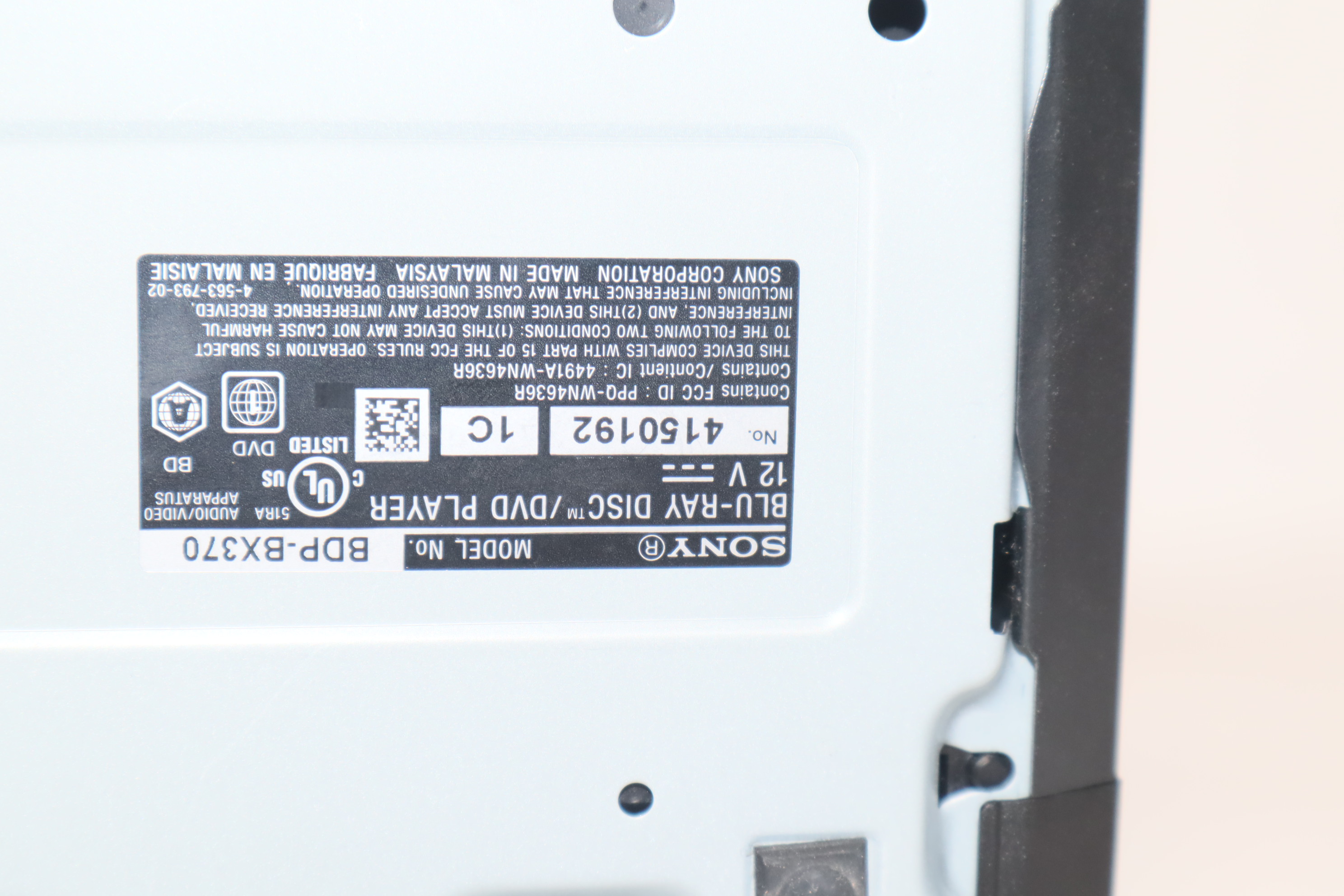 Sony BDP-BX370 Black Blu-ray Disc Player 0192 / Wi-Fi & No Remote