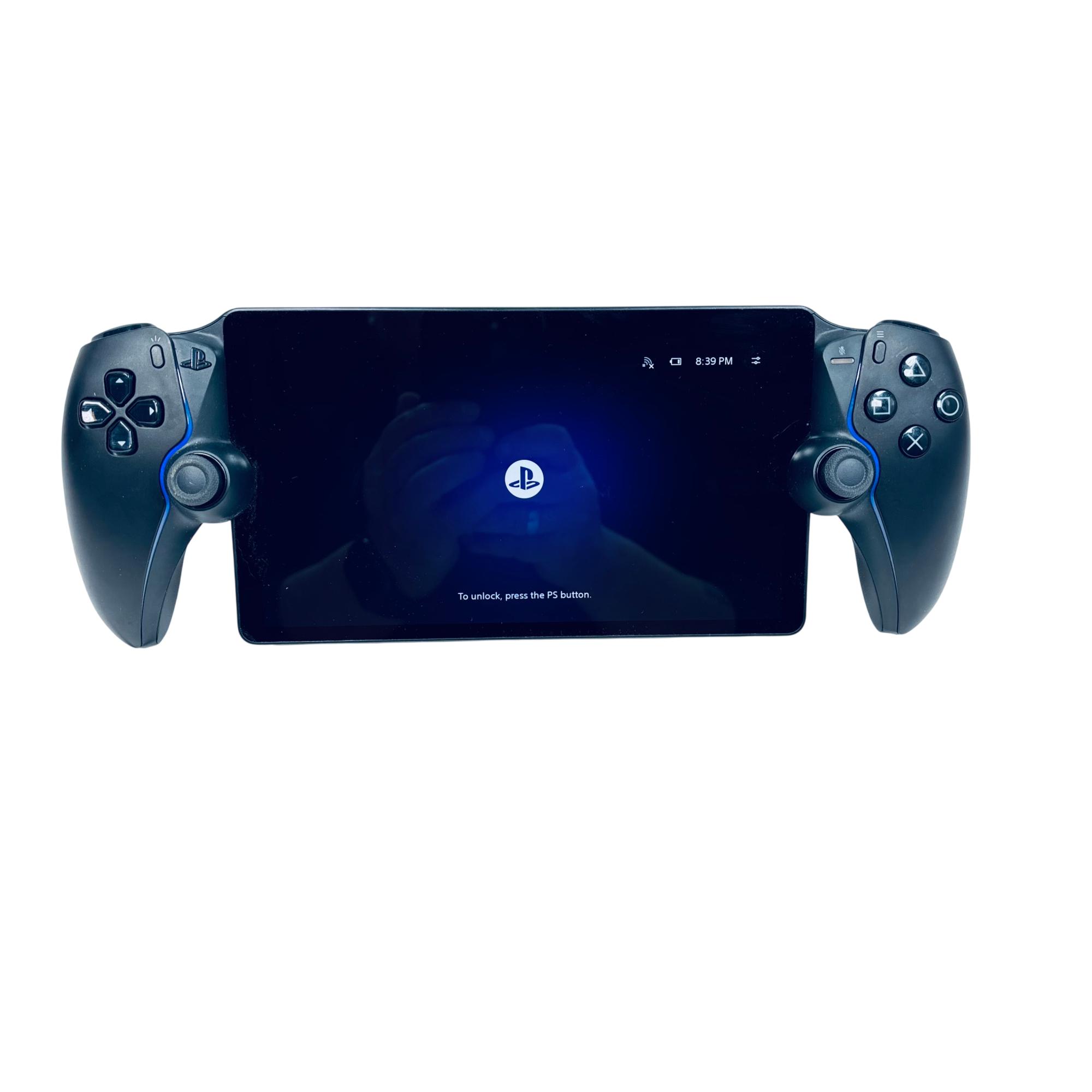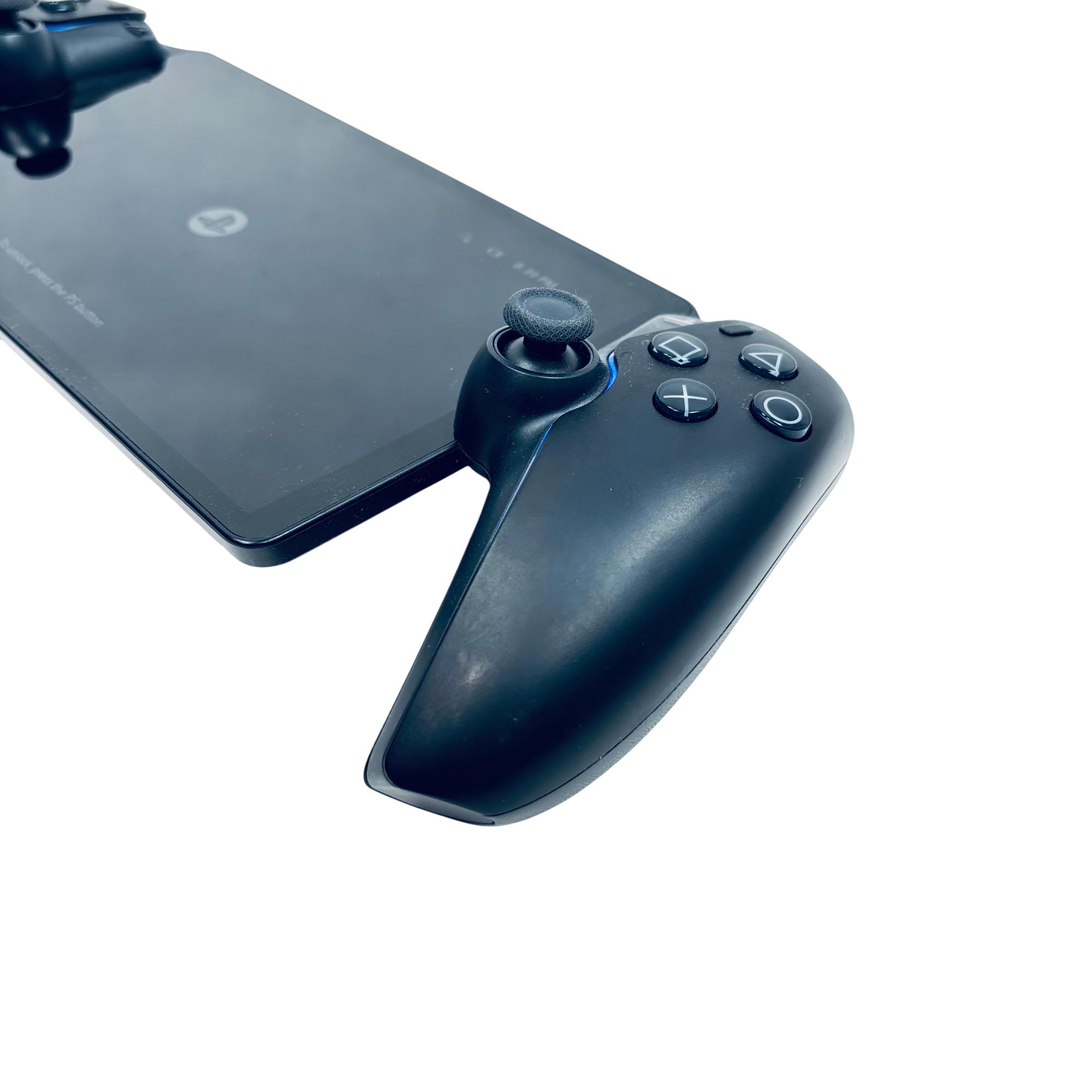 Sony PlayStation Portal Remote Player in Midnight Black offers a compact and portable way to access PlayStation 5 games remotely. This sleek black device features dual controllers with responsive joysticks and buttons designed for seamless gaming on the go, combining advanced wireless technology and ergonomic design for extended play sessions.