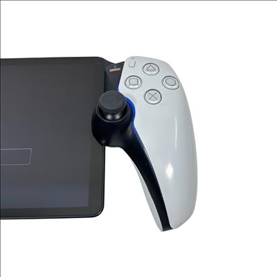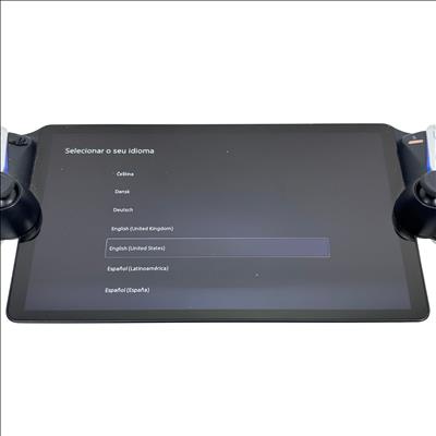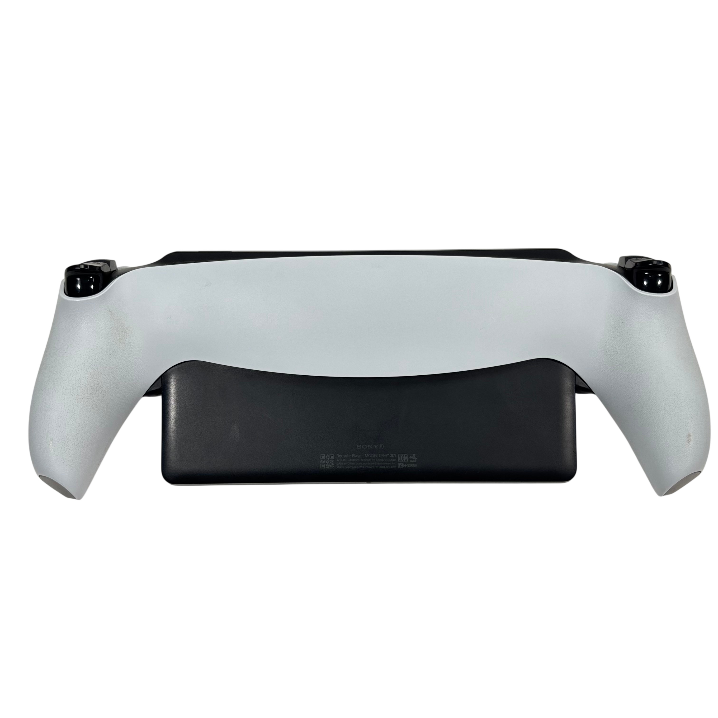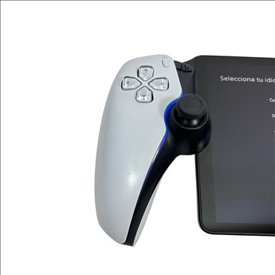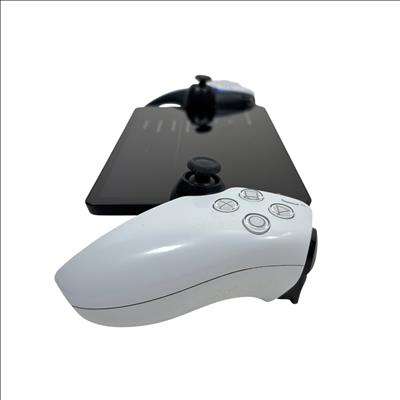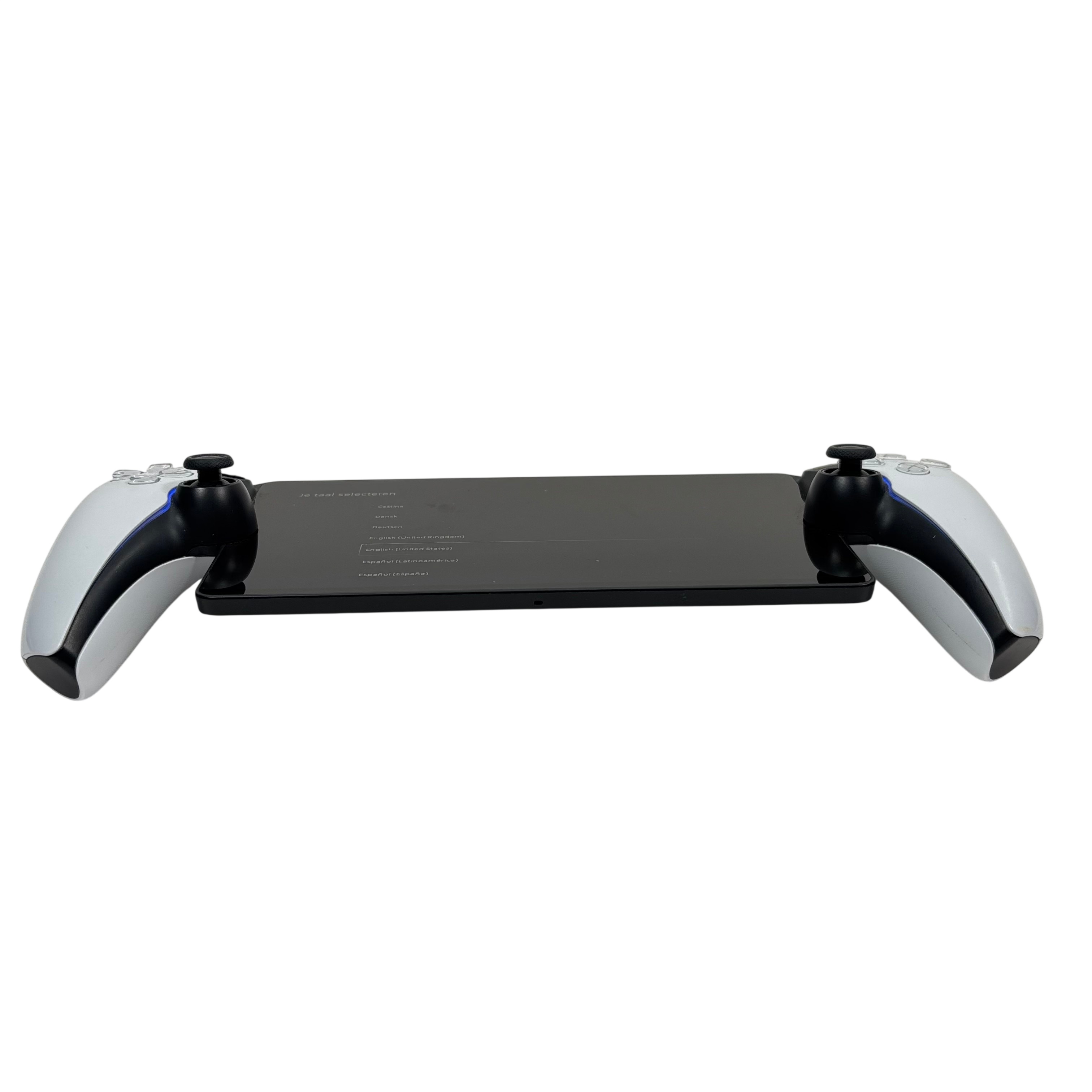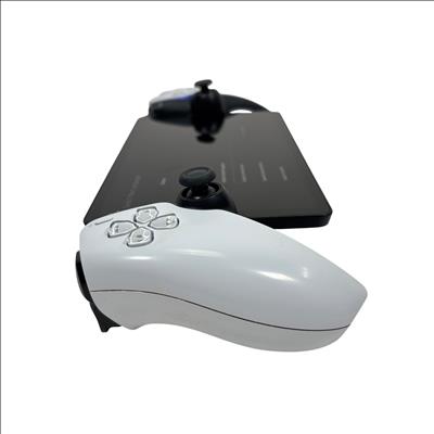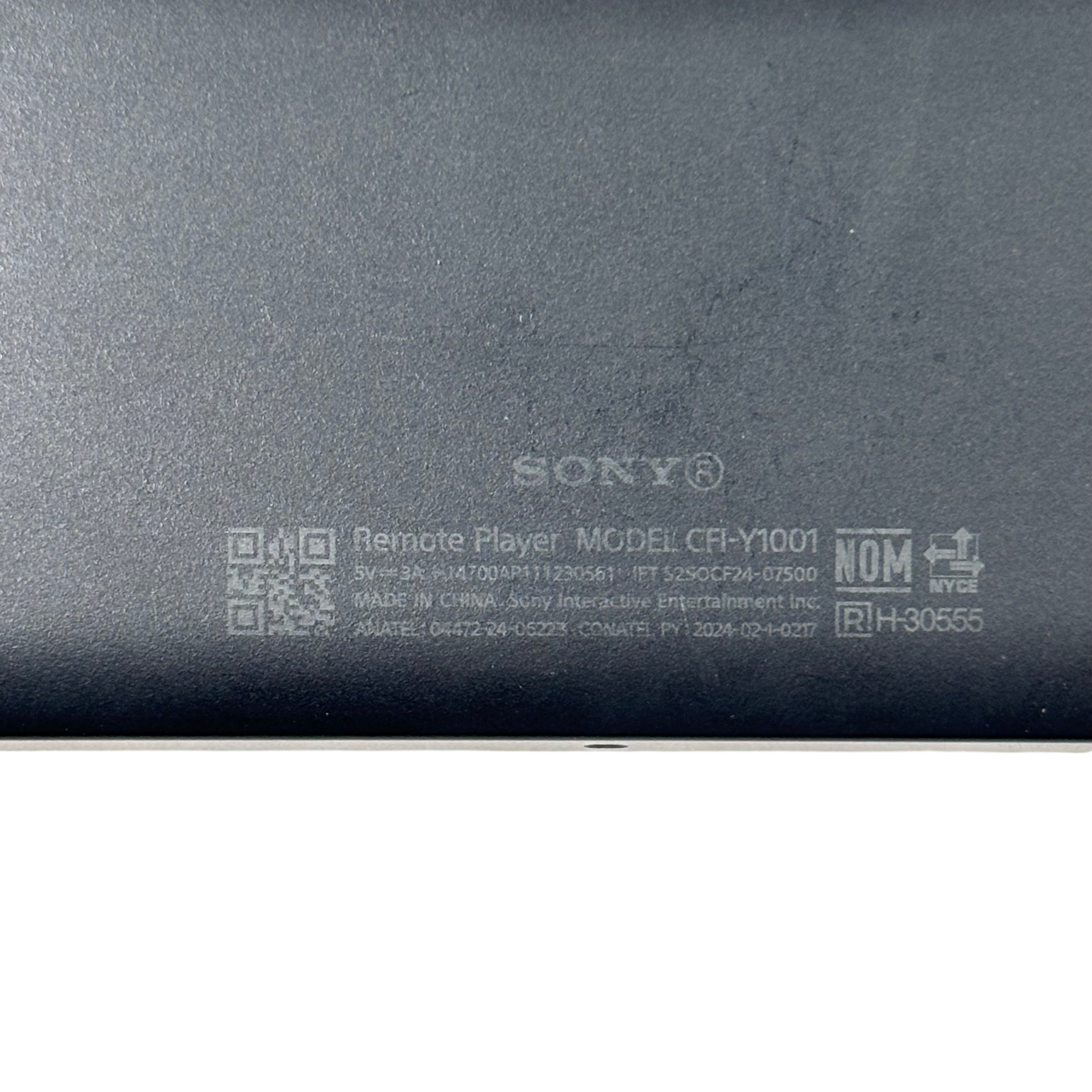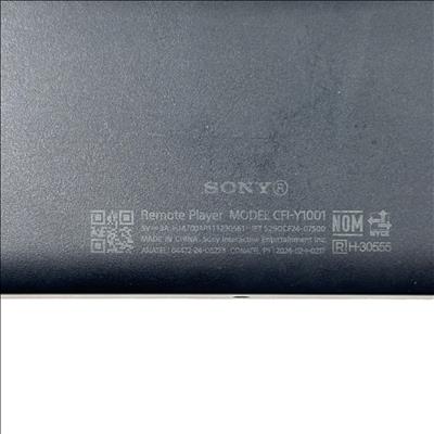 Sony Remote Player CFH-Y1001 is a handheld gaming console featuring a built-in screen flanked by ergonomic white and black controllers. Powered by a 5V 3A input, this compact device supports multiple languages including English, Spanish, German, and more, making it suitable for international users. The unit is designed for portable gaming with integrated controls and a sleek, lightweight form factor measuring approximately 1 inch in height, 6.5 inches in width, and 11 inches in length. Ideal for gamers seeking a versatile and convenient gaming experience on the go.