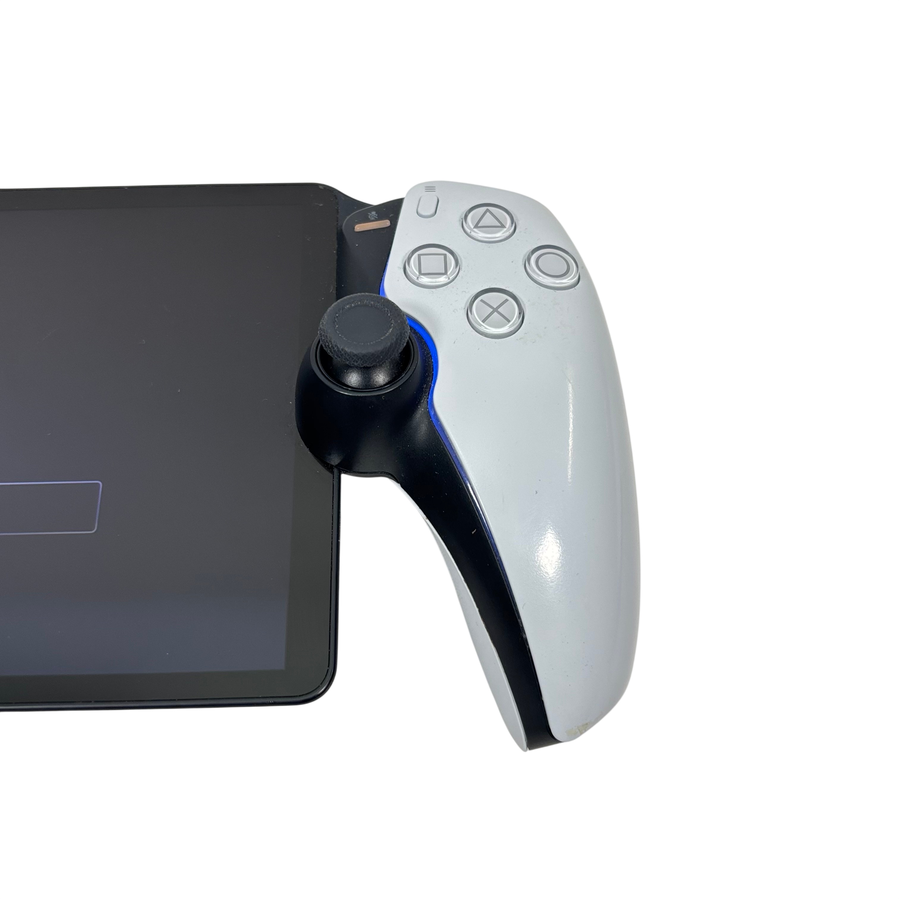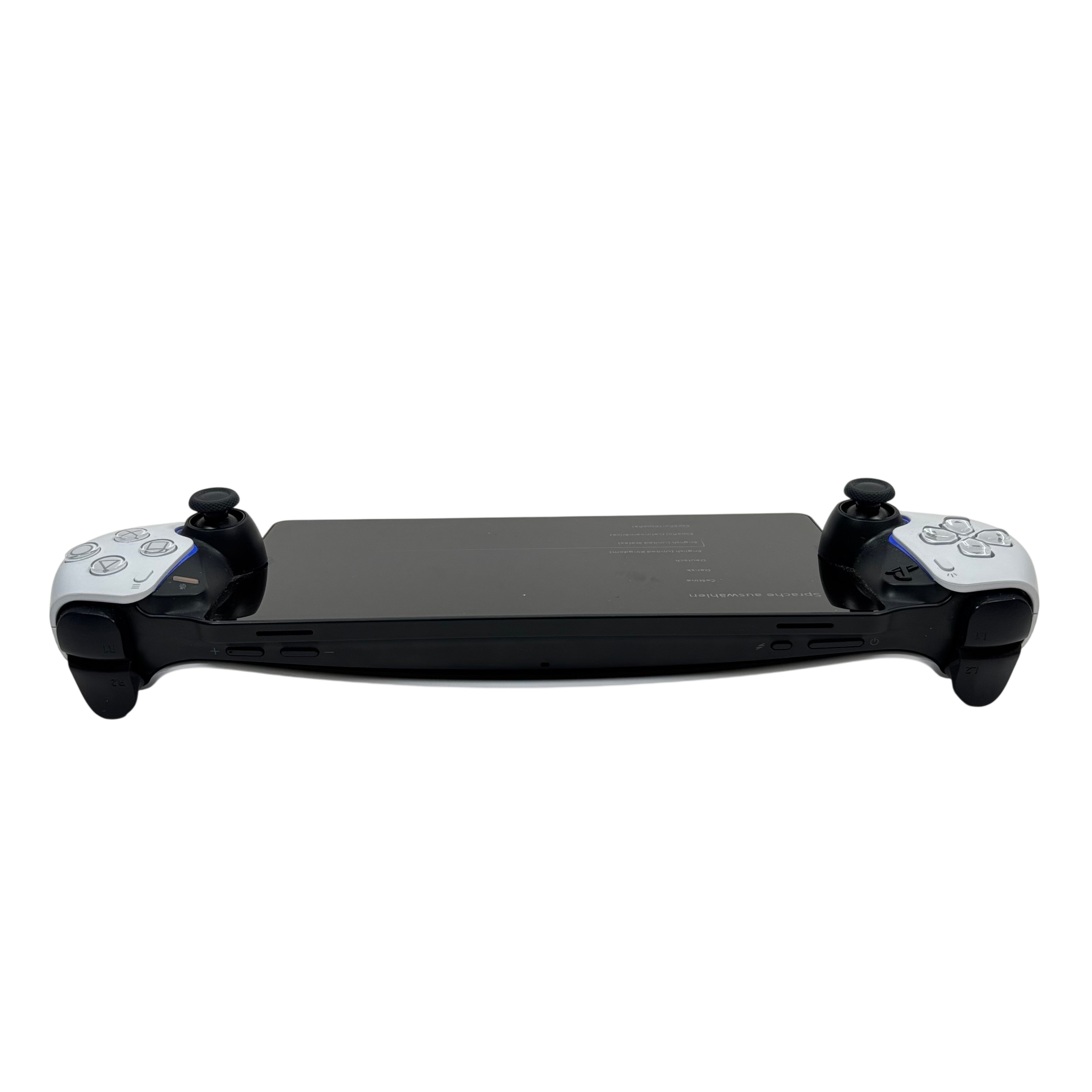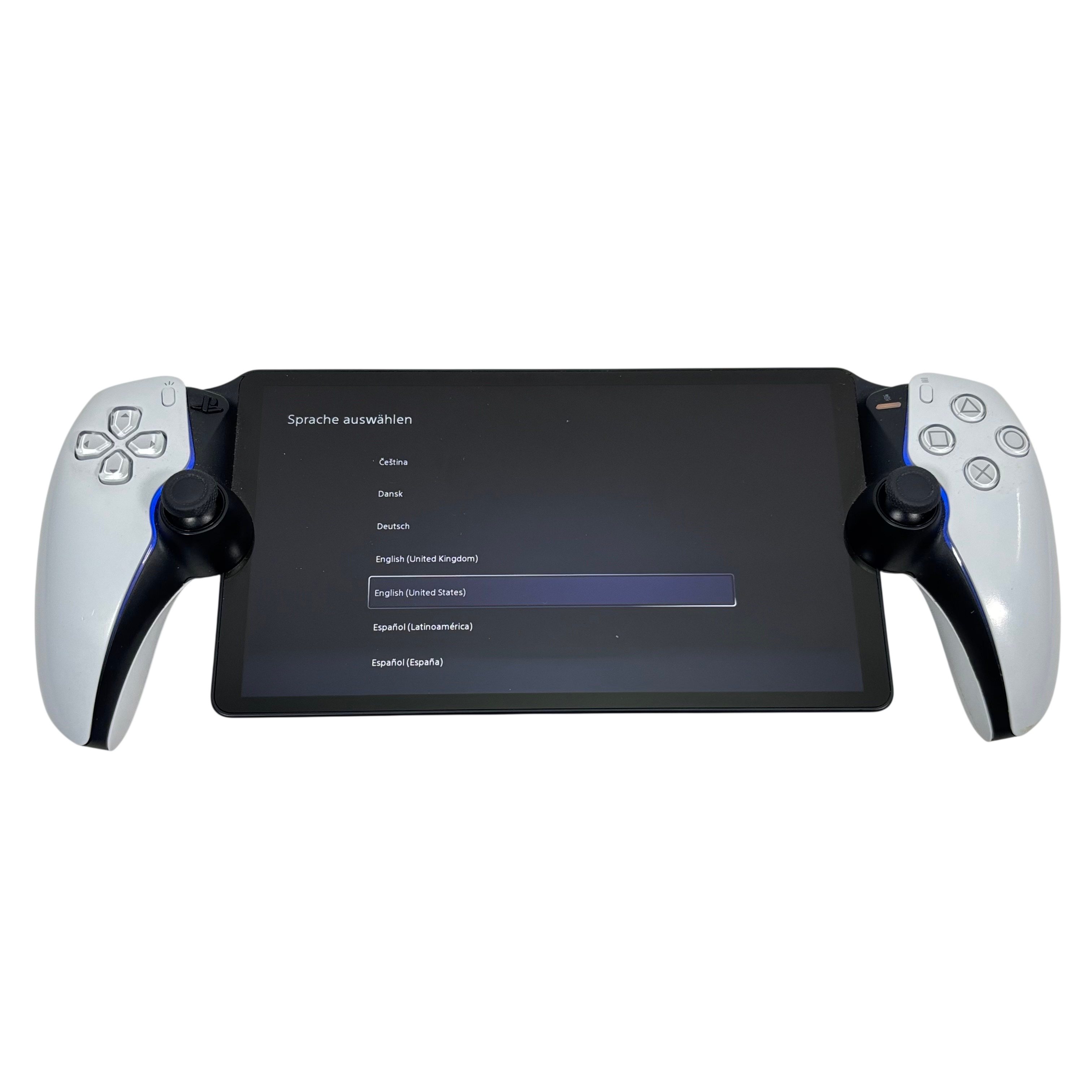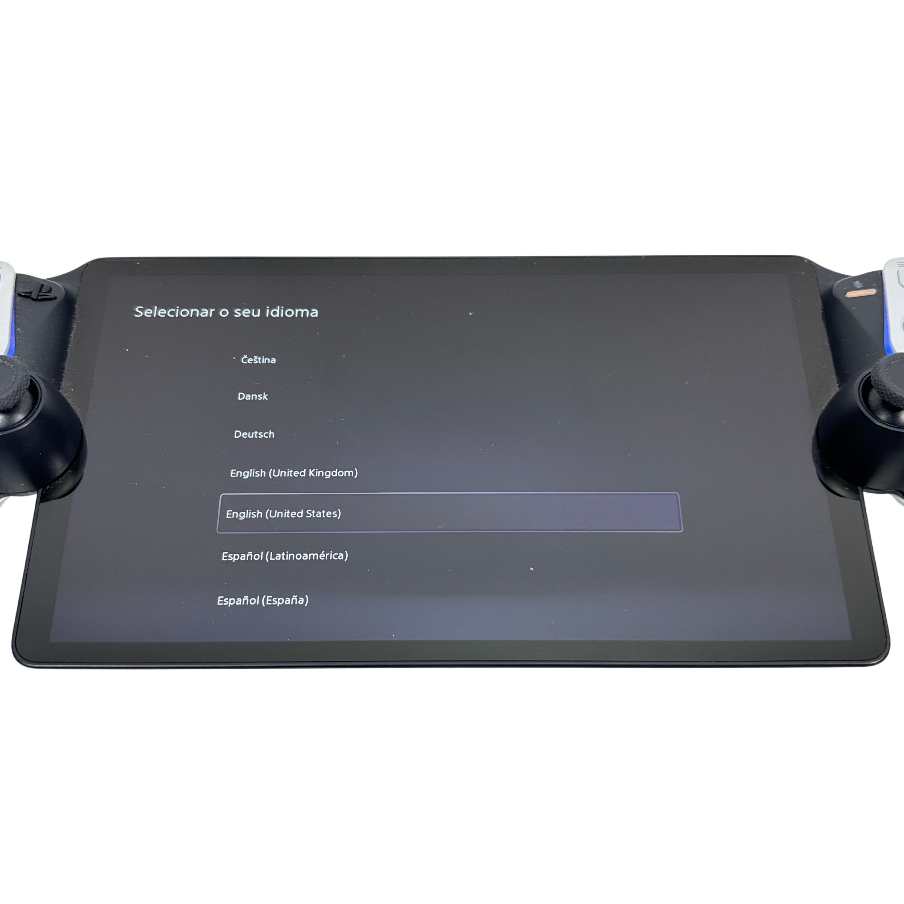 Sony Remote Player CFH-Y1001 is a handheld gaming console featuring a built-in screen flanked by ergonomic white and black controllers. Powered by a 5V 3A input, this compact device supports multiple languages including English, Spanish, German, and more, making it suitable for international users. The unit is designed for portable gaming with integrated controls and a sleek, lightweight form factor measuring approximately 1 inch in height, 6.5 inches in width, and 11 inches in length. Ideal for gamers seeking a versatile and convenient gaming experience on the go.