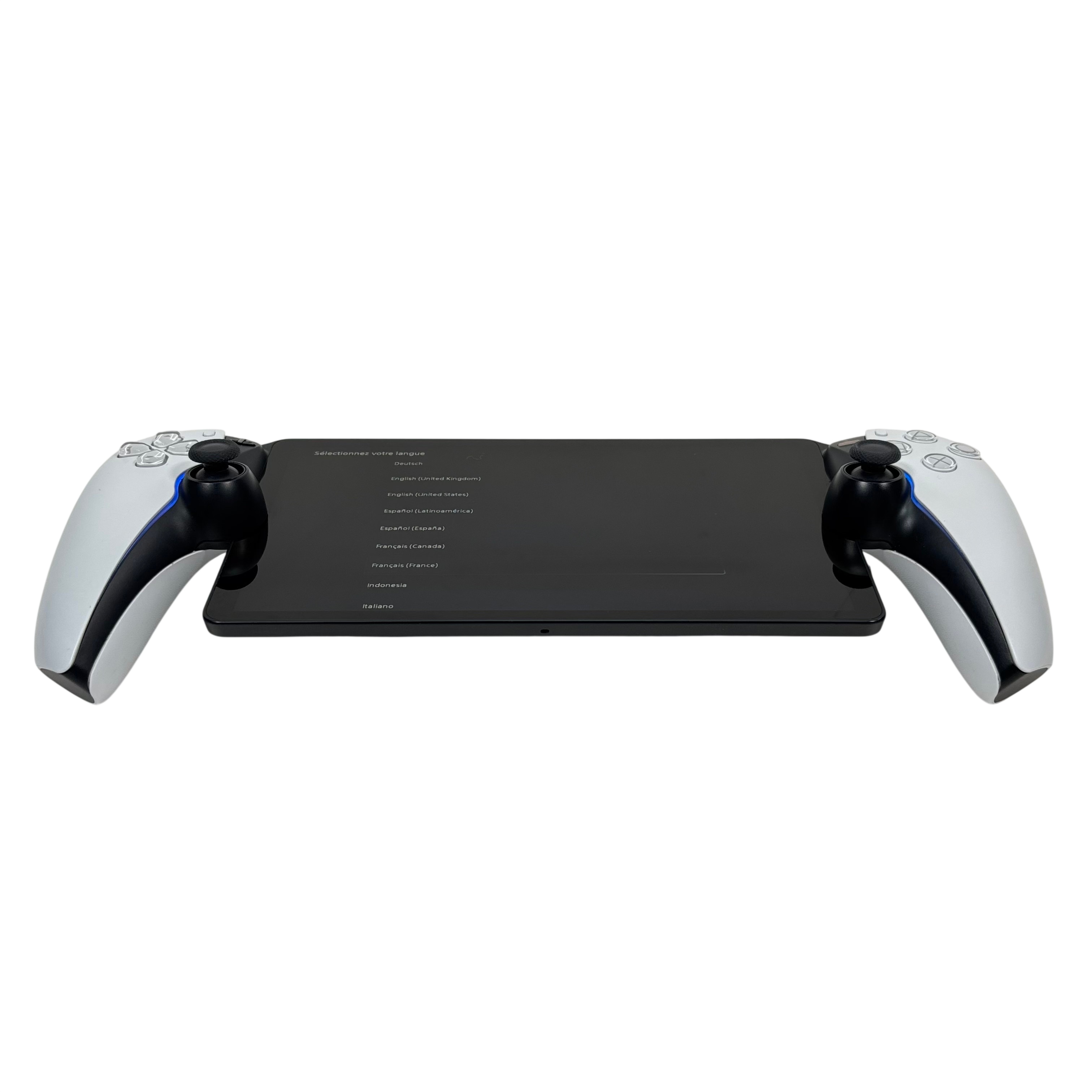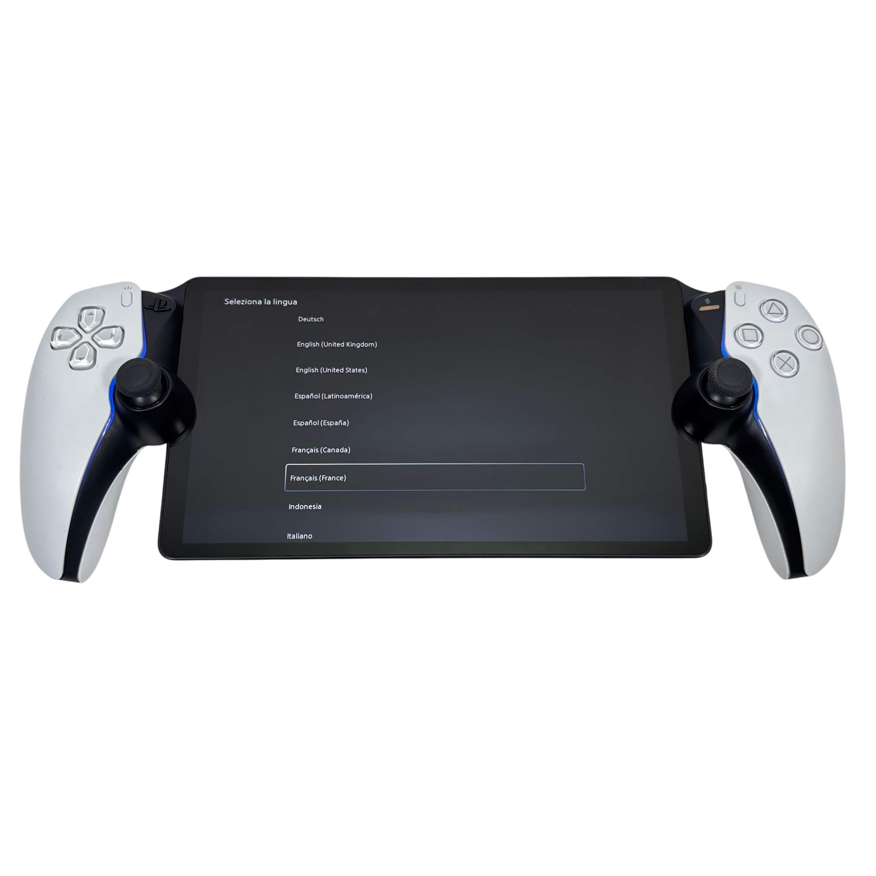 Sony Portal Remote Player is a portable gaming device featuring integrated dual analog sticks and traditional PlayStation controls on each side of a high-resolution touchscreen display. Powered by a 5V 3A input, this compact and lightweight unit supports multiple languages including English, Spanish, French, and more, making it ideal for gaming on the go. Its ergonomic design and responsive controls provide an immersive gaming experience for PlayStation enthusiasts.