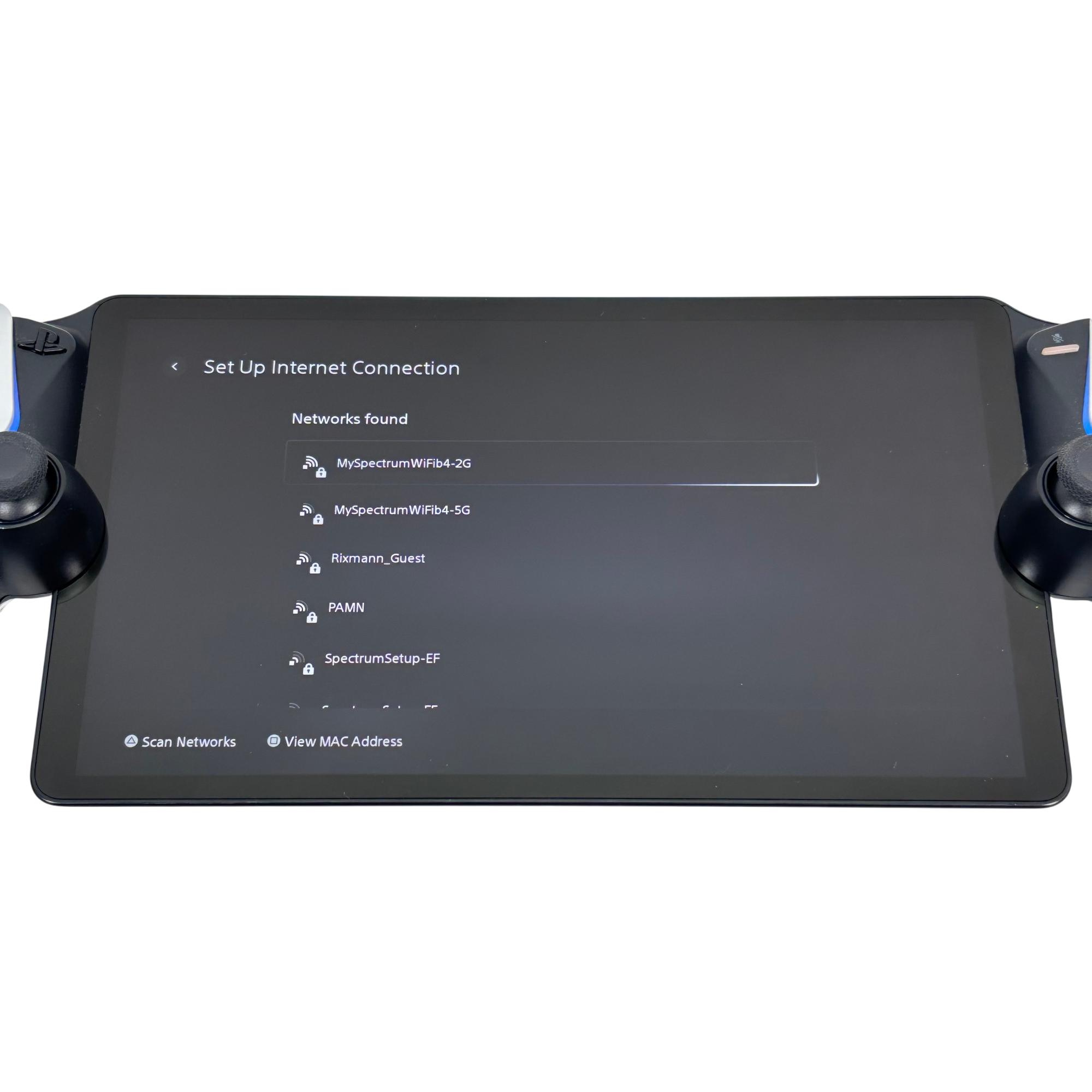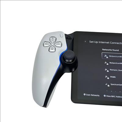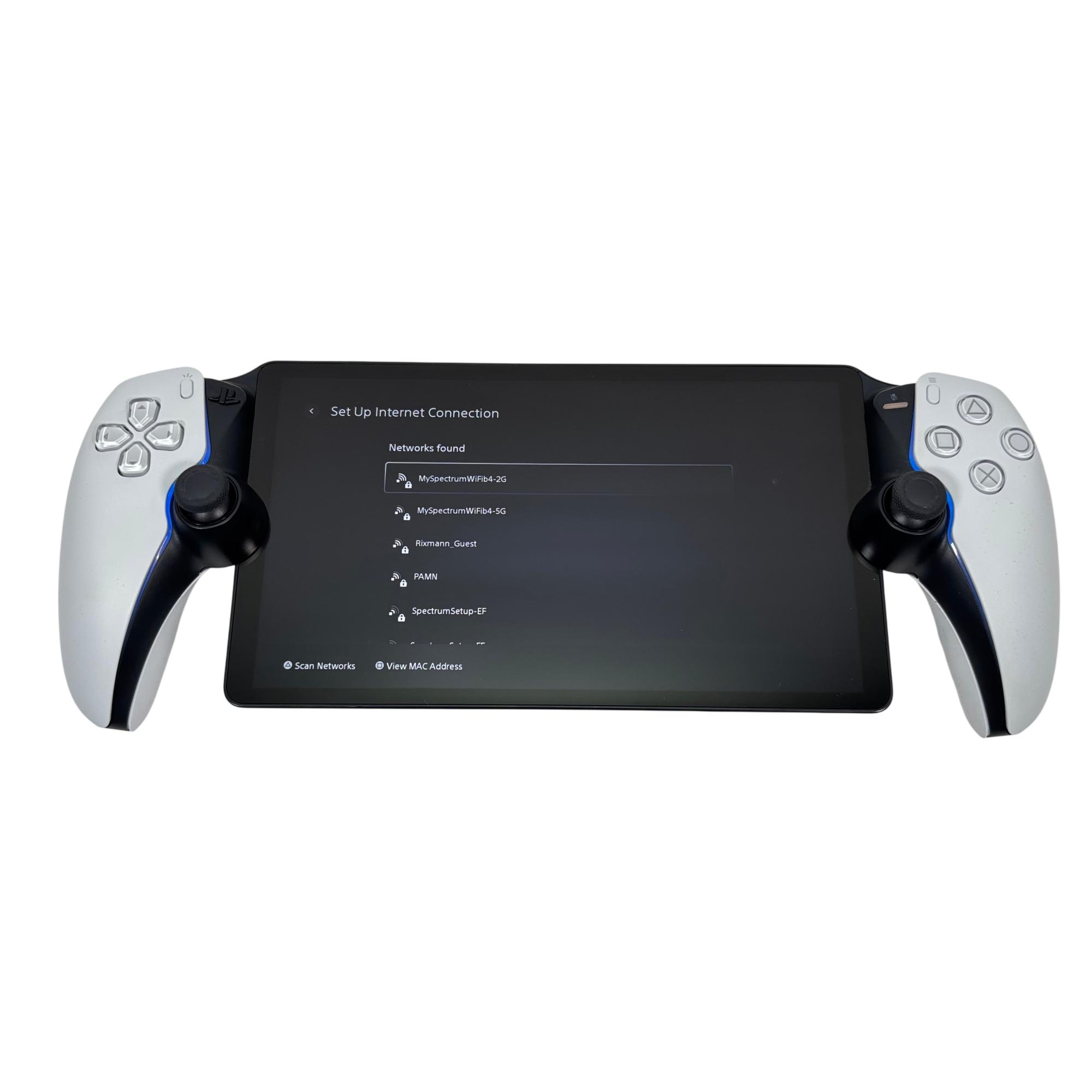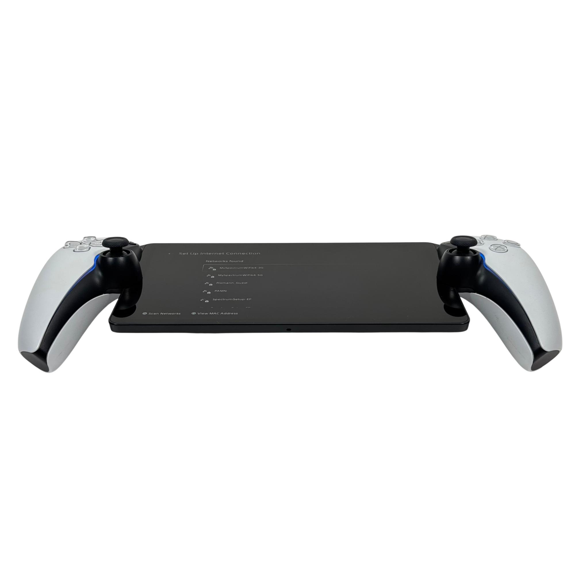 Sony PlayStation Portal Remote Player offers a sleek and compact design featuring dual black and blue game controllers for seamless gameplay. It connects to your Wi-Fi network to stream PS5 games remotely, delivering high-quality visuals and responsive controls through a vibrant handheld screen. This device enhances mobile gaming by providing a direct link to your PS5 console over wireless internet networks.