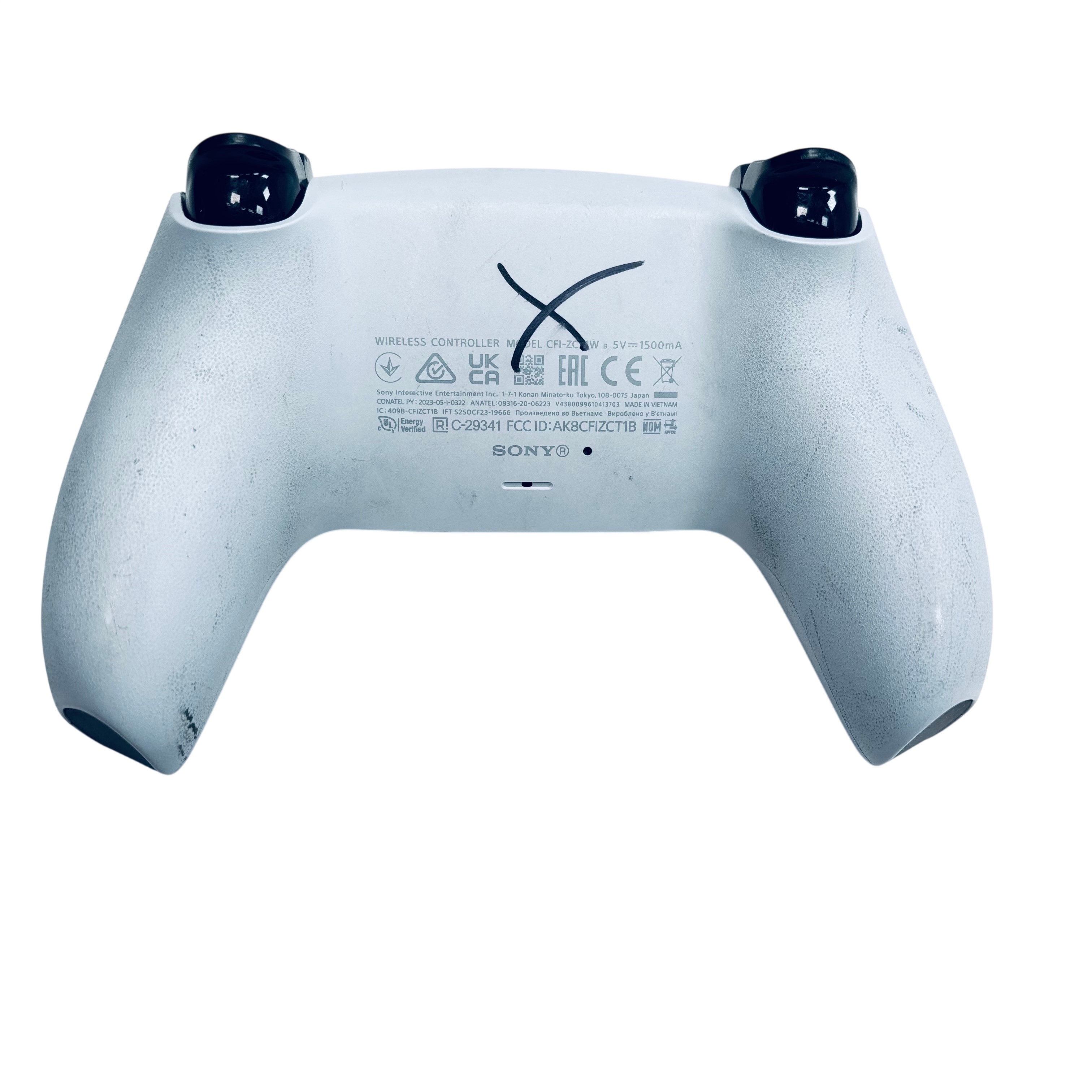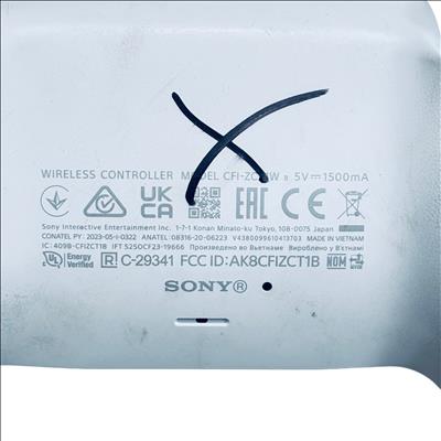 The Sony PlayStation 5 DualSense Wireless Controller (Model CFI-ZCT1W) offers an advanced gaming experience with adaptive triggers and haptic feedback for immersive gameplay. Designed for the PS5 console, this controller features a rechargeable battery powered by 5V/1500mA input and includes a built-in microphone and motion sensor. Its ergonomic white and black design provides comfort during long gaming sessions. This listing includes the controller only, perfect for gamers seeking to enhance their PlayStation 5 setup.