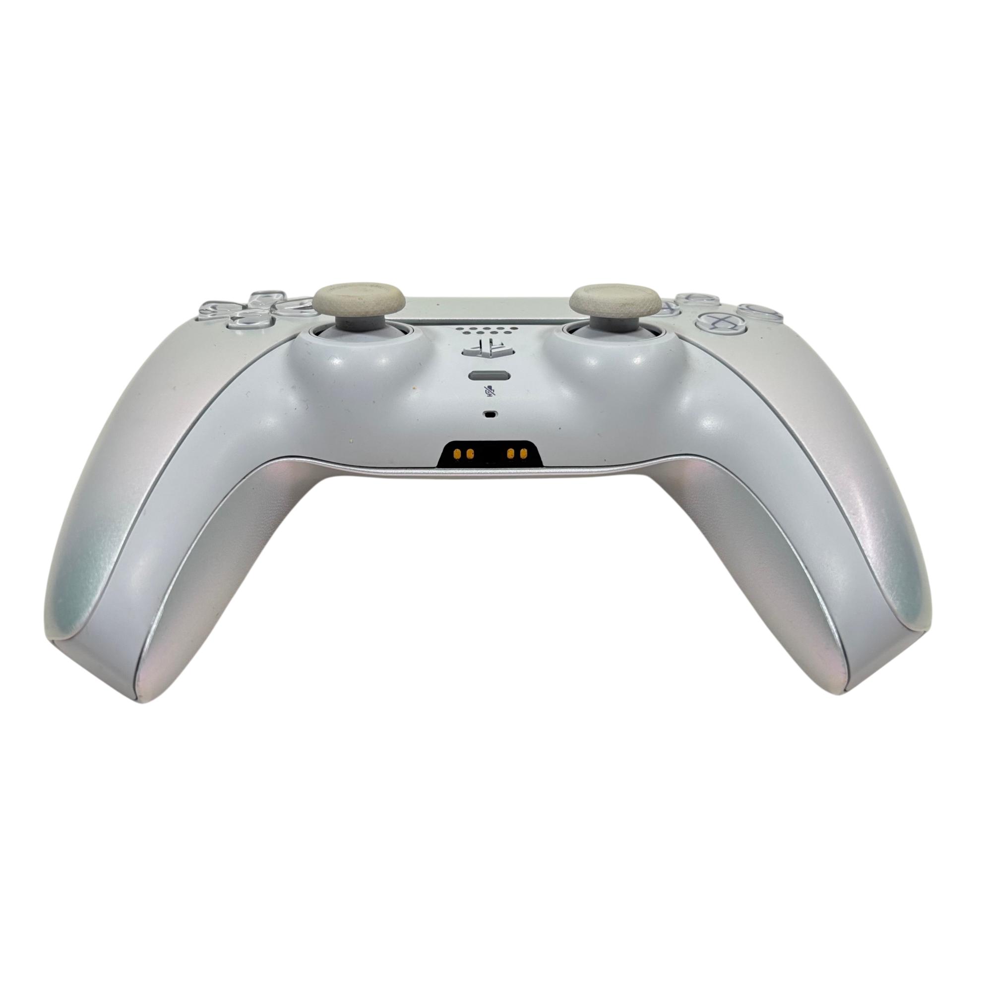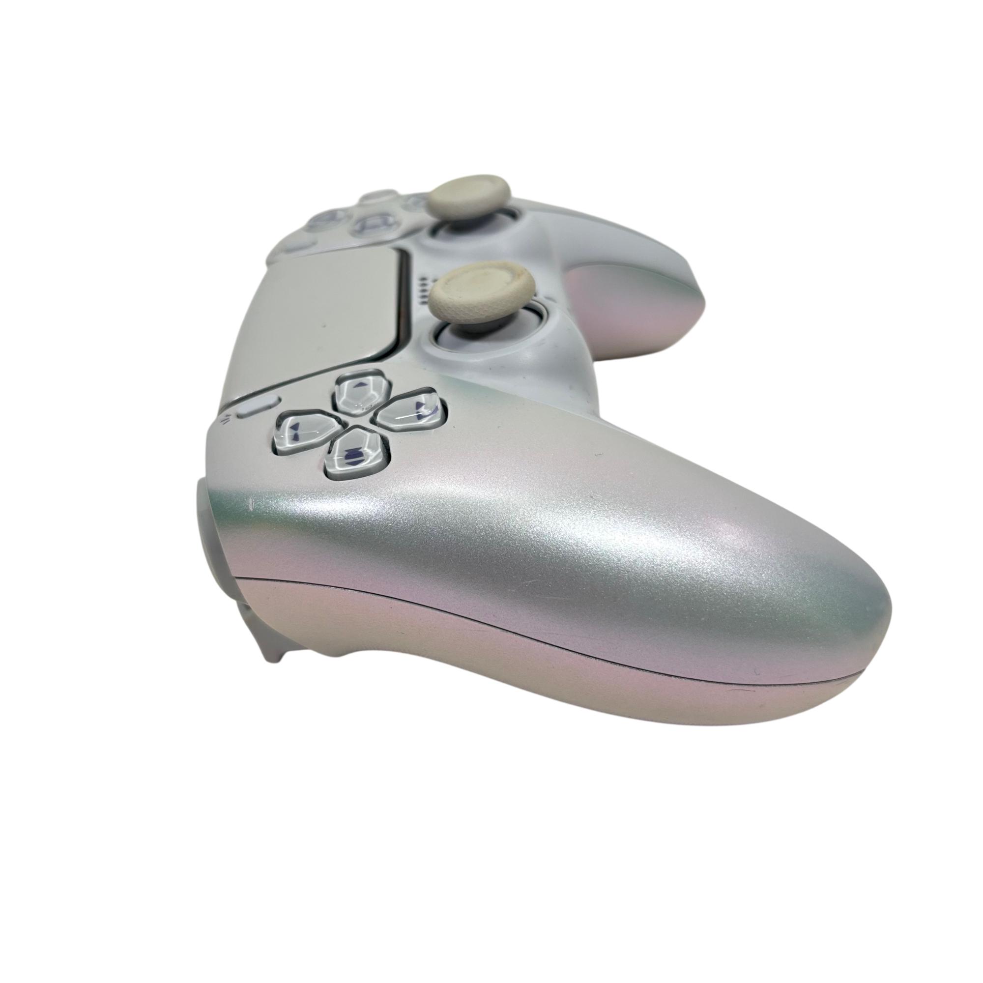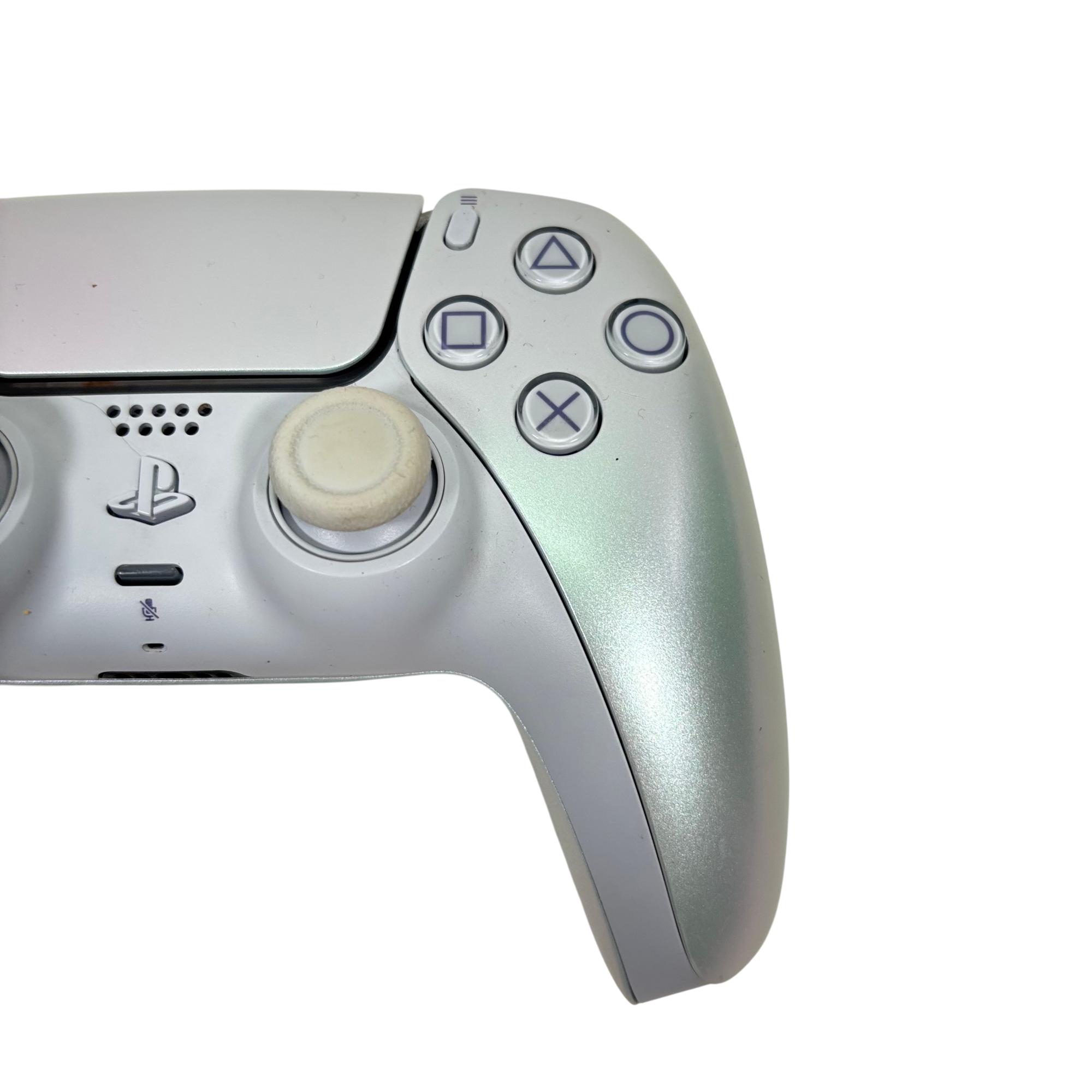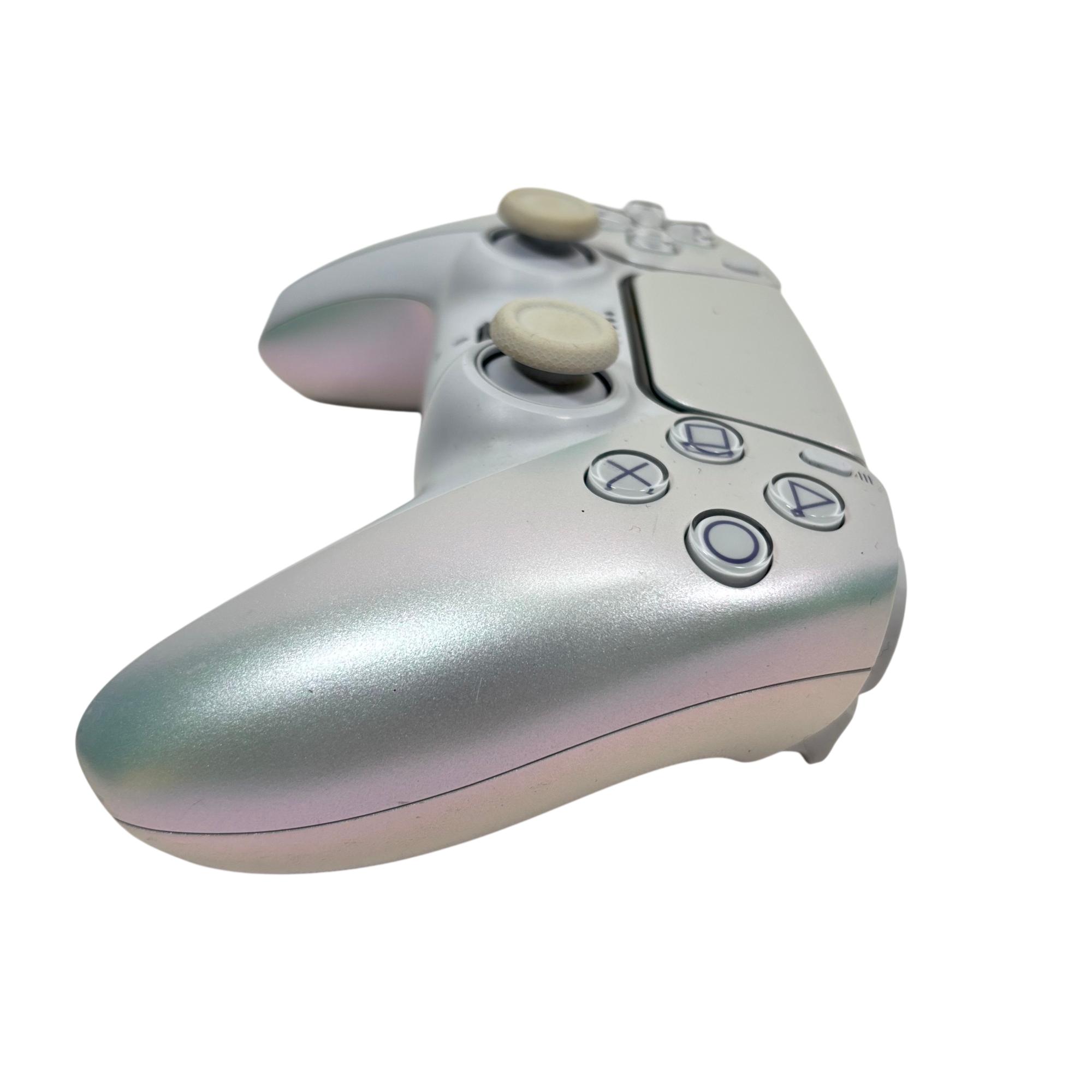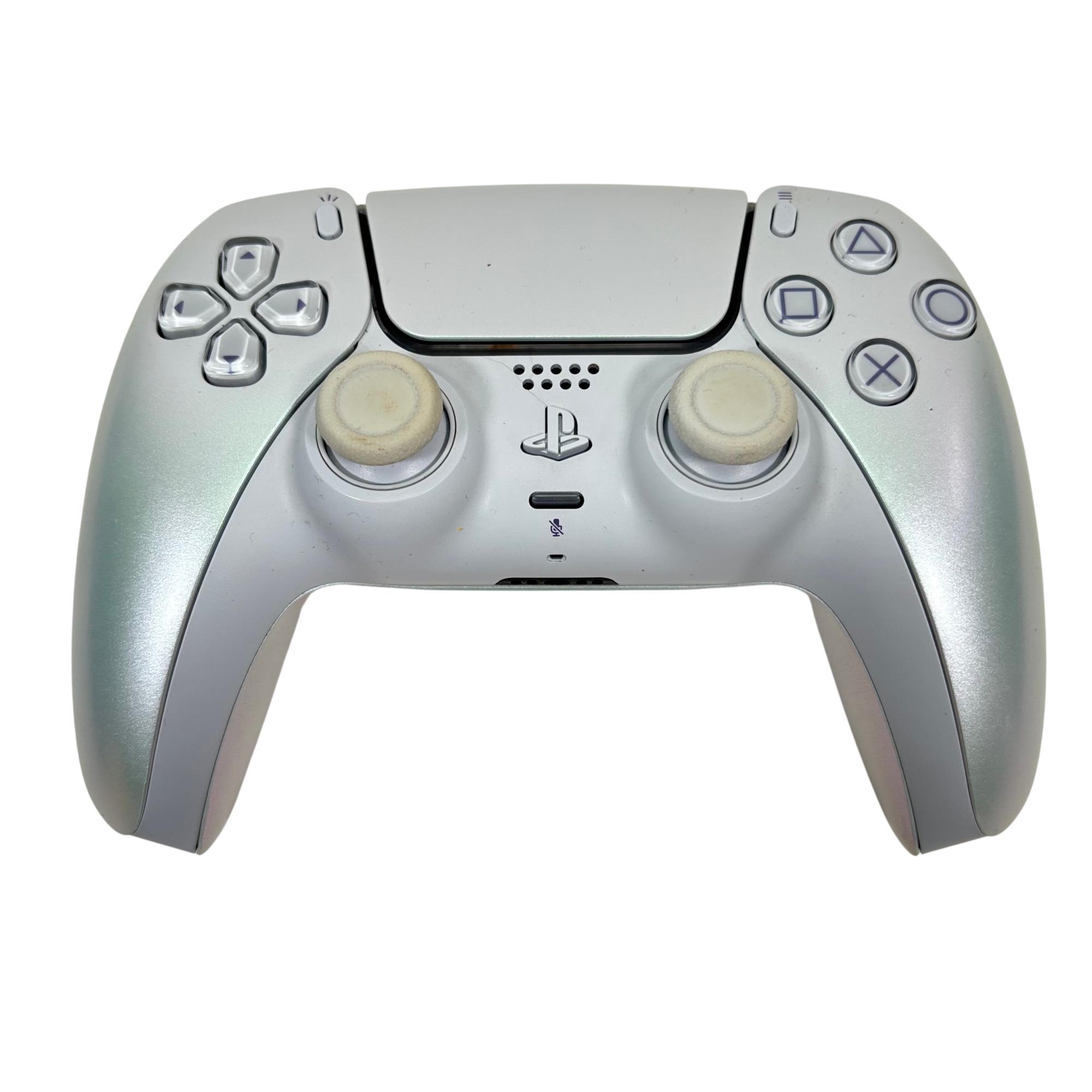 Sony PlayStation 5 DualSense Wireless Controller features advanced haptic feedback and adaptive triggers for immersive gameplay. Designed with a sleek white and silver finish, this wireless controller offers precise control and ergonomic comfort for extended gaming sessions on PlayStation 5 and compatible devices.