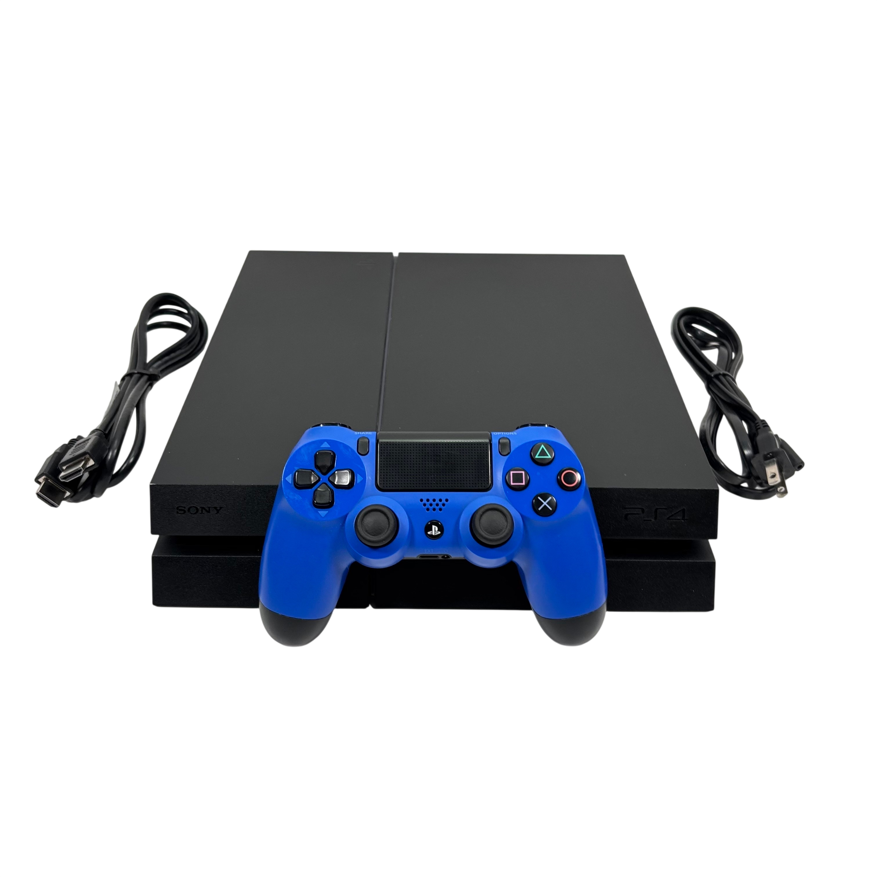 The Sony PlayStation 4 Console offers a powerful gaming experience with a spacious 500GB internal hard drive for storing games and media. This model features a sleek black design paired with a vibrant blue DualShock 4 wireless controller, providing responsive control and comfort. The console supports 1080p HD gaming and comes with essential accessories including power and HDMI cables. Ideal for gamers looking for a reliable and stylish entertainment system with worldwide power compatibility.