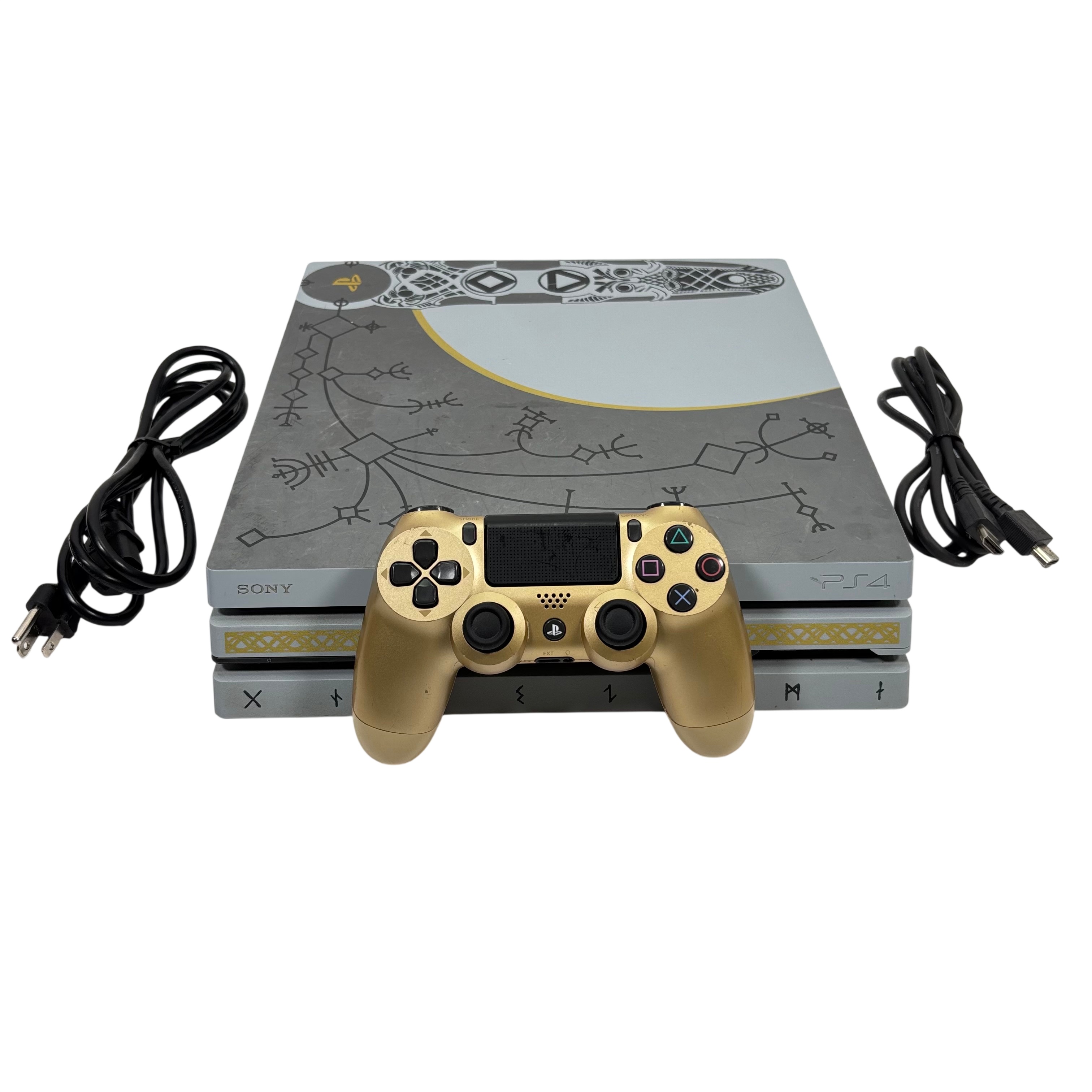 The Sony PlayStation 4 Pro CUH-7115B God Of War Limited Edition is special variant of the PS4 Pro featuring unique gray, gold, and black artistic designs on the console. This model supports 4K gaming and HDR for enhanced visual performance. It operates on universal voltage (100-240V) with a power consumption of 310W. Included in the set are the console, power cable, HDMI cable, and the gold controller, making it ready for immersive gaming right out of the box. Its compact dimensions and robust build make it a great choice for gamers seeking both style and performance.