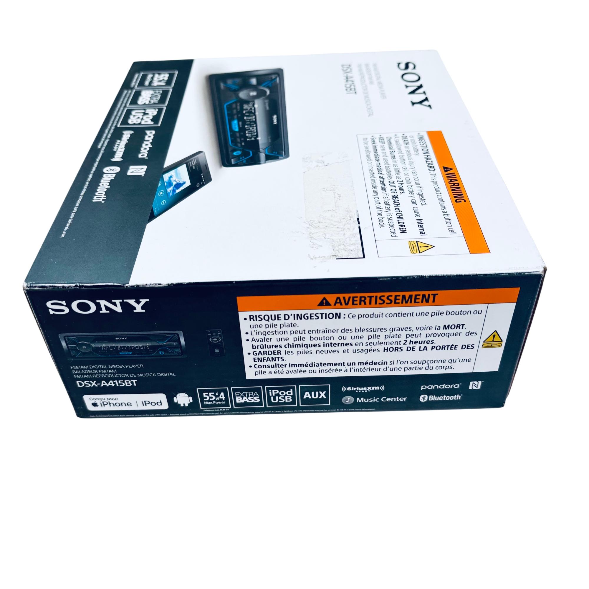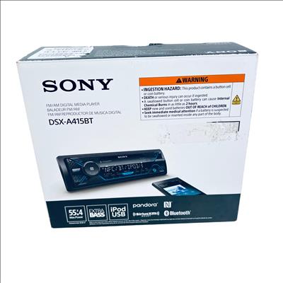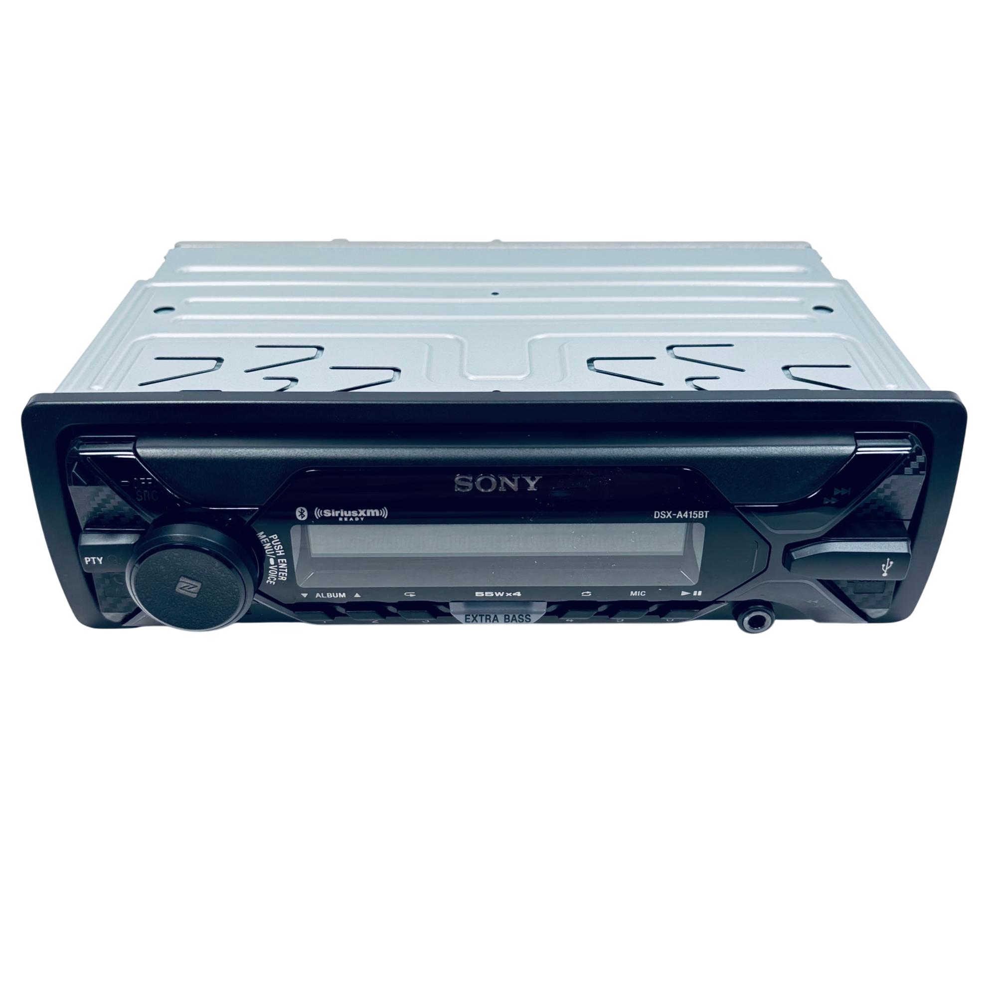 Sony DSX-A415BT Single DIN In-Dash Digital Media Receiver offers Bluetooth connectivity and SiriusXM readiness, delivering seamless wireless music streaming and hands-free calling. Featuring a powerful 55 watts by 4 channels output and EXTRA BASS technology, this car deck provides enhanced audio quality with clear, dynamic sound. Its intuitive interface includes a radio tuner with FM/AM bands and compatibility with digital media players for versatile entertainment options.