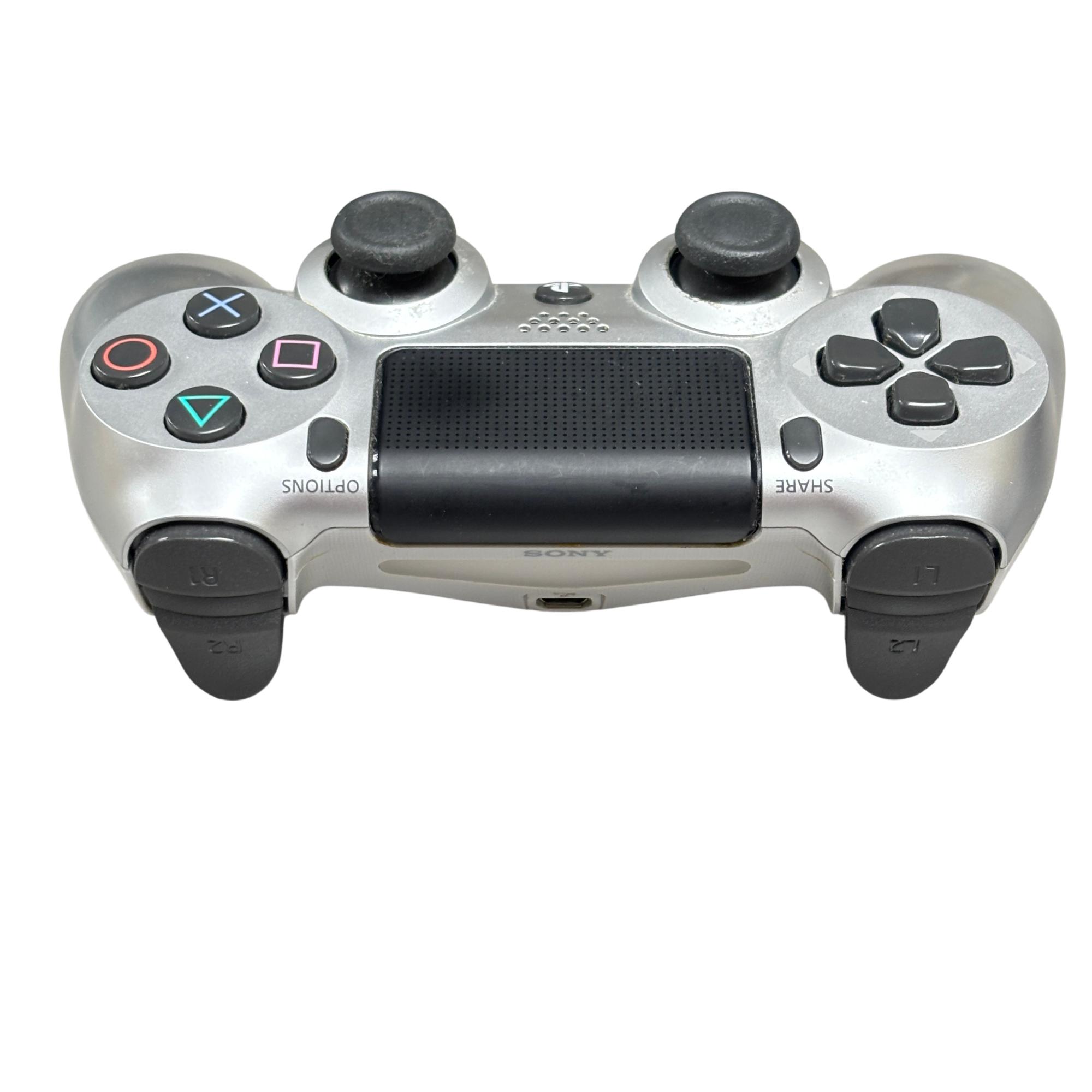 This Sony DualShock 4 Wireless Controller in silver offers precise control and seamless wireless connectivity for PlayStation 4 gaming. Featuring a comfortable ergonomic design, this controller includes responsive analog sticks, a clickable touchpad, and an array of intuitive buttons that enhance gameplay on all PS4 titles.