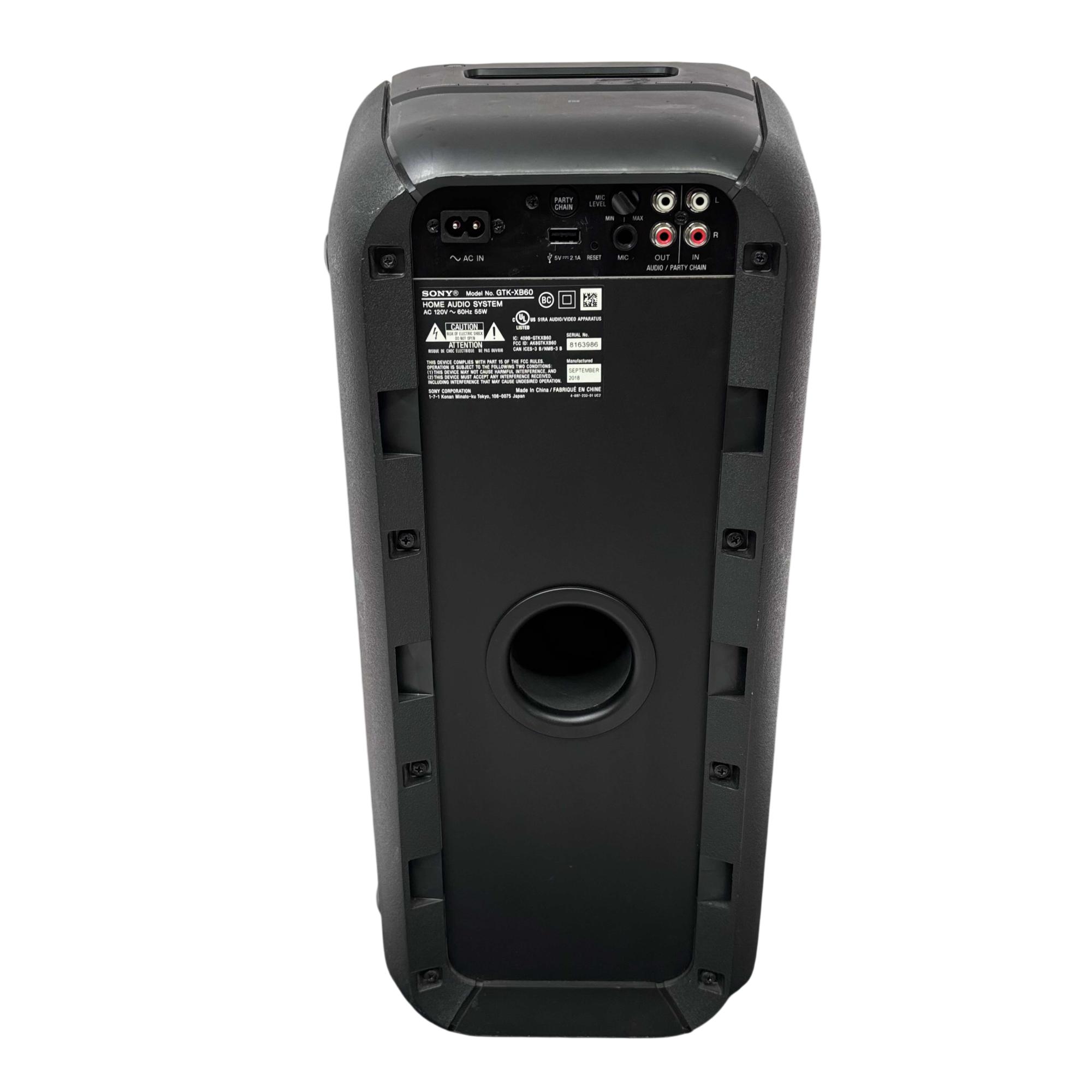 Sony GTK-XB60 High Power Portable Bluetooth Speaker delivers powerful, deep bass with its extra bass technology, making it ideal for dynamic sound experiences. It features vibrant blue LED lighting and a durable mesh exterior that enhances both style and sound performance for various settings.