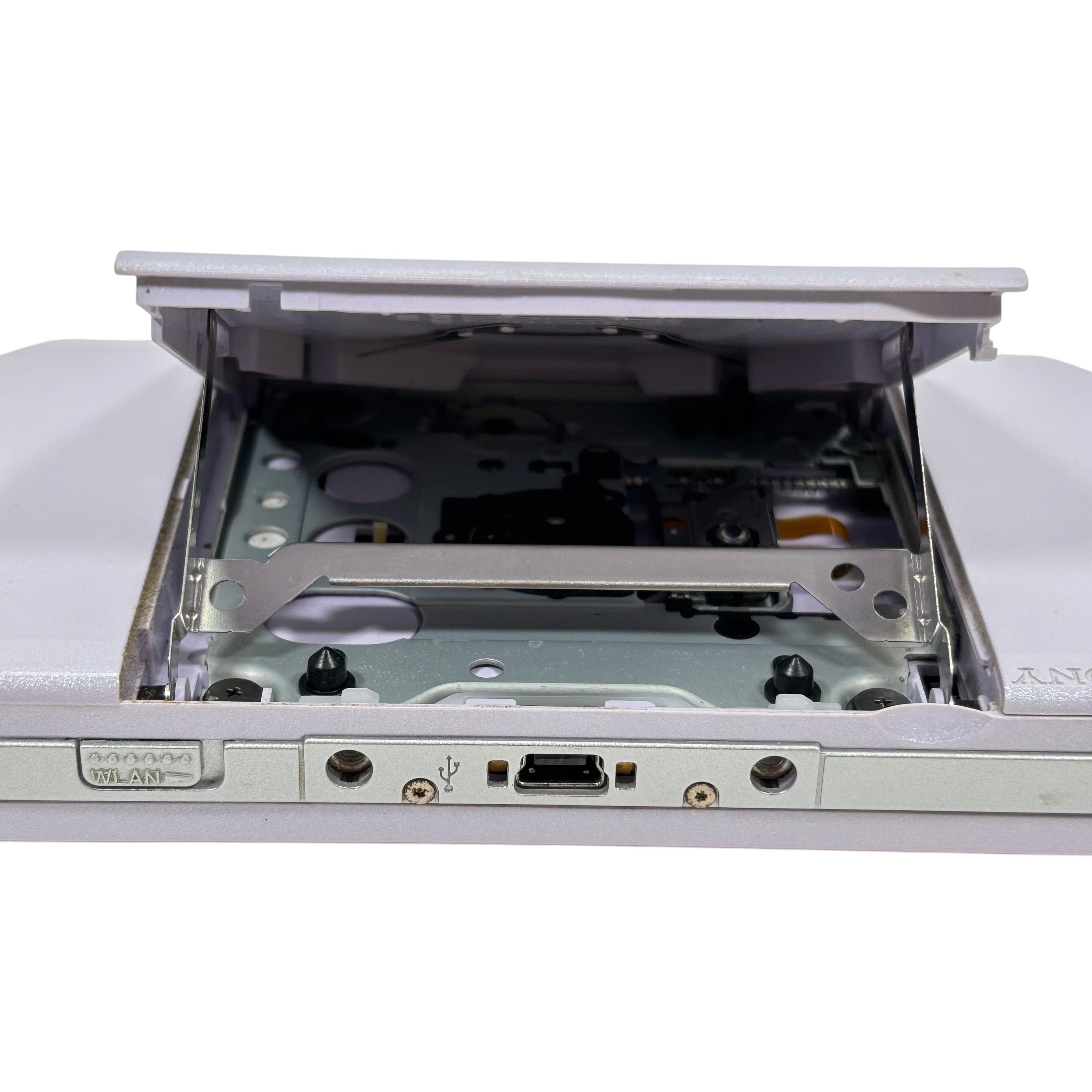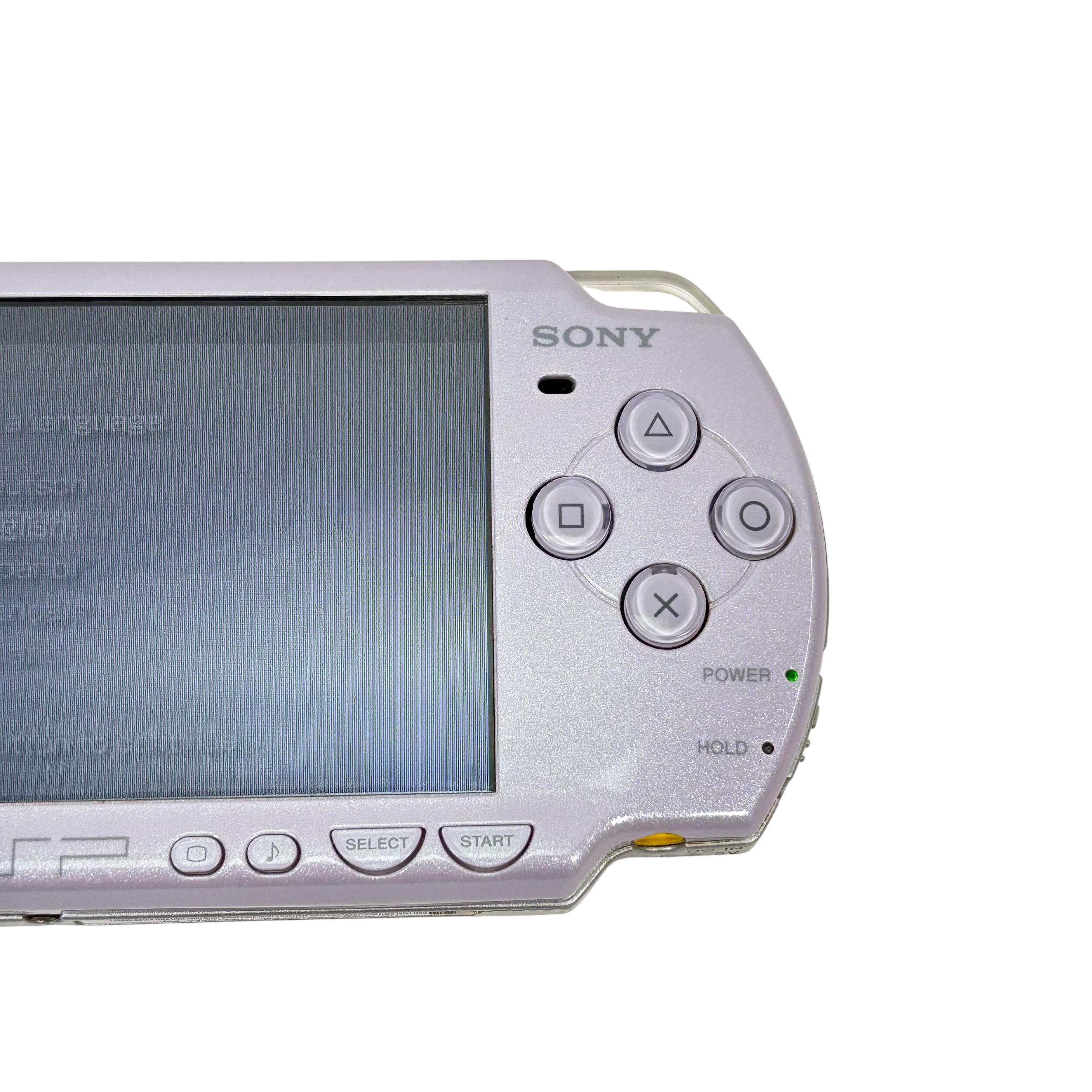 The Sony PlayStation Portable is a sleek handheld gaming console featuring a 4.3 inch TFT LCD screen and support for UMD game discs. This Pearl White model offers Wi-Fi connectivity for multiplayer gaming and internet access. Compact and lightweight, it measures approximately 6.77 inches in length, 3.74 inches in width, and 0.79 inches in height, weighing just 0.71 pounds. Ideal for gaming on the go, it includes essential controls such as volume adjustment, home, select, and start buttons, providing a versatile and portable entertainment experience.