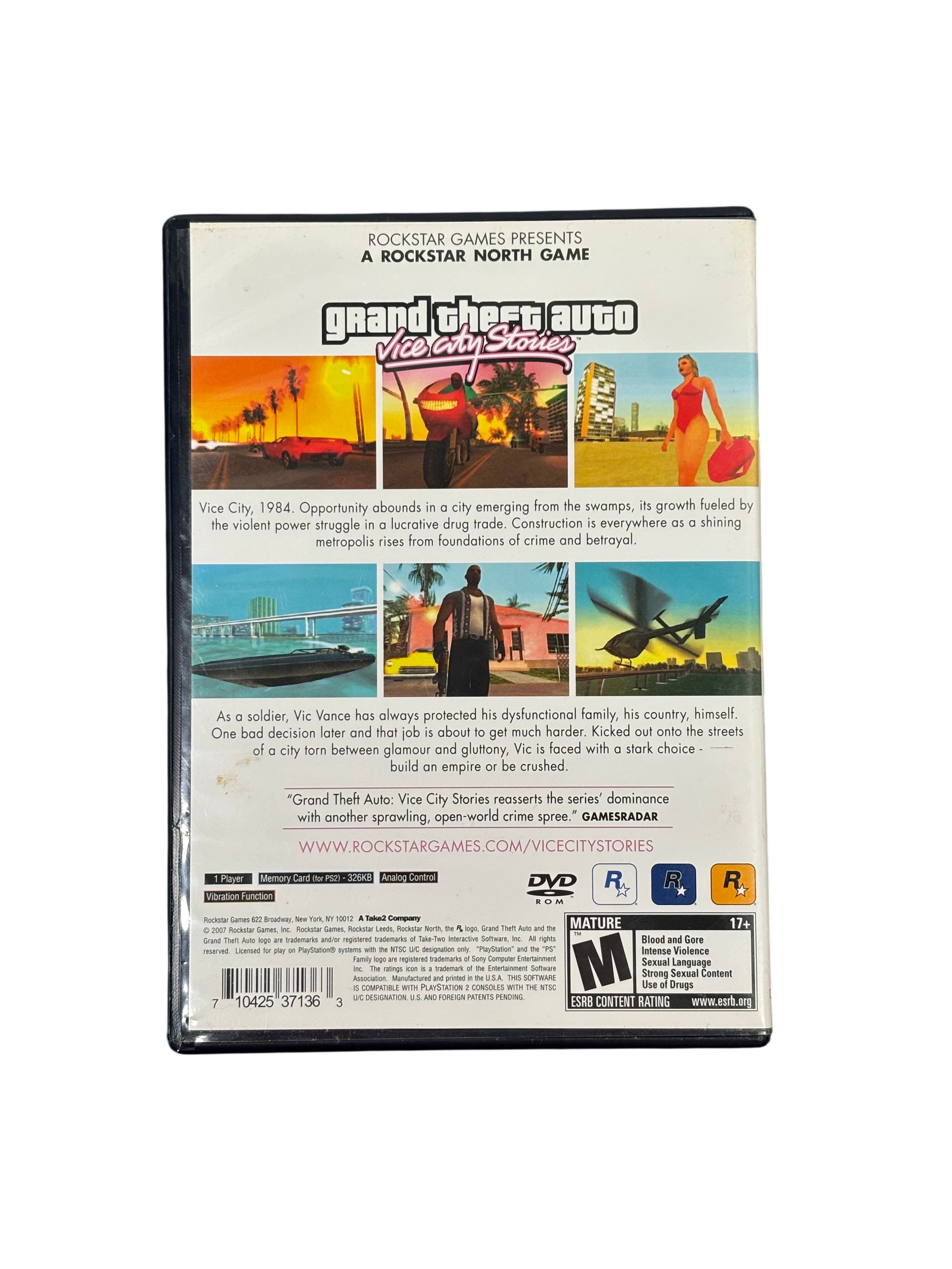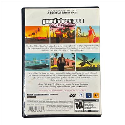 Sony Grand Theft Auto Vice City Stories for PlayStation 2 is a mature-rated open-world action-adventure game set in the vibrant Vice City of 1984. This complete set includes the original game disc, case, and three detailed inserts including a tourist guide map and in-game magazine, enhancing the immersive gameplay experience. Designed for single-player mode, the game supports analog controls and vibration feedback, requiring a memory card for saving progress. Perfect for collectors and fans of the Rockstar Games series, this PlayStation 2 classic delivers intense story-driven gameplay with iconic 80s style.