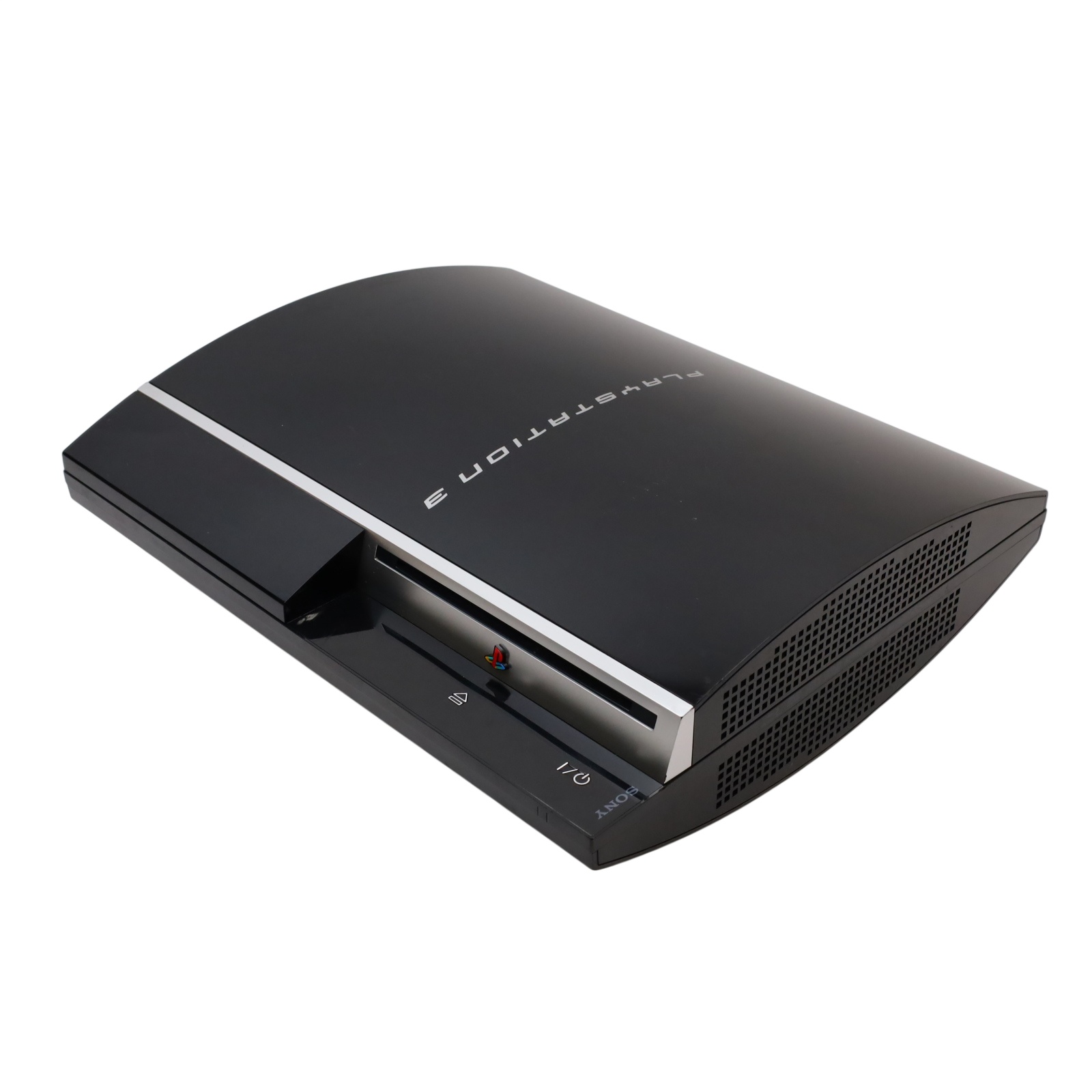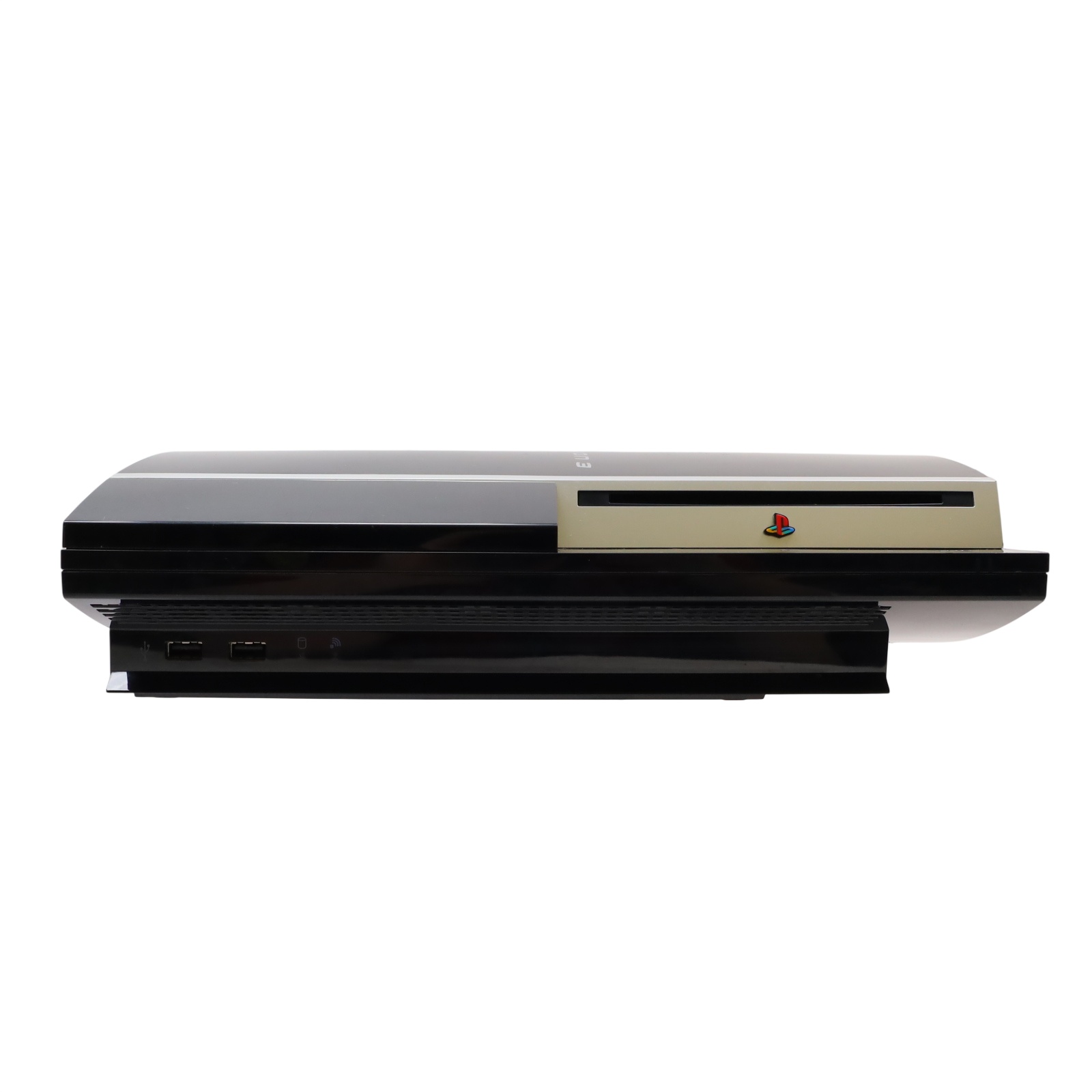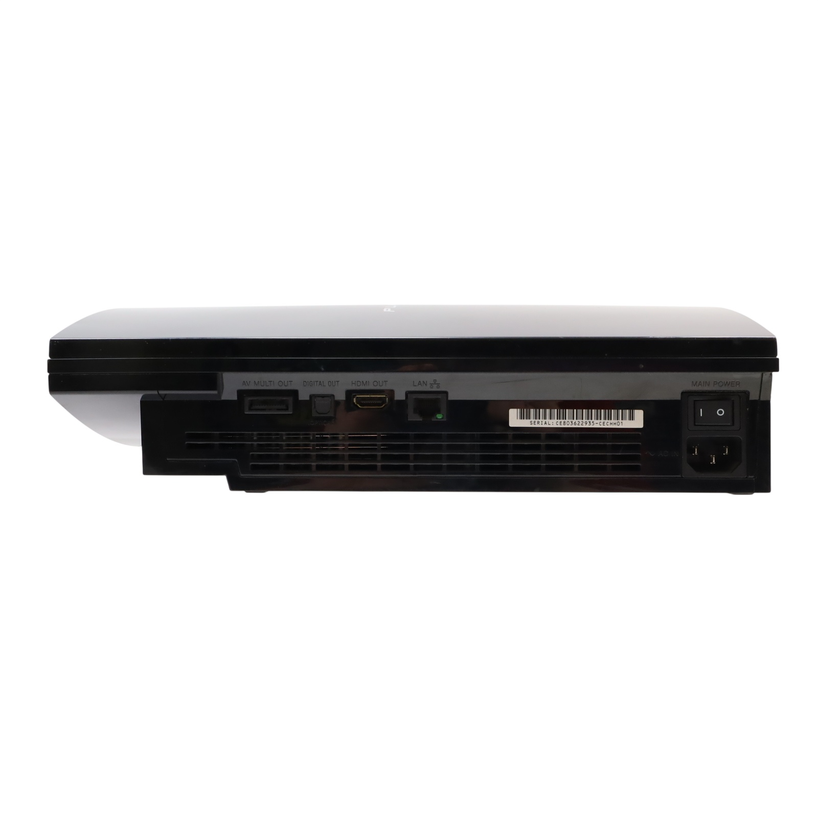 A black video game console with a 40GB hard drive. It supports Blu-ray discs, DVDs, and CDs, offering a comprehensive entertainment experience. The console features built-in Wi-Fi, an HDMI output for high-definition video, and multiple USB ports for connecting accessories. Additionally, it includes Bluetooth for wireless peripherals and an Ethernet port for wired internet connections. With its powerful hardware and wide range of compatible games, the PlayStation 3 CECHA01 provides an immersive gaming experience.